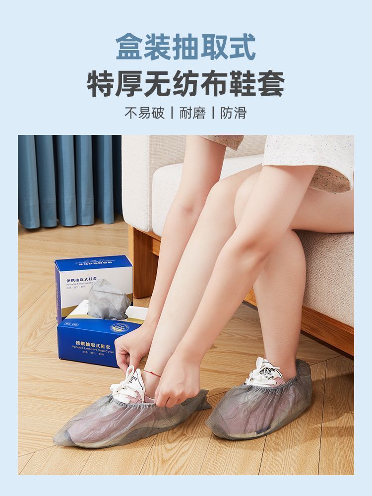 鞋套无纺布一次性家用室内耐磨防滑加厚待客防水塑料成人脚套学生