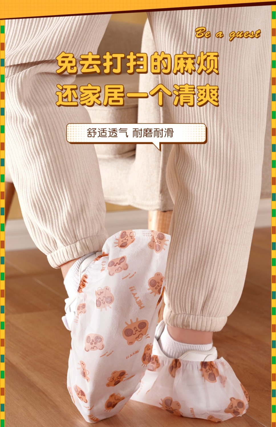 一次性抽取式鞋套室内无纺布成人加厚印花卡通防滑机房学生耐磨