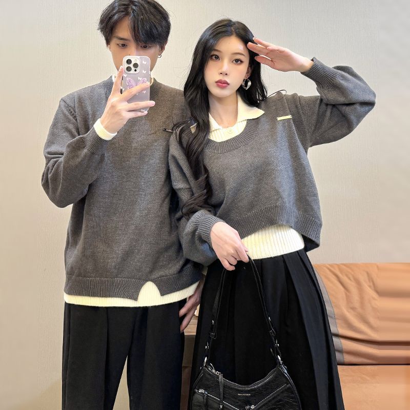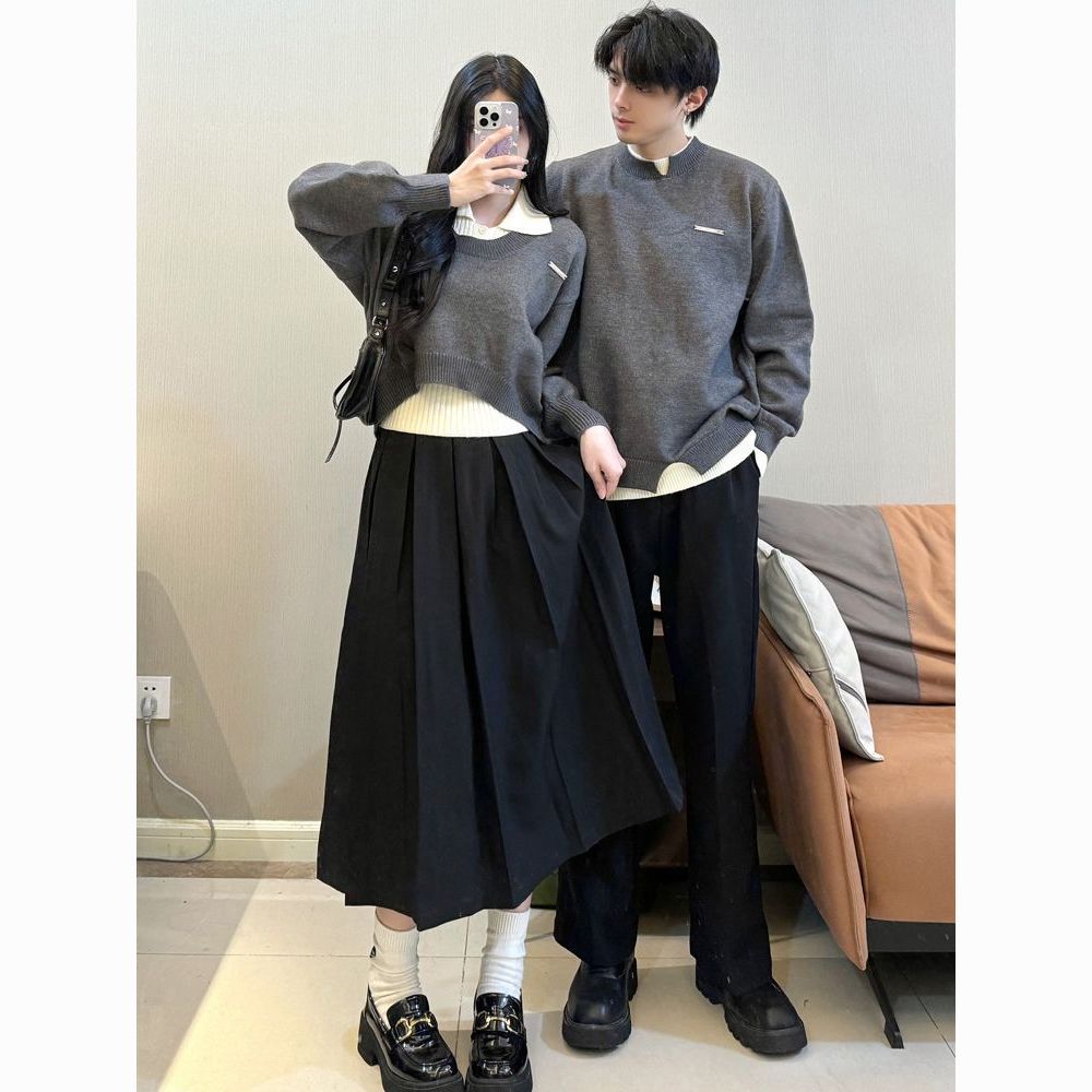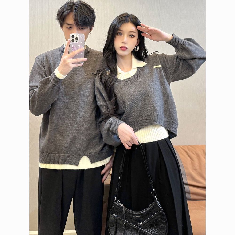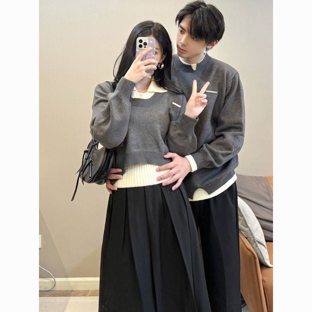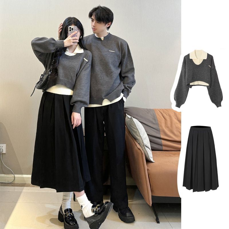 情侣装高级感套装一衣一裙叠穿针织衫配裙子两件套短款毛衣罩衫秋