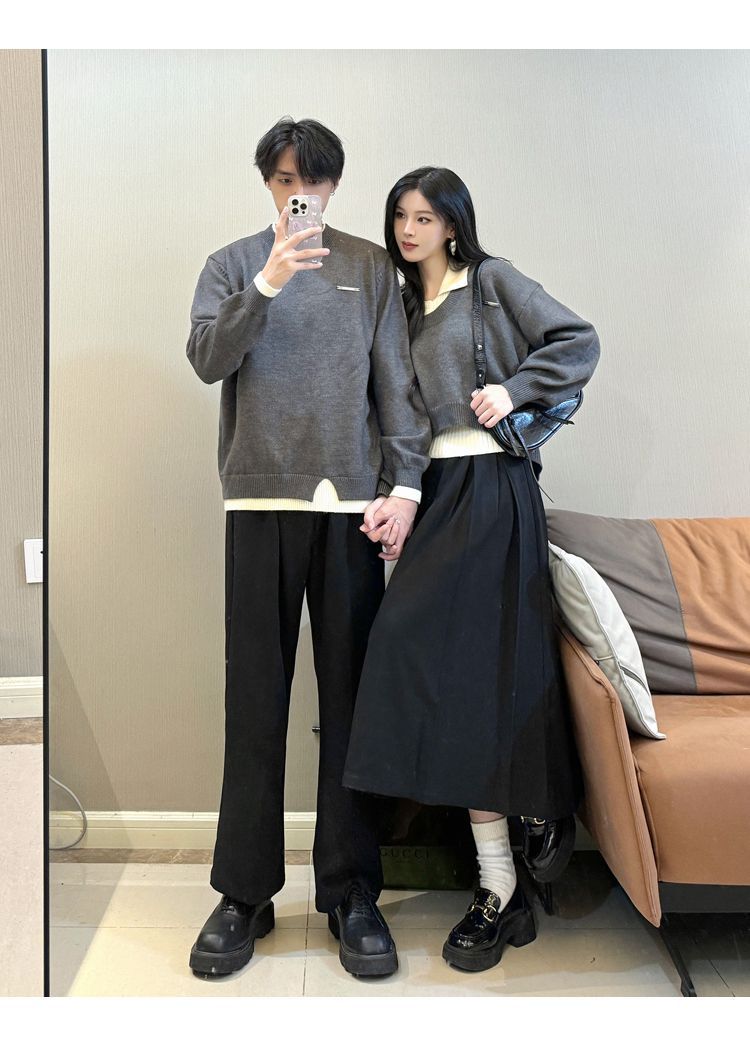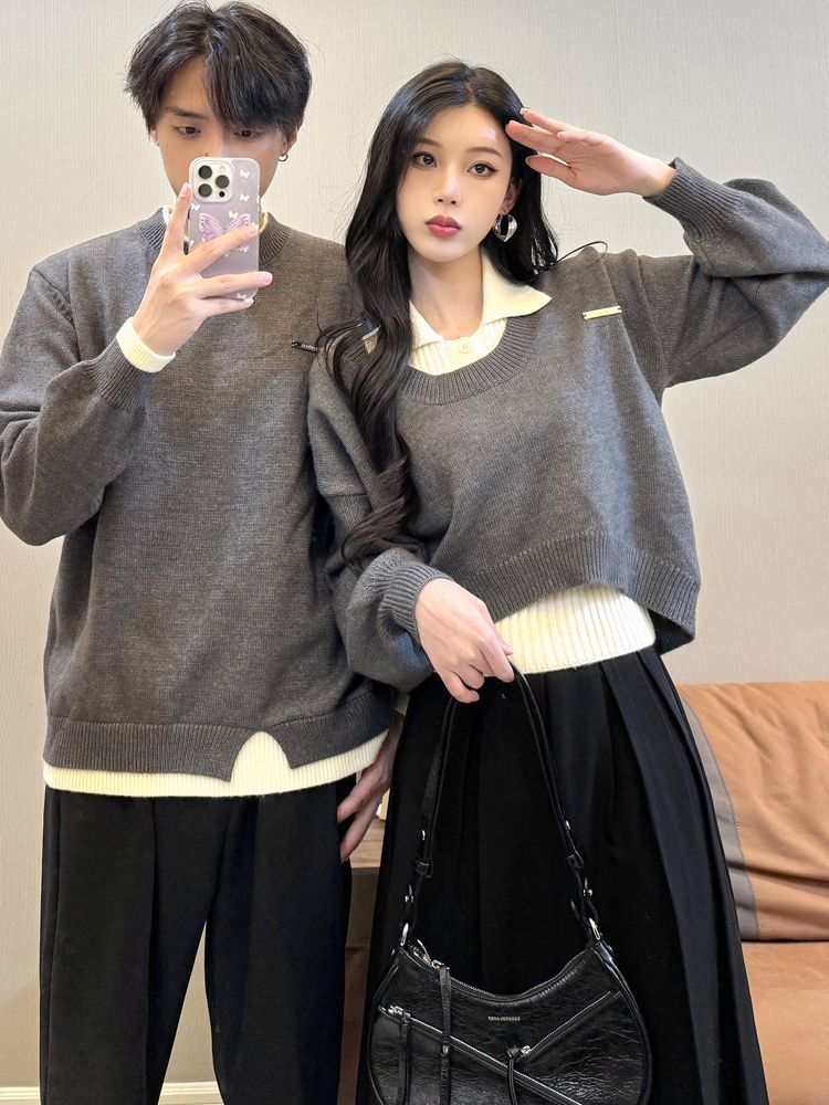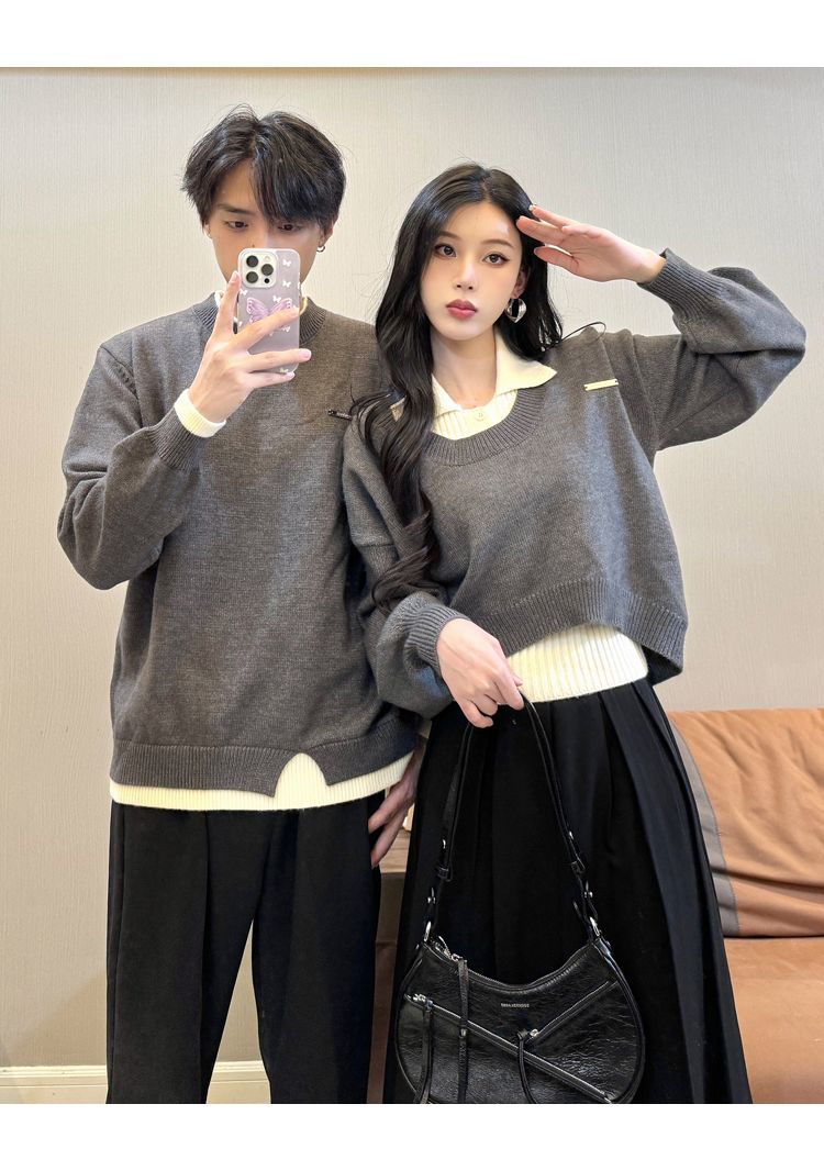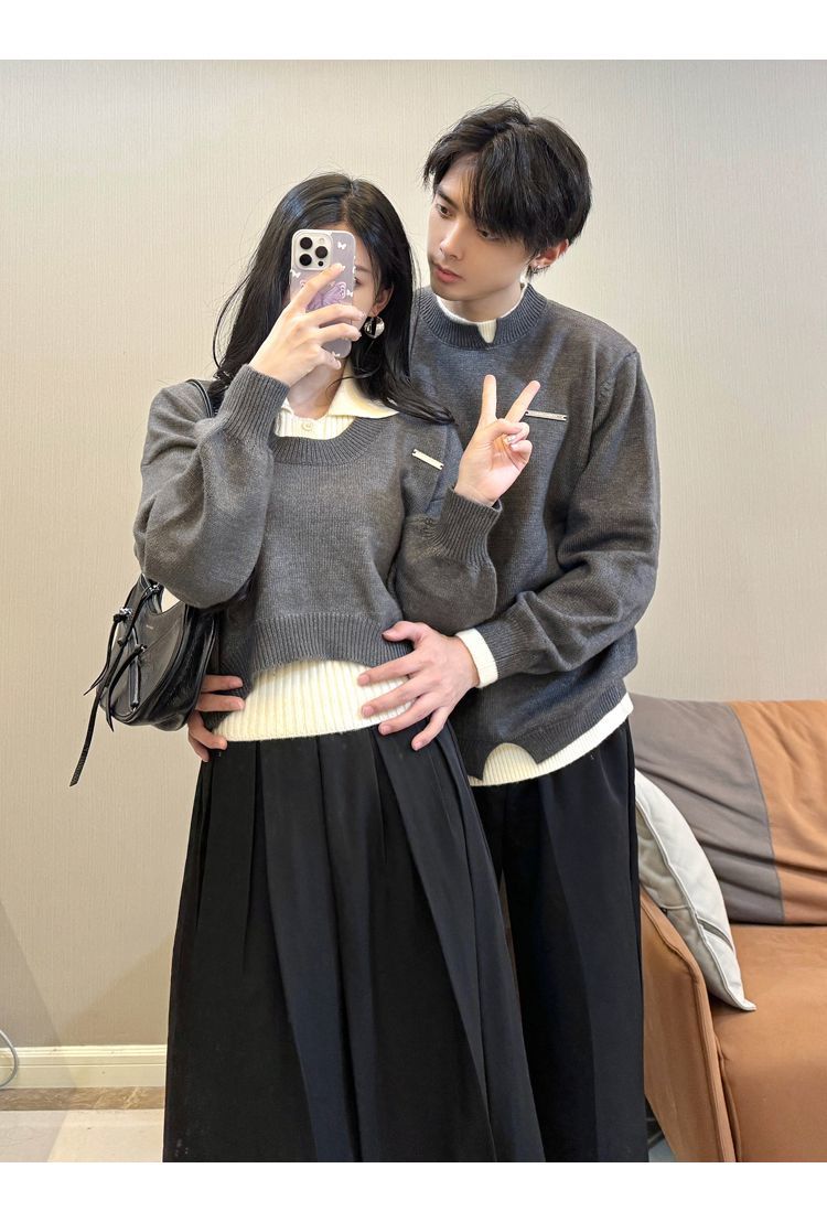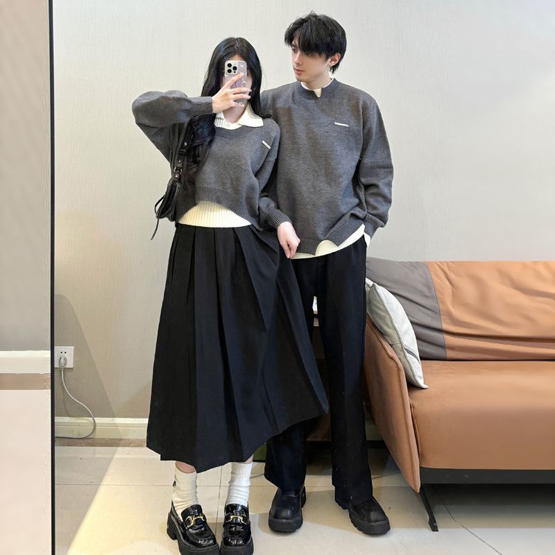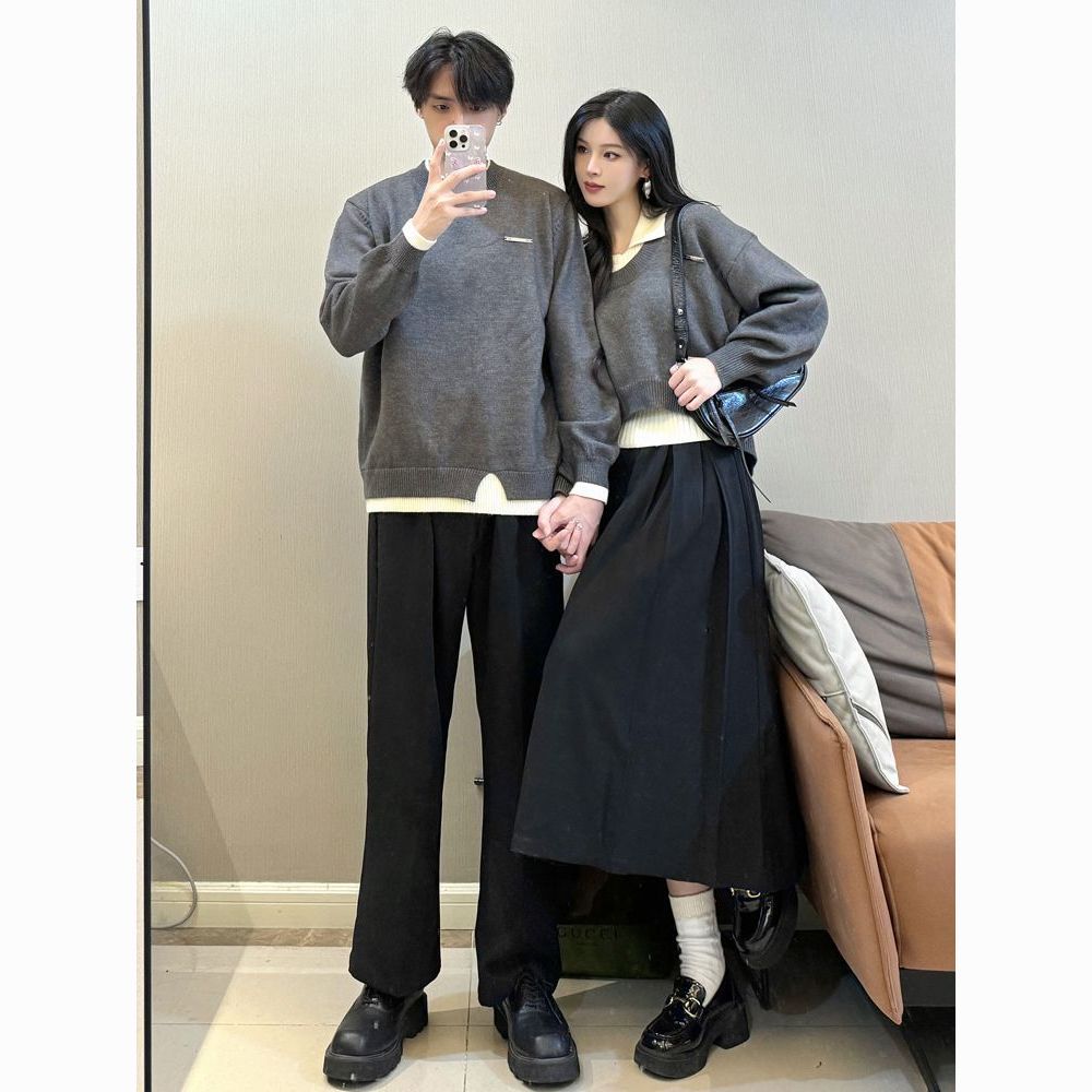 情侣装高级感套装一衣一裙叠穿针织衫配裙子两件套短款毛衣罩衫秋