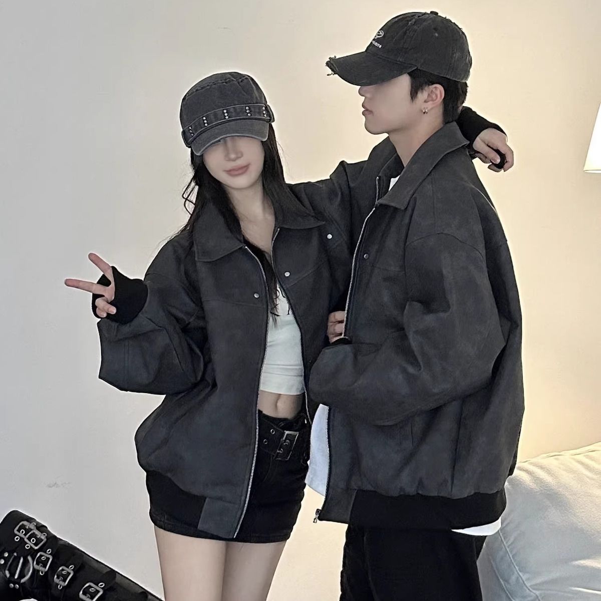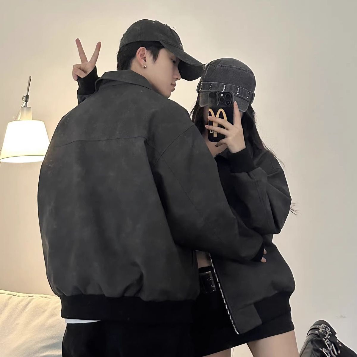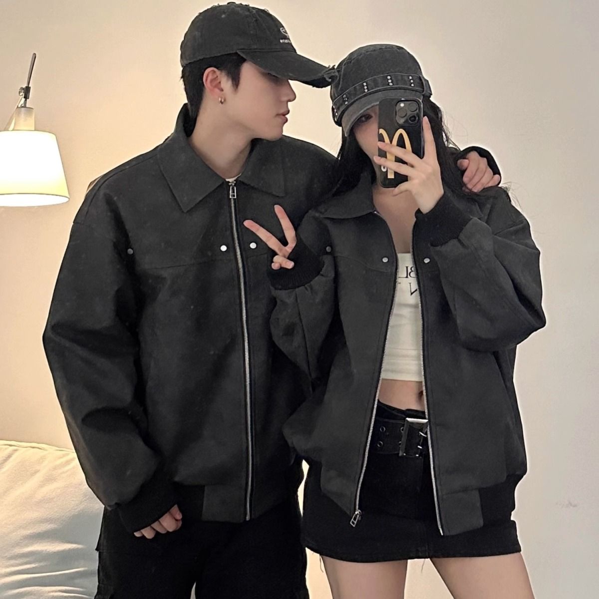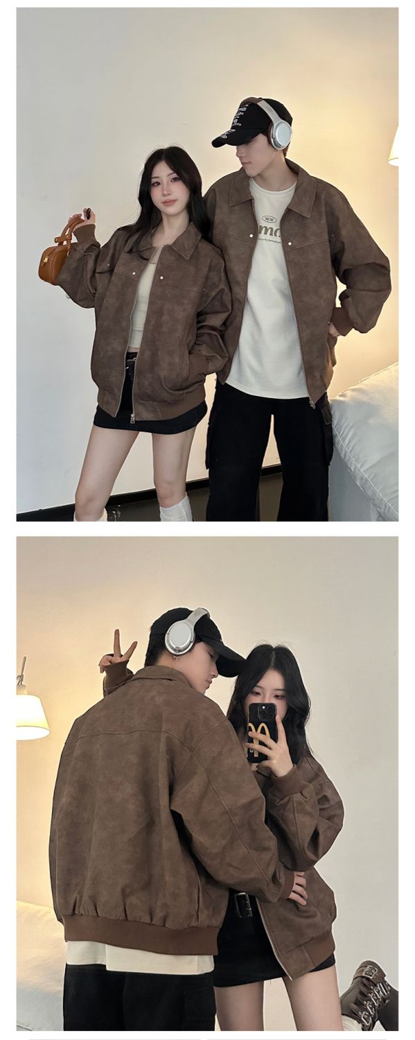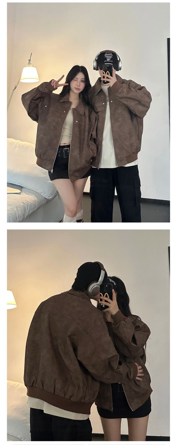 LEMR高级感情侣装秋冬2024新款小众设计休闲夹克男女宽松外套潮牌
