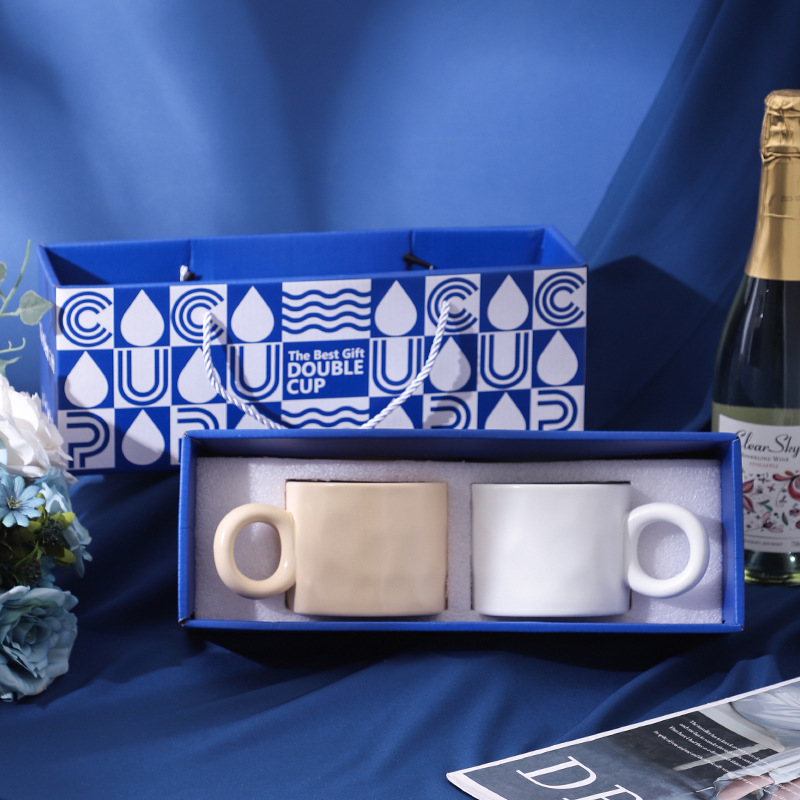 新年礼品高档礼品杯克莱因蓝奶油风INS陶瓷马克杯礼盒套装伴手礼