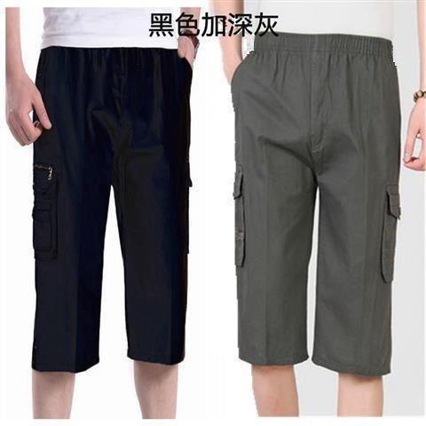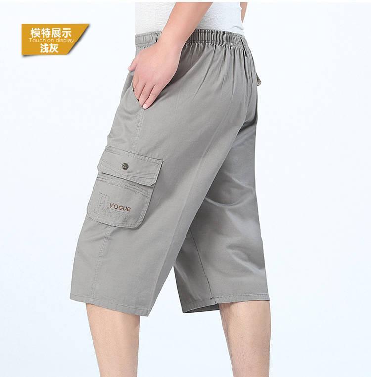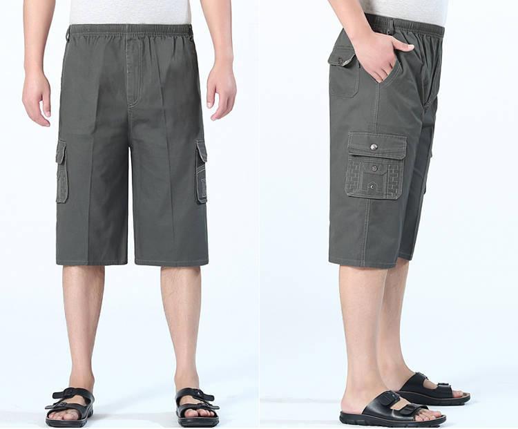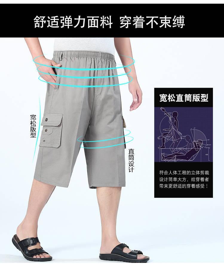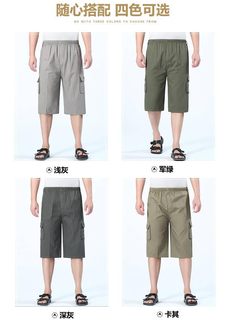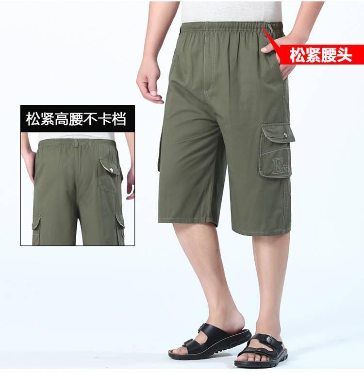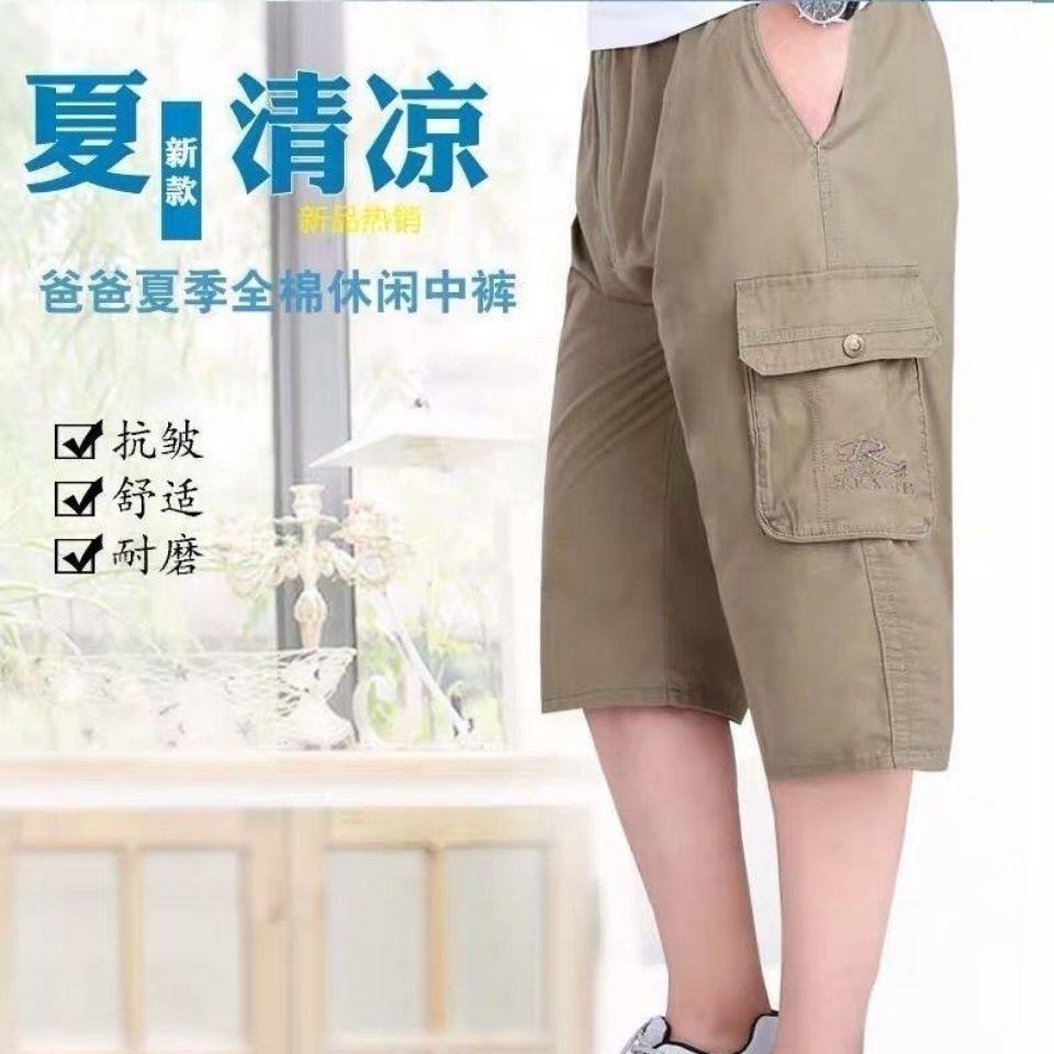 夏季全棉中老年男士休闲裤宽松透气爸爸装马裤过膝中裤七分工装裤