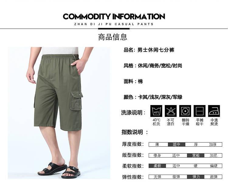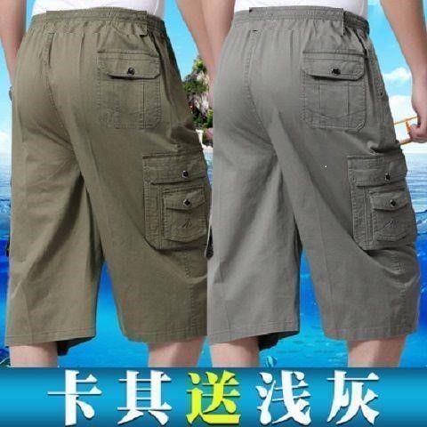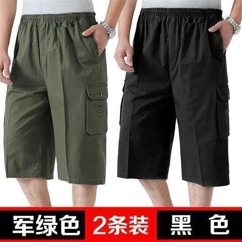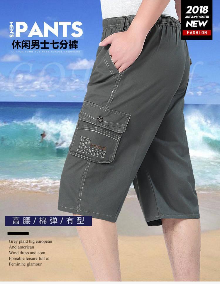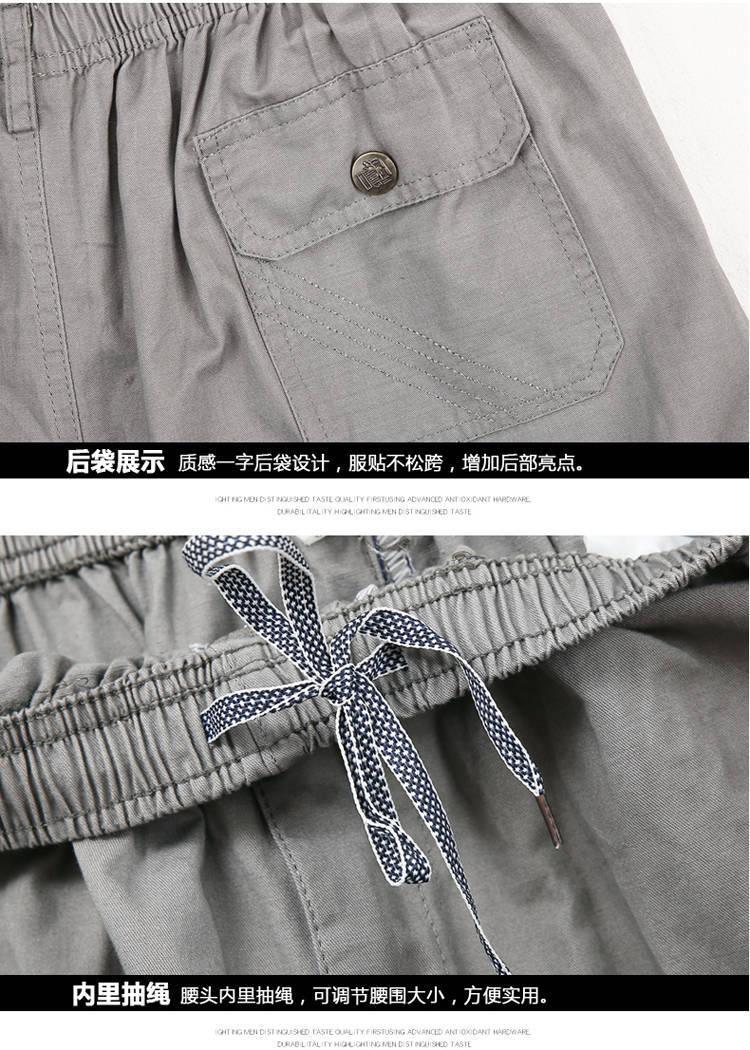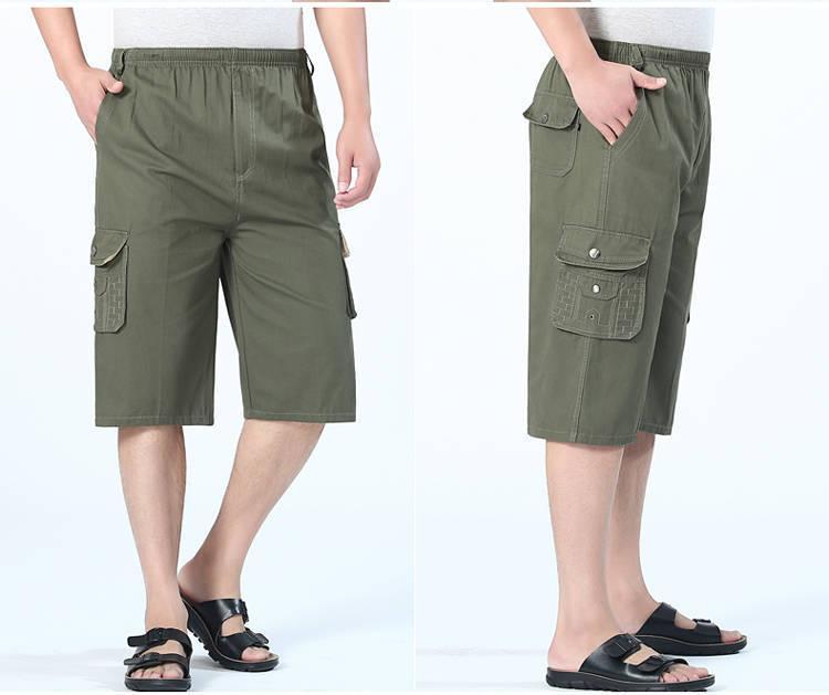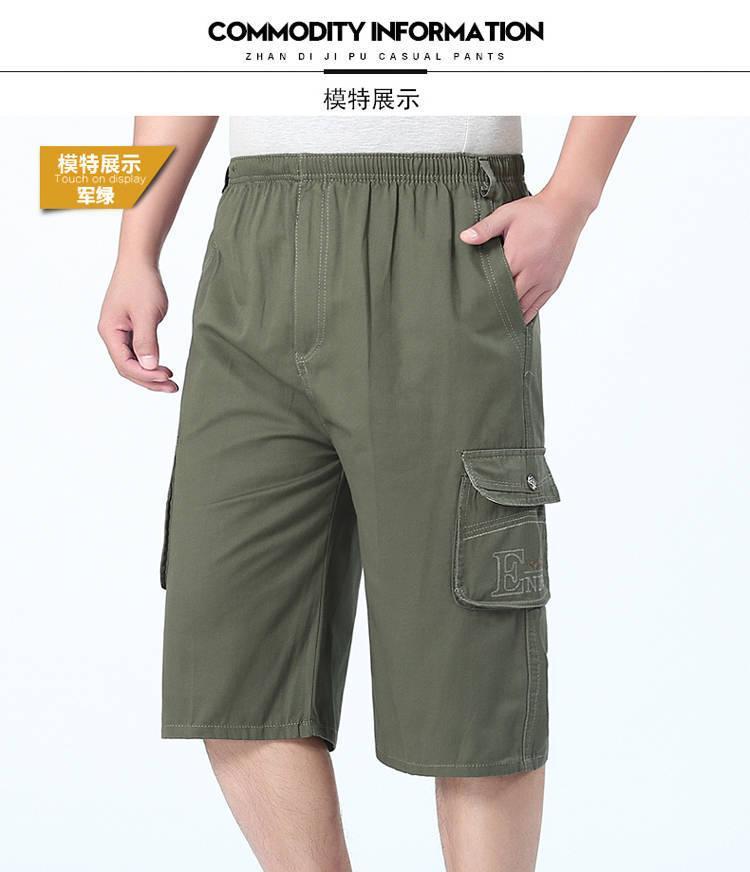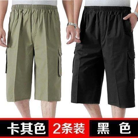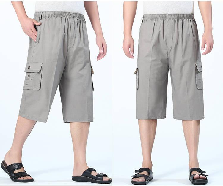 夏季全棉中老年男士休闲裤宽松透气爸爸装马裤过膝中裤七分工装裤