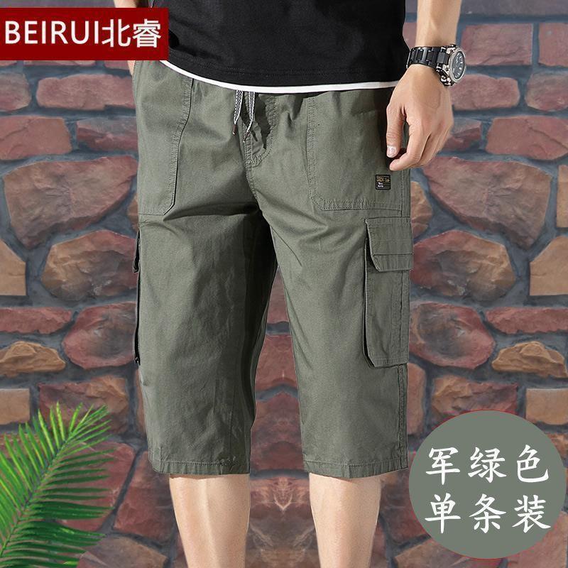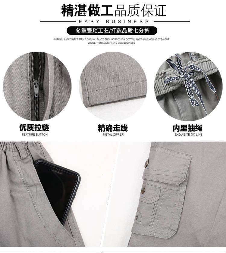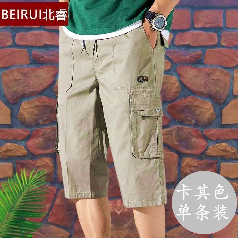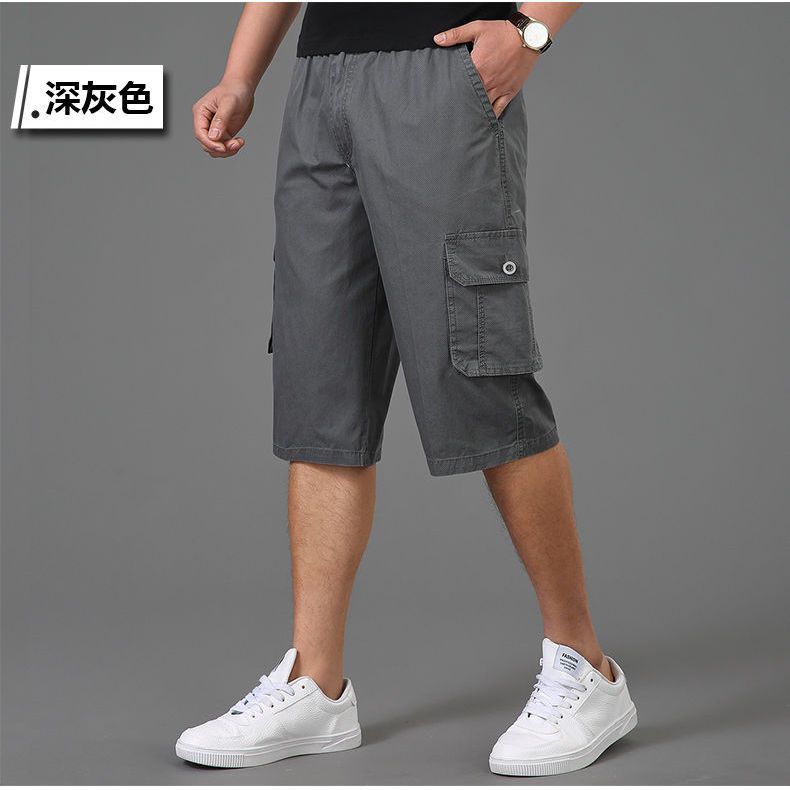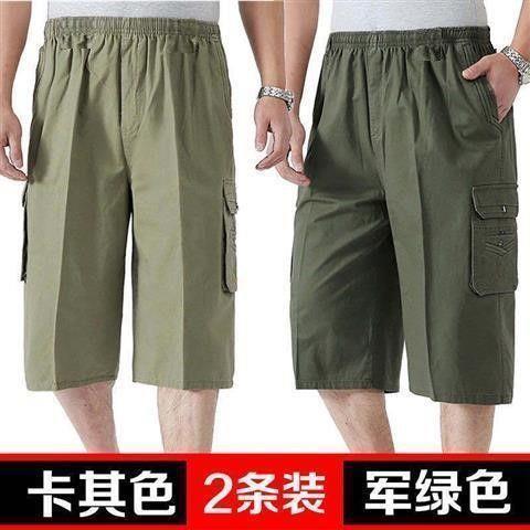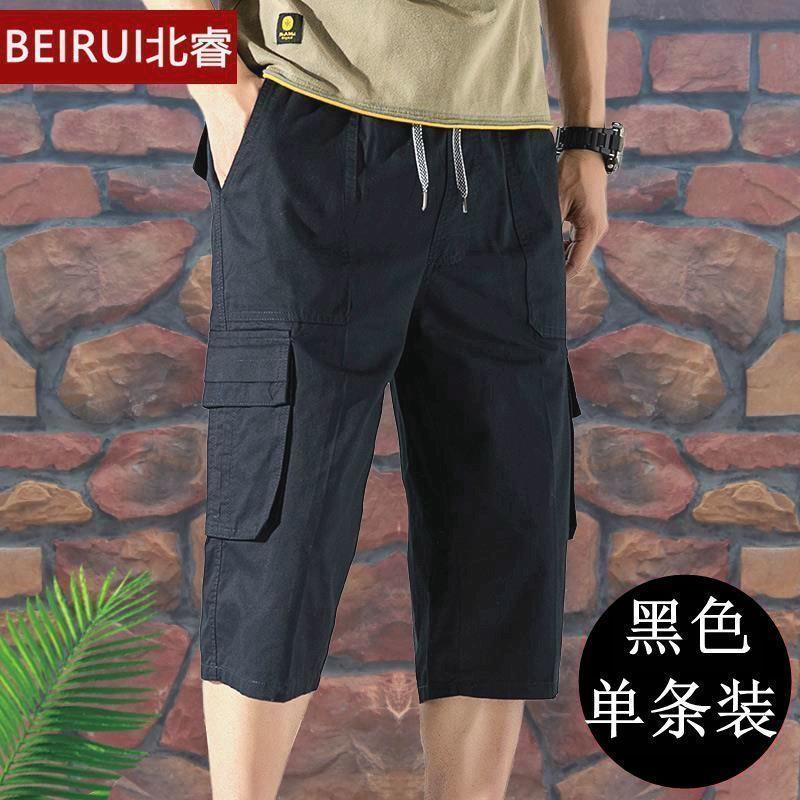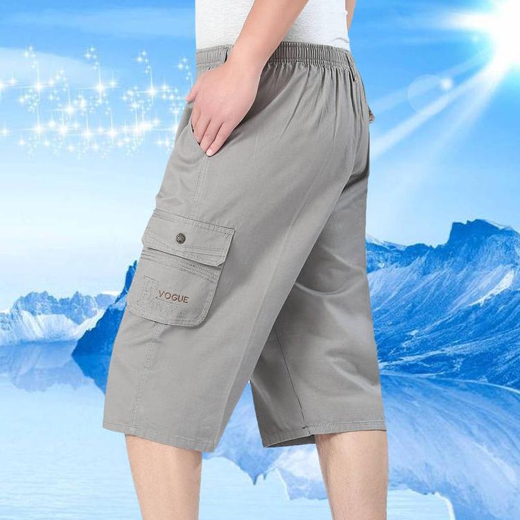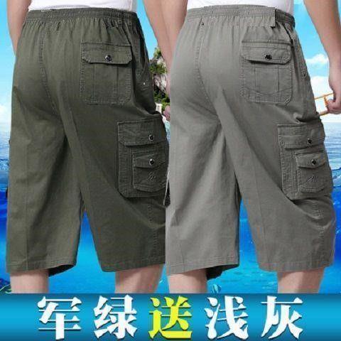 夏季全棉中老年男士休闲裤宽松透气爸爸装马裤过膝中裤七分工装裤