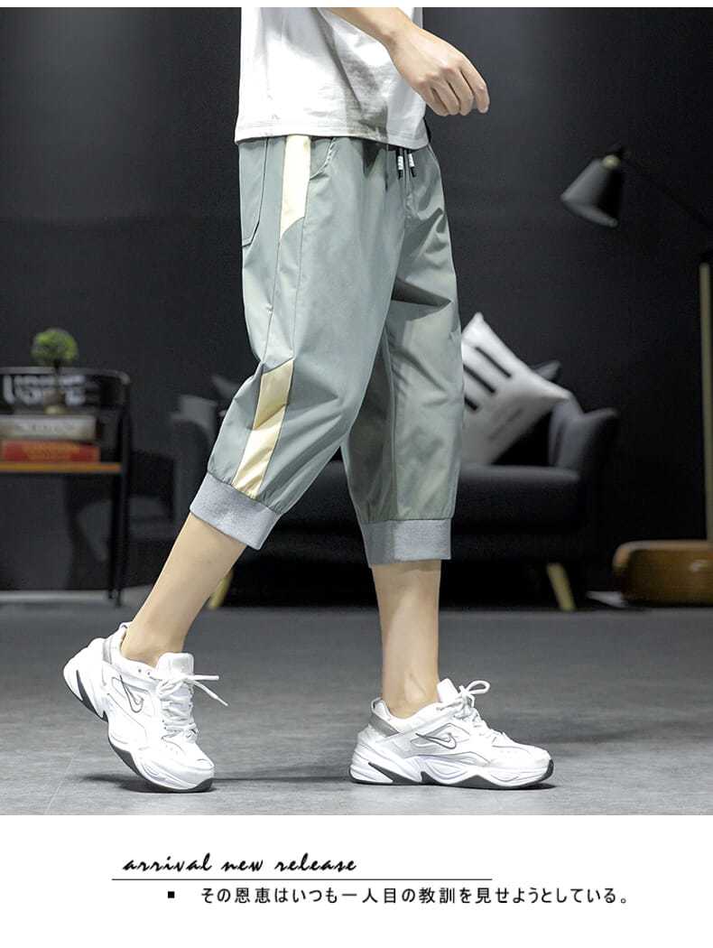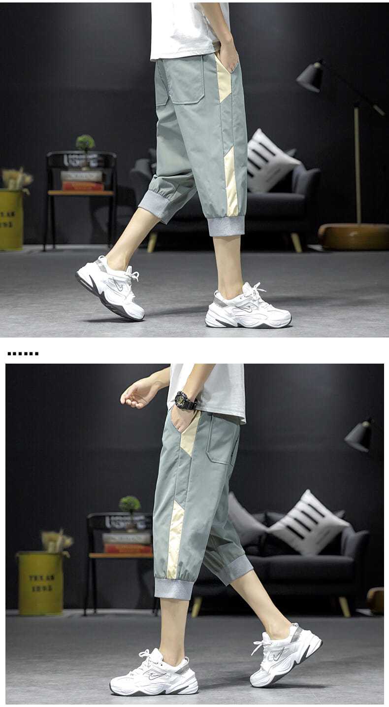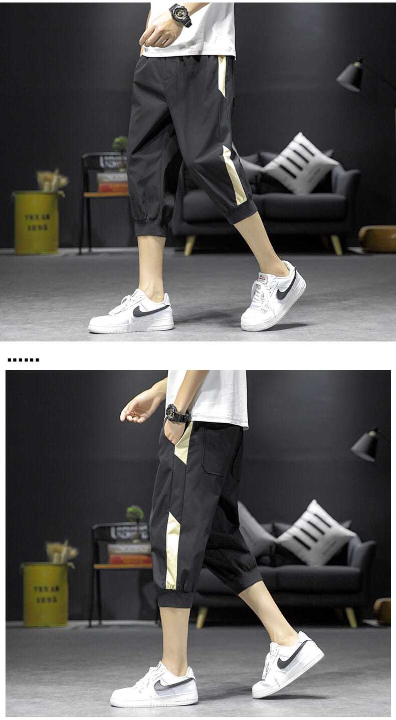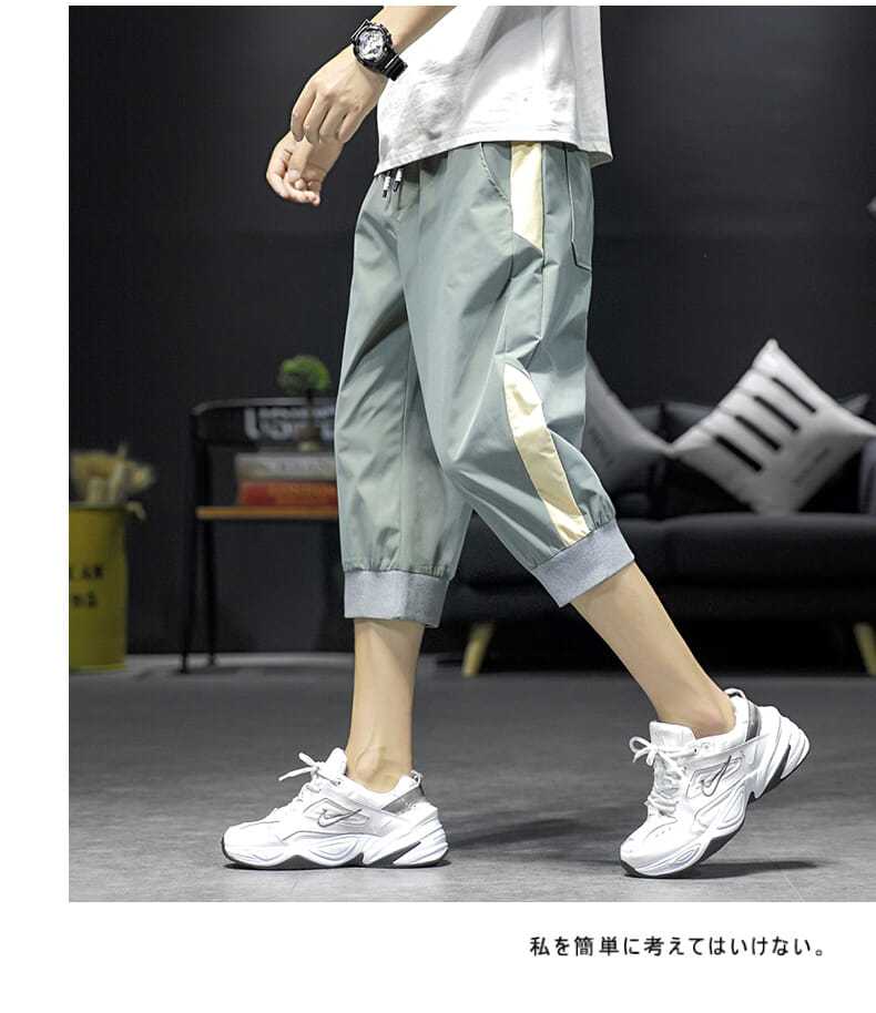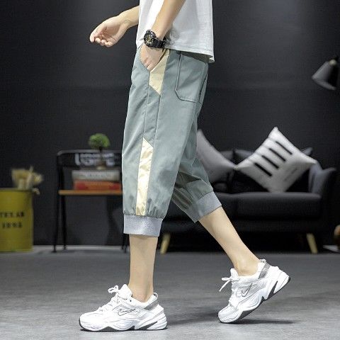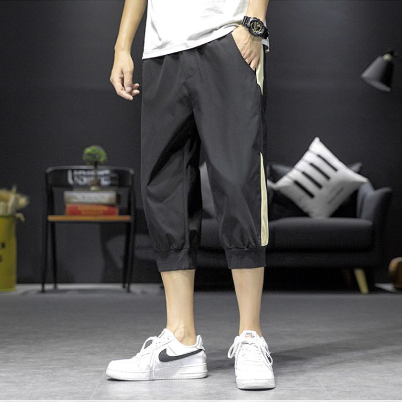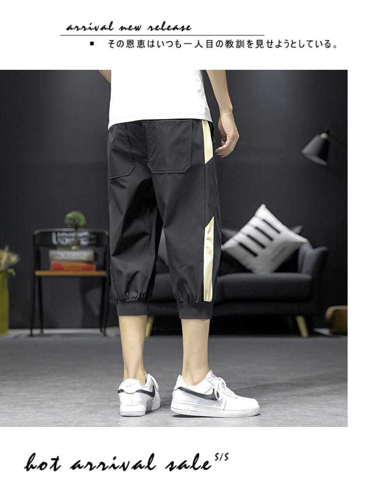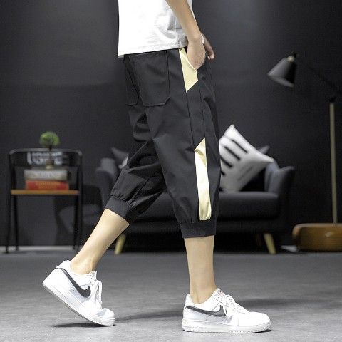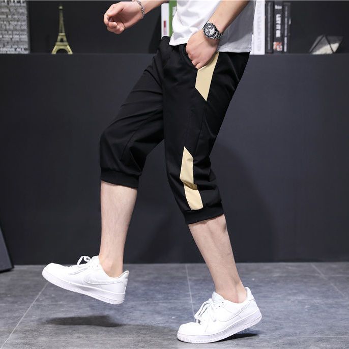 夏季男士工装七分裤条纹短裤男潮流百搭休闲运动半截裤薄款束脚裤