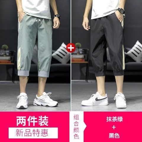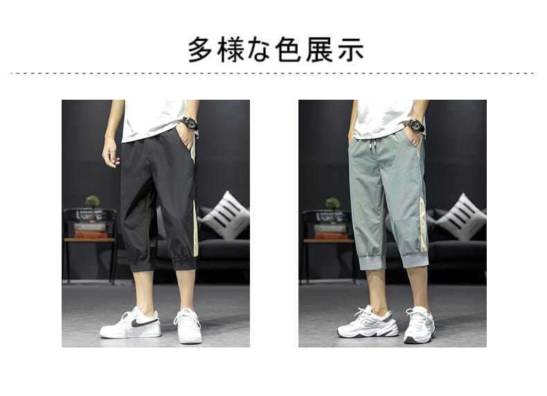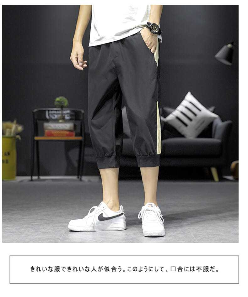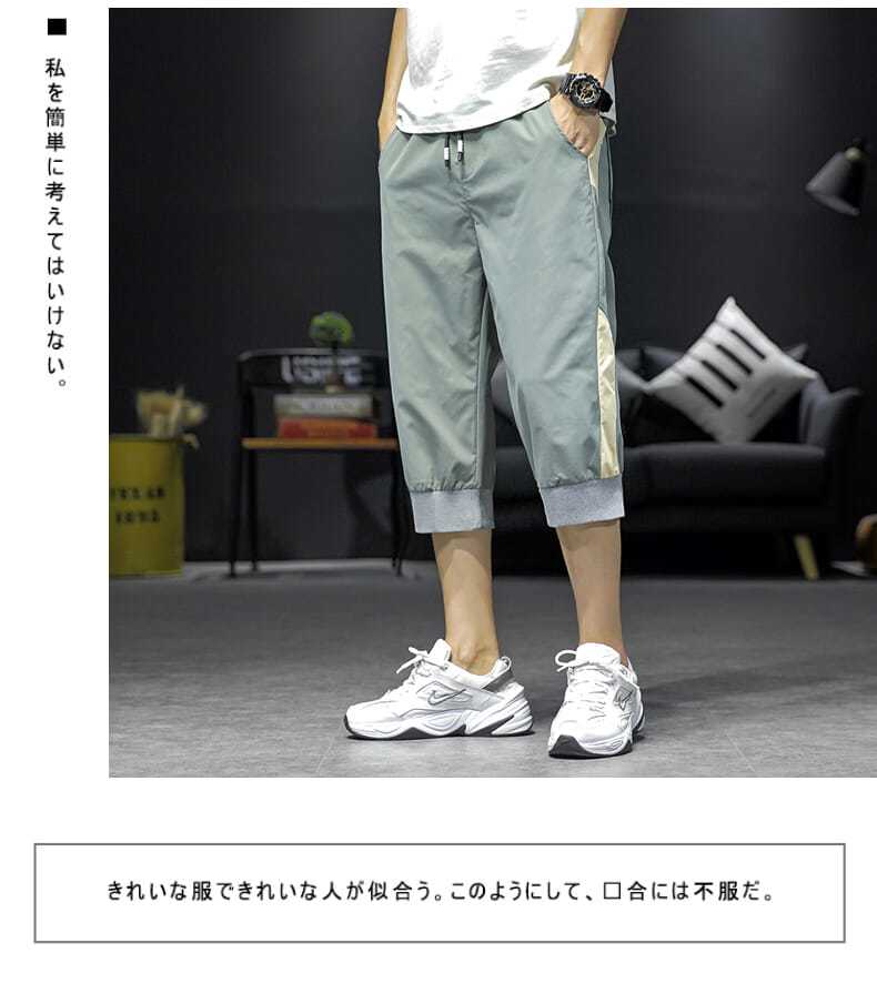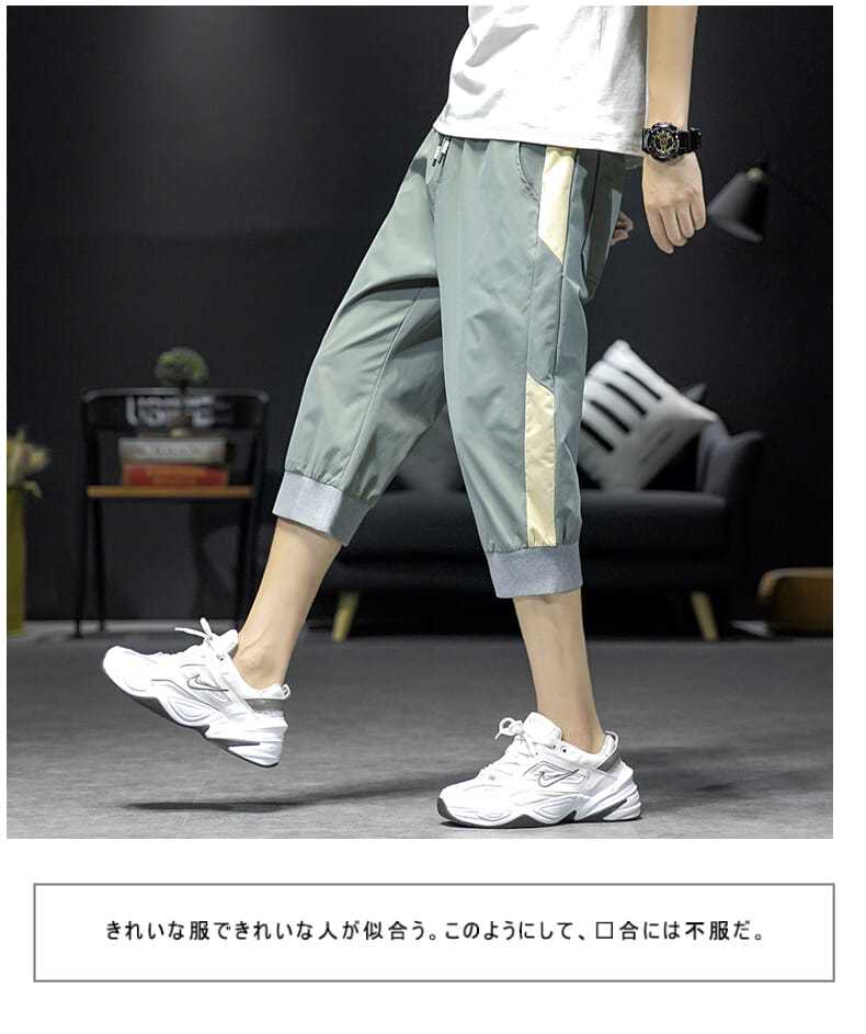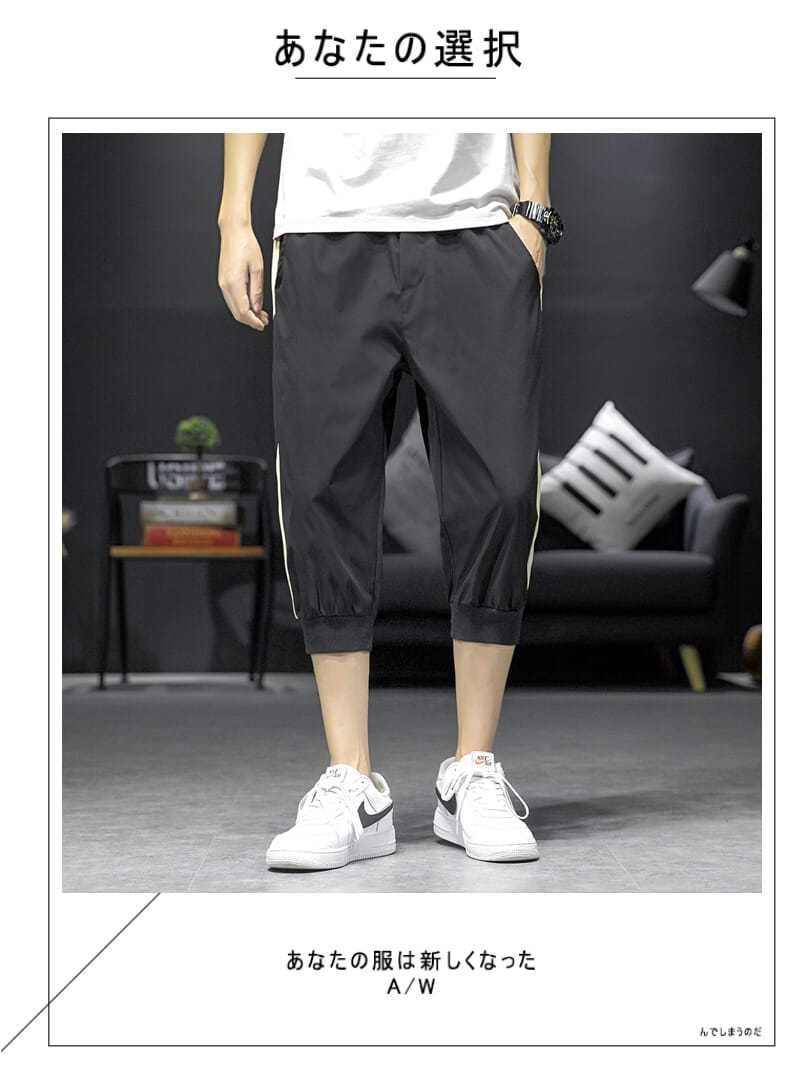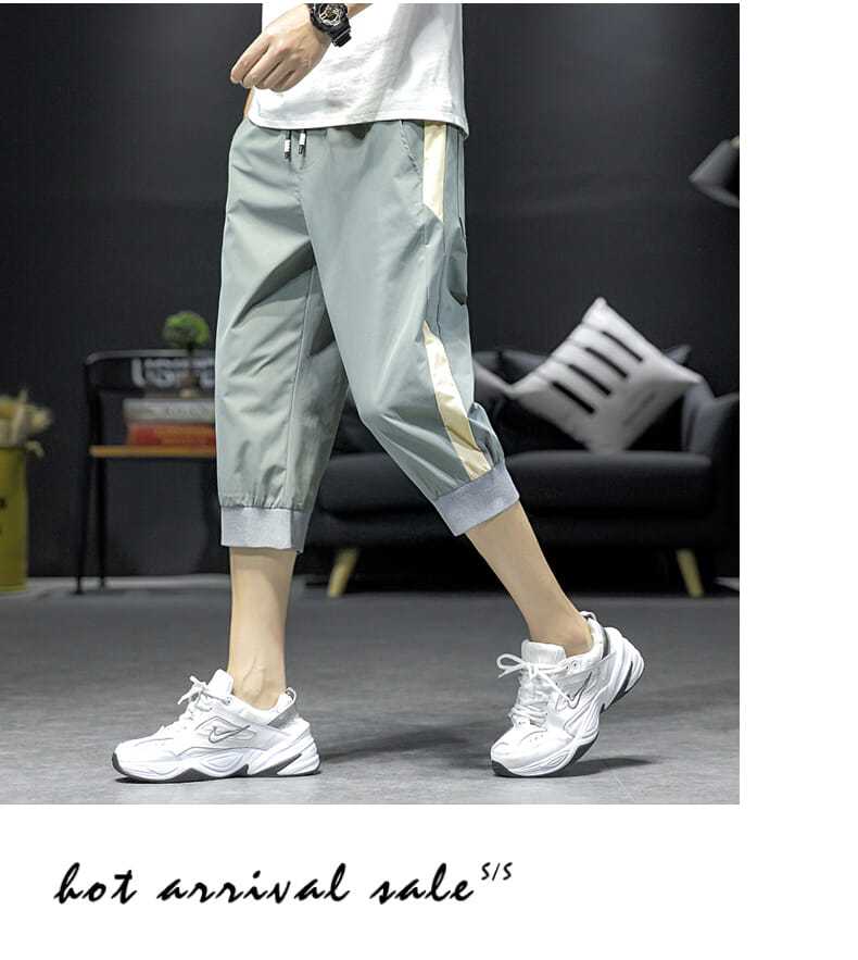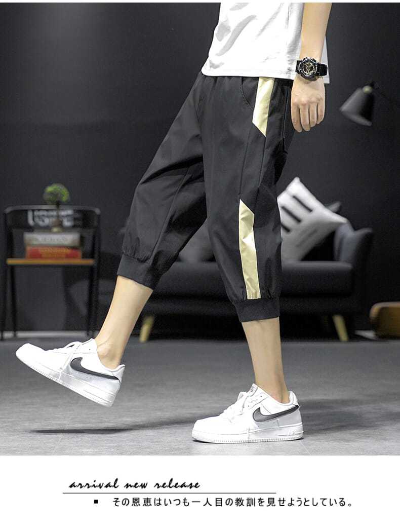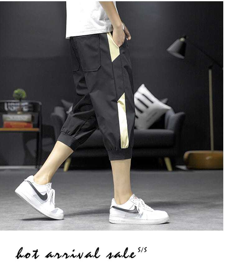 夏季男士工装七分裤条纹短裤男潮流百搭休闲运动半截裤薄款束脚裤