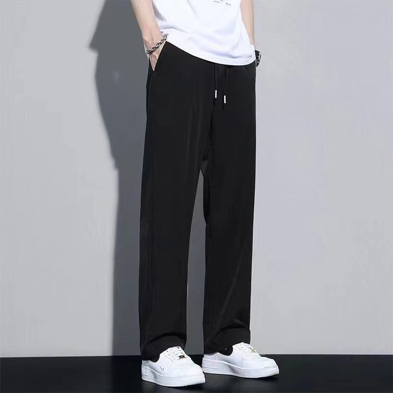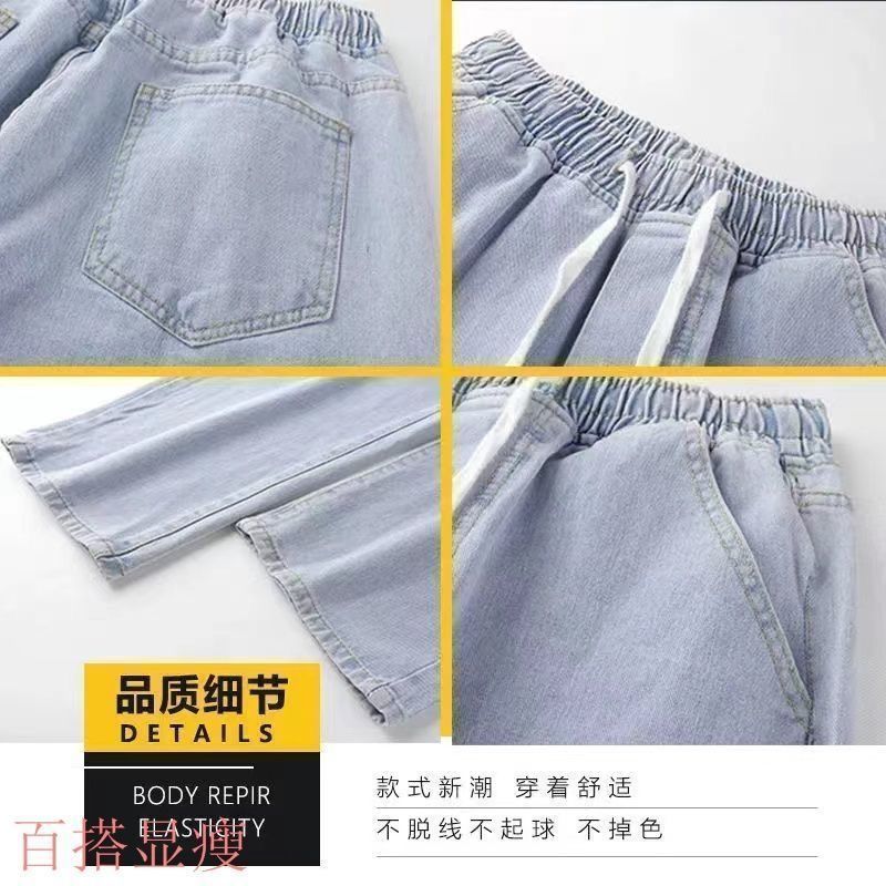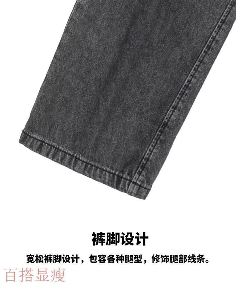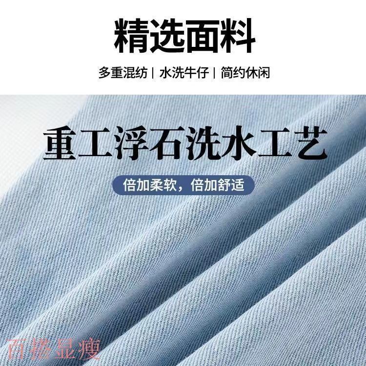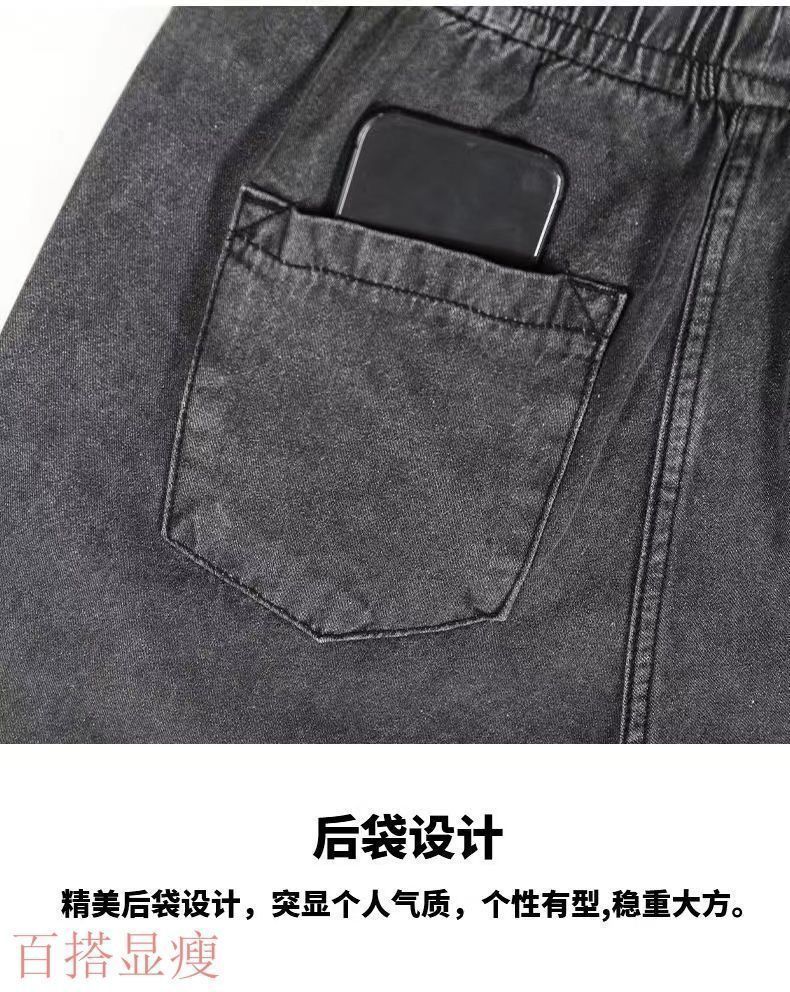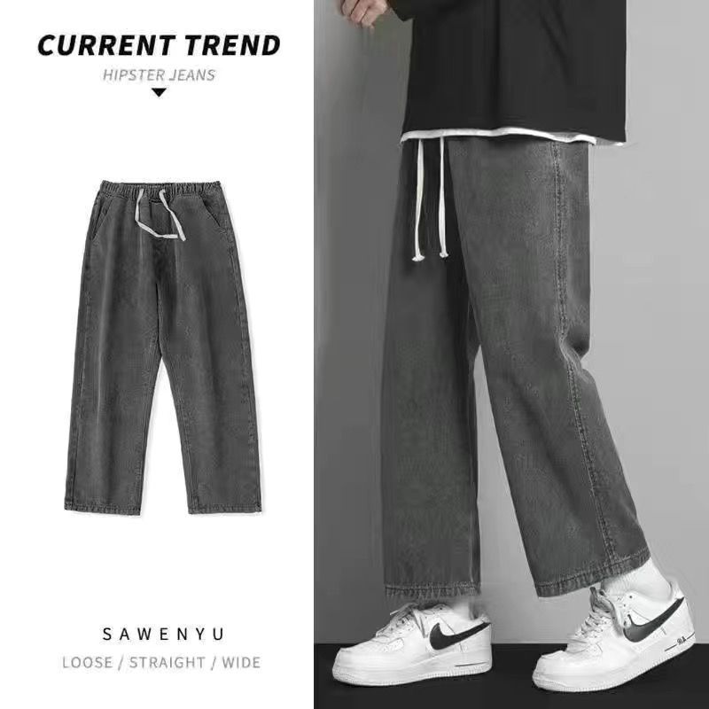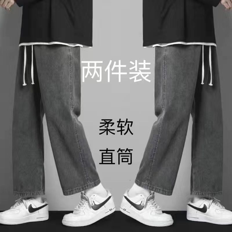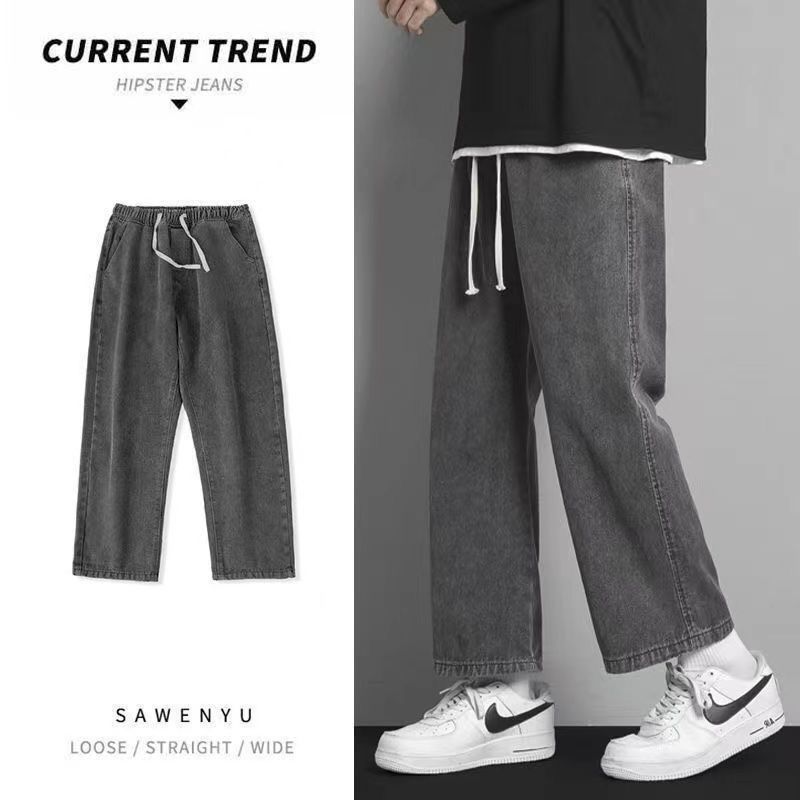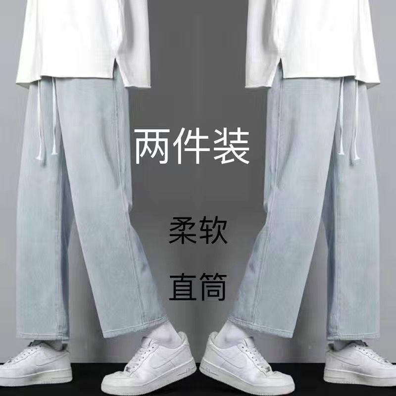 春秋新款牛仔裤男ins宽松直筒裤子潮流百搭复古松紧腰阔腿九分裤