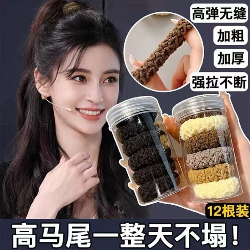 新款加厚加粗加宽扎头发橡皮筋发圈头绳高马尾高弹力耐用柔纸巾