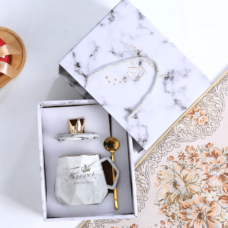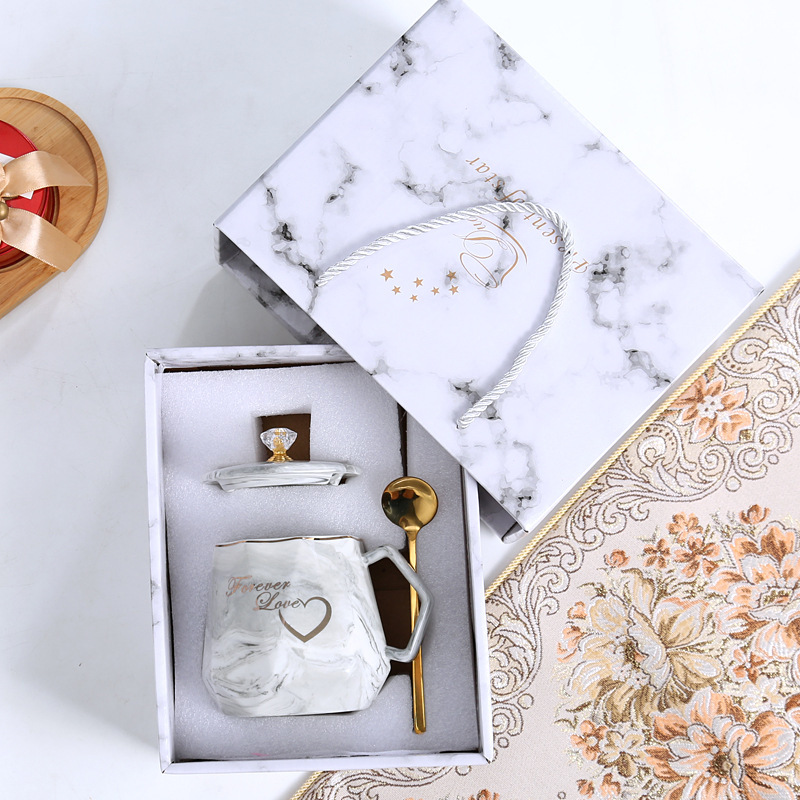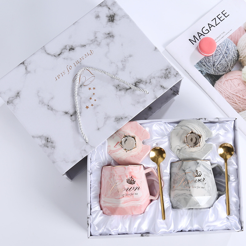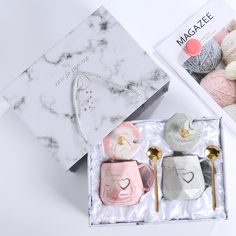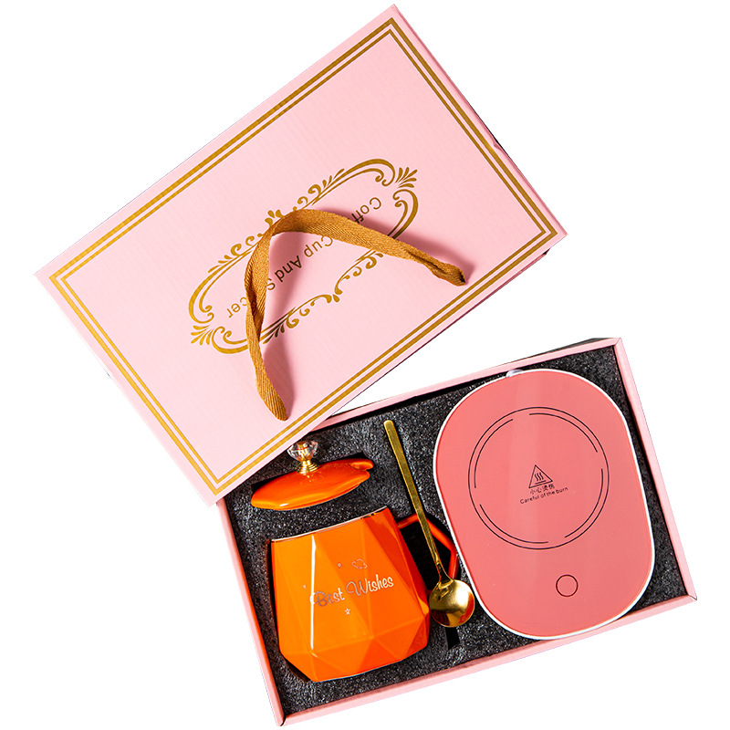 马克杯套装55度恒温杯咖啡杯礼盒自动加热印制大理石纹礼品伴手礼