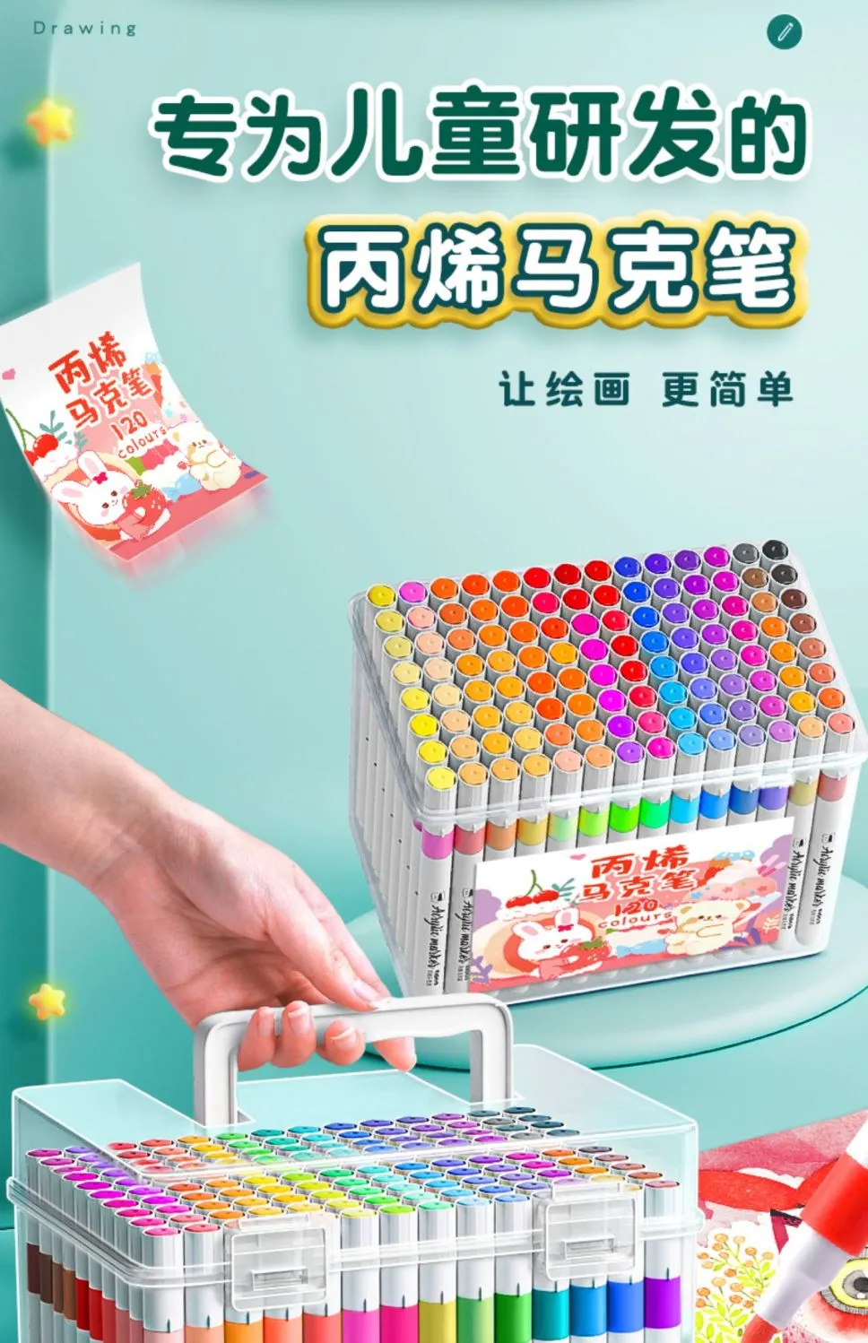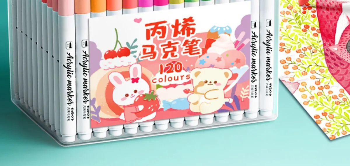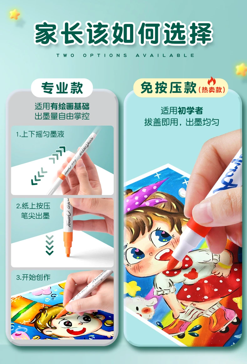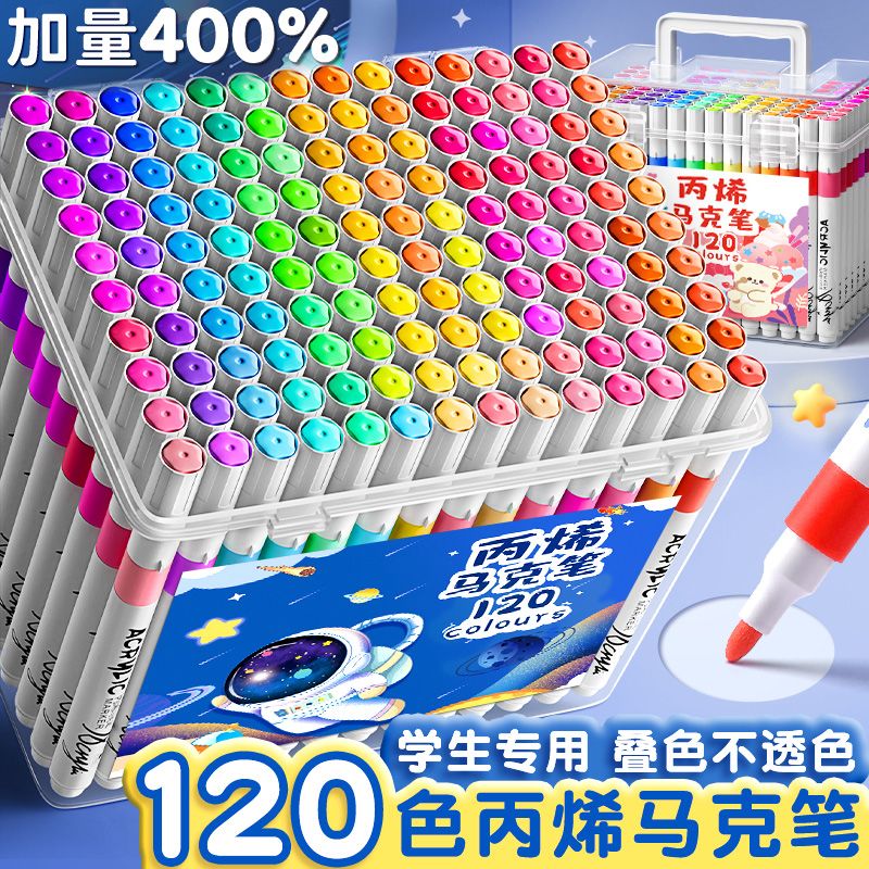 丙烯马克笔儿童美术学生水洗专用不透色防水可叠色幼儿园水彩笔