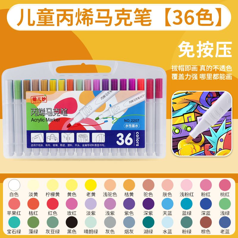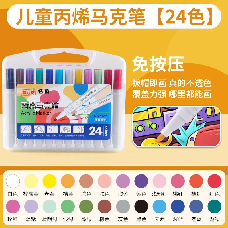 名韵丙烯马克笔24色36色学生美术专用幼儿园diy防水不掉色印纸画