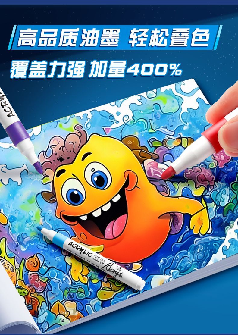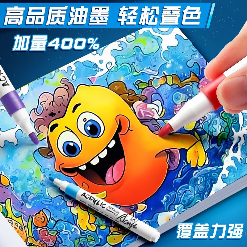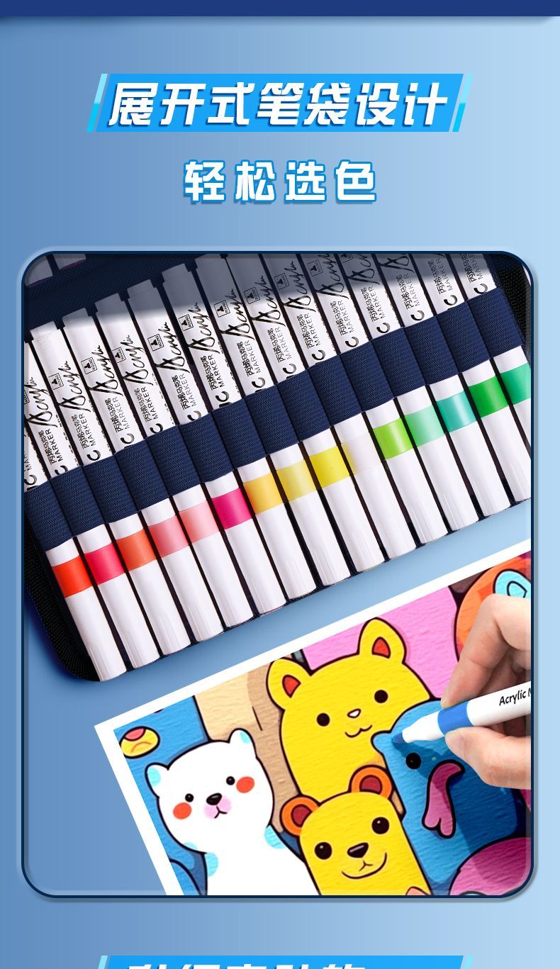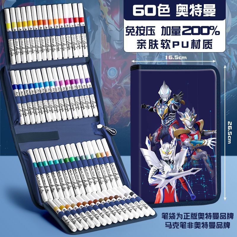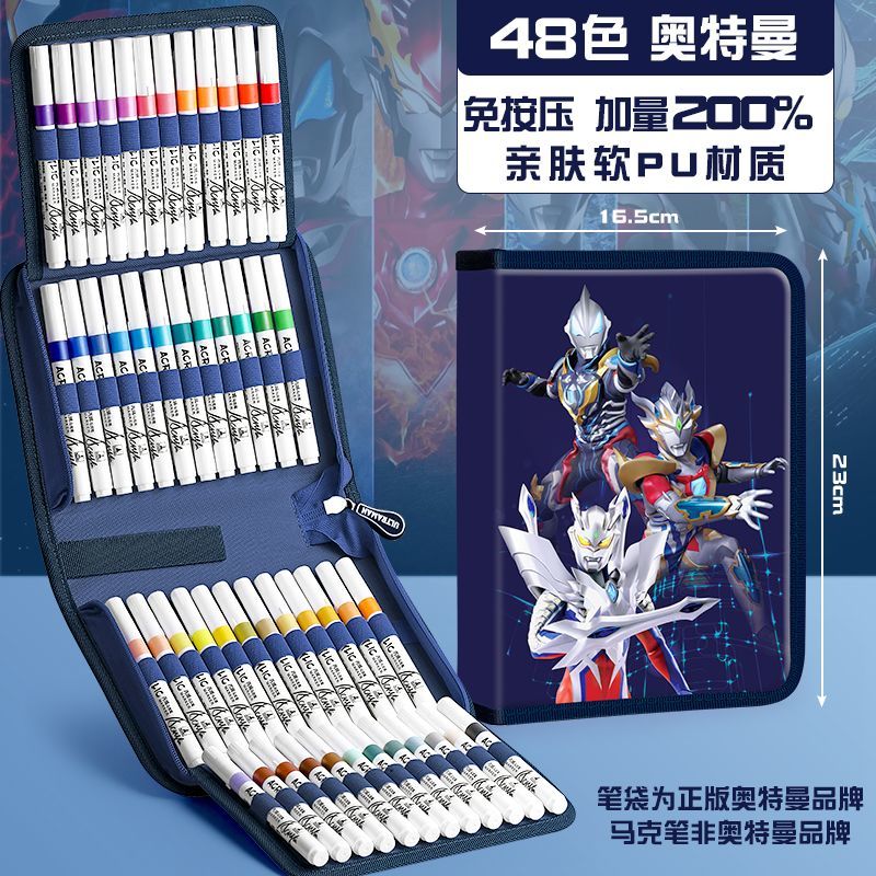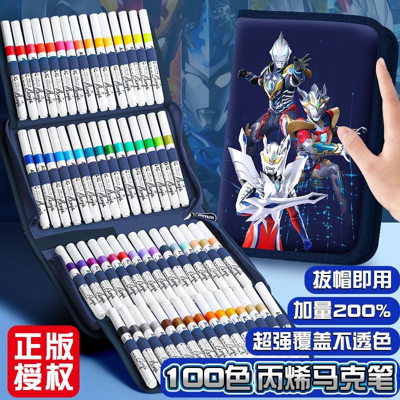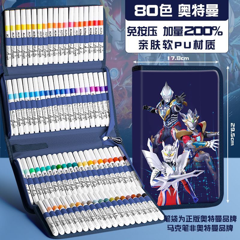 奥特曼丙烯马克笔48色不透纸可叠色学生儿童专用水彩画画笔收纳包