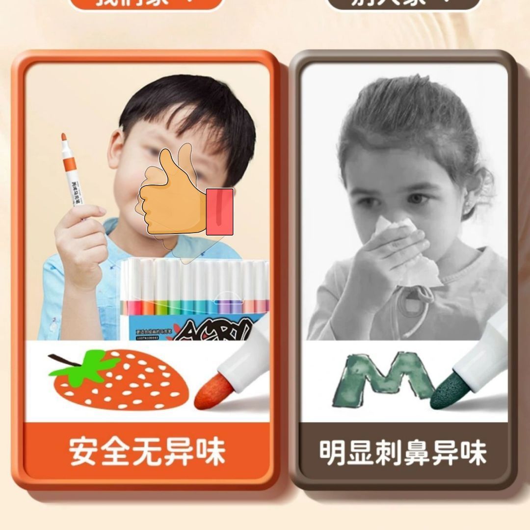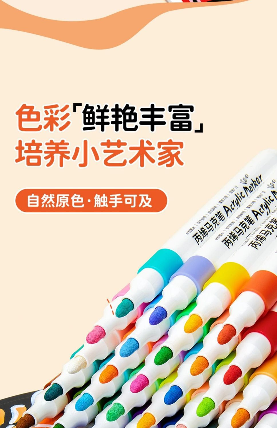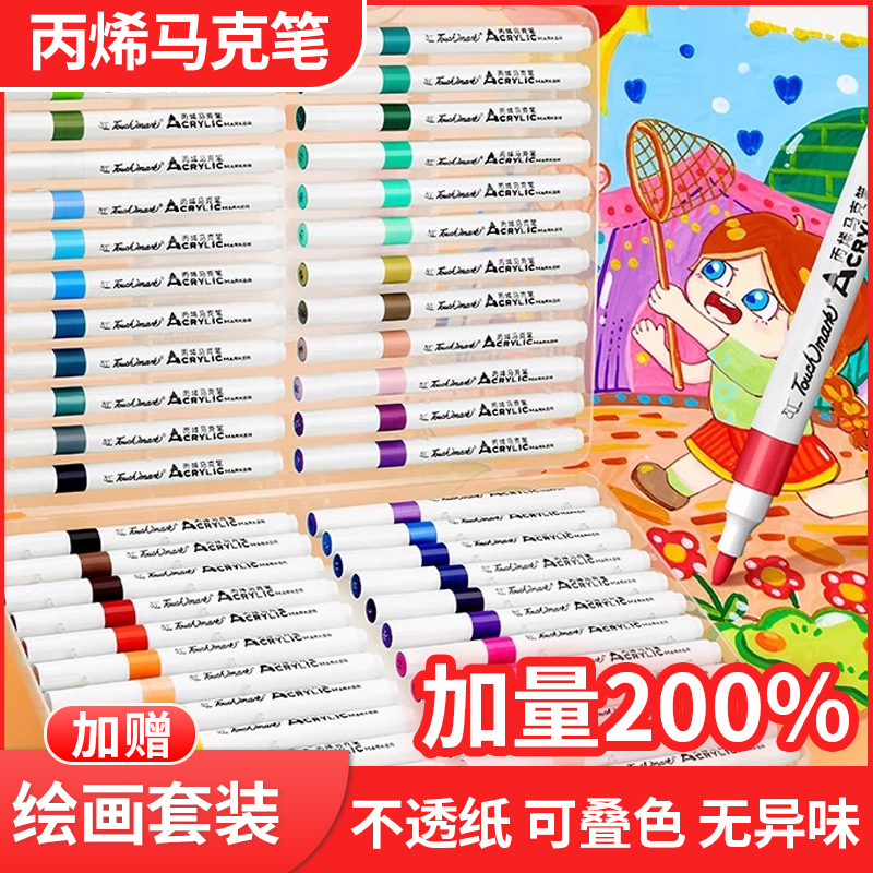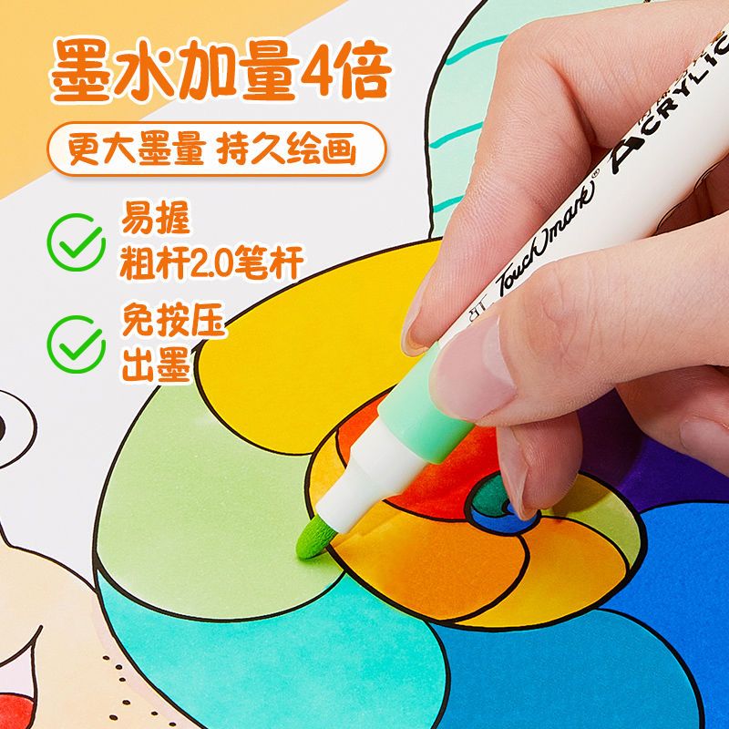 正版丙烯马克笔儿童专用业不透纸可叠色学生美术幼儿园水洗