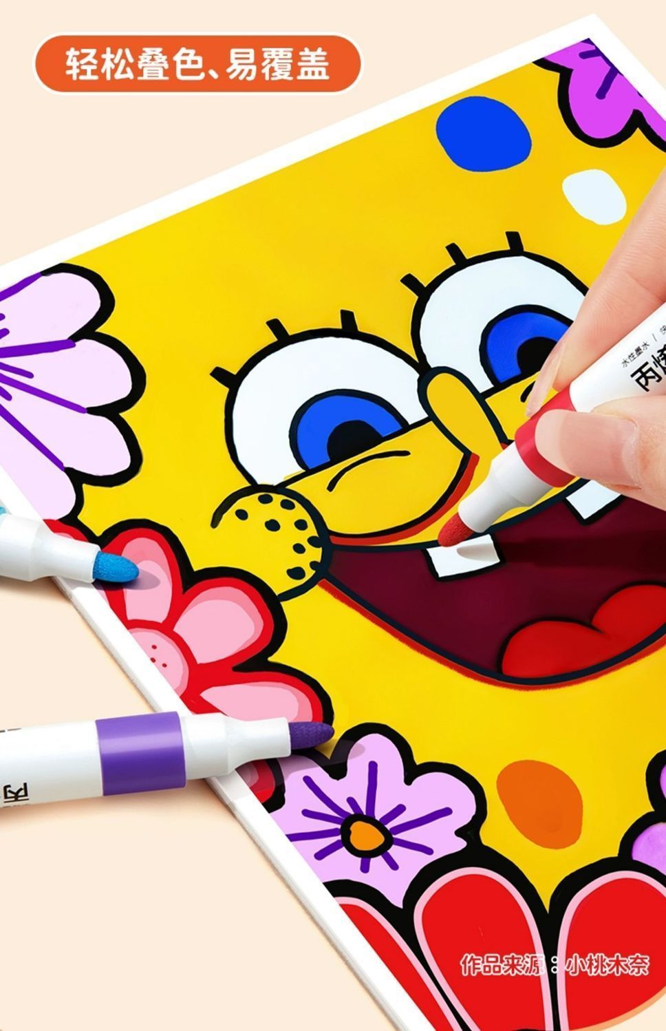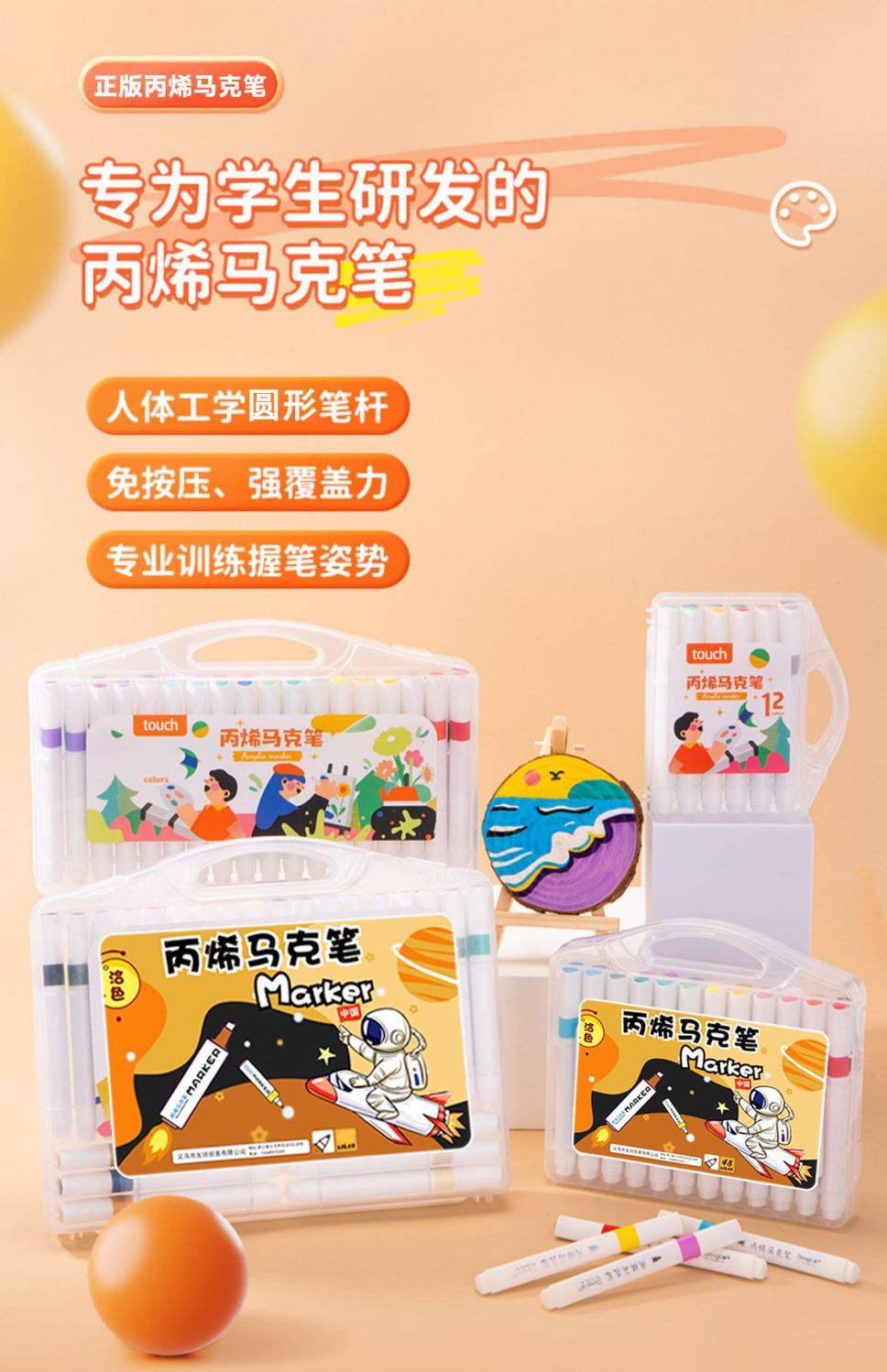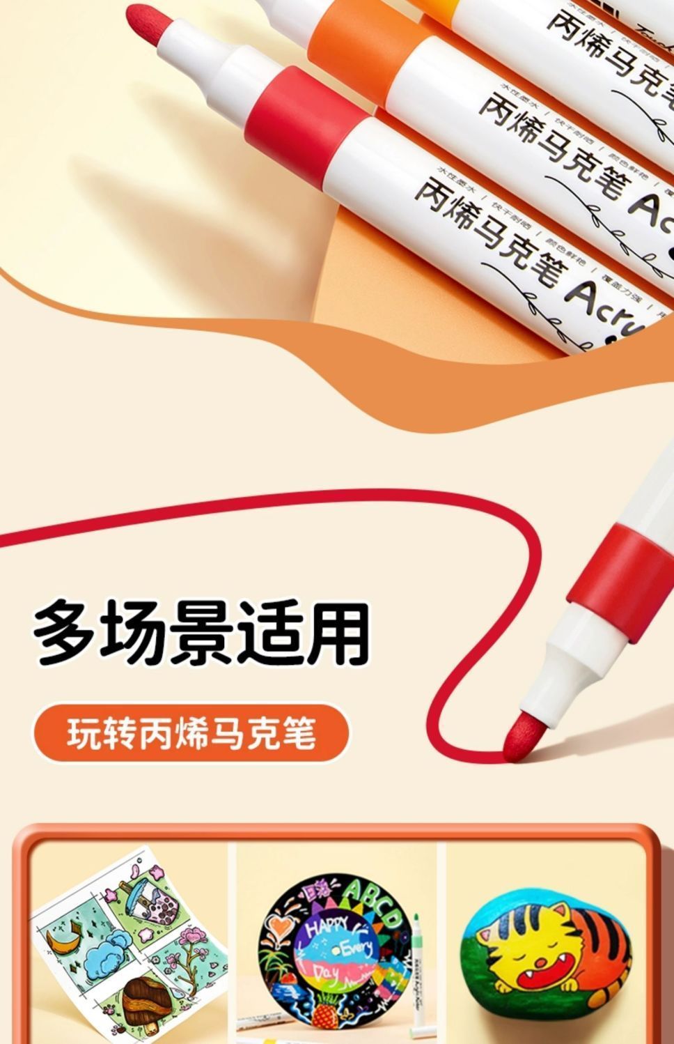 正版丙烯马克笔儿童专用业不透纸可叠色学生美术幼儿园水洗