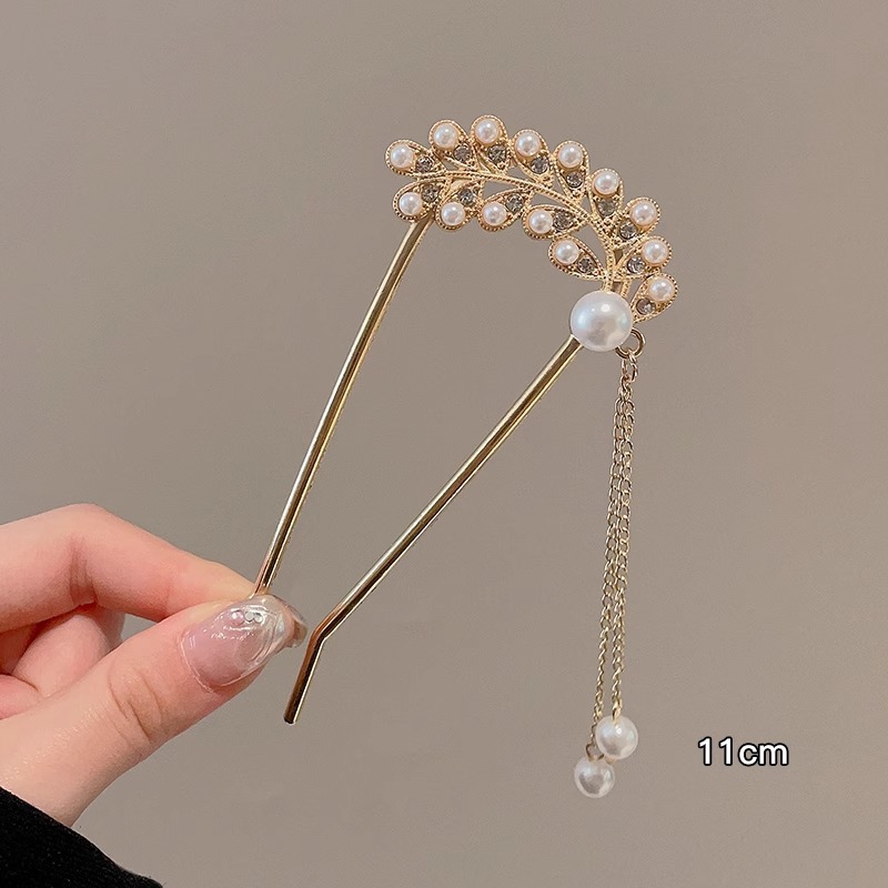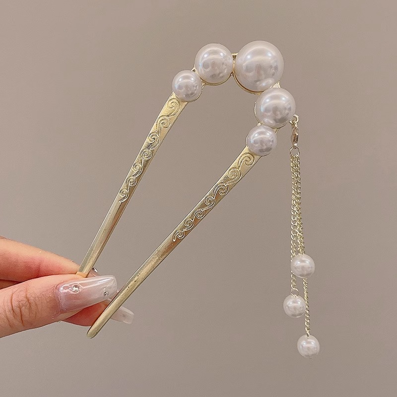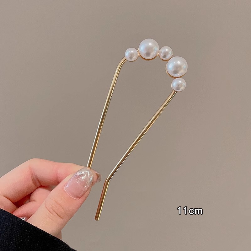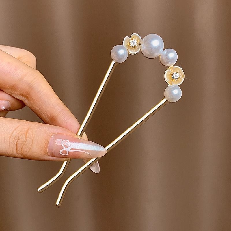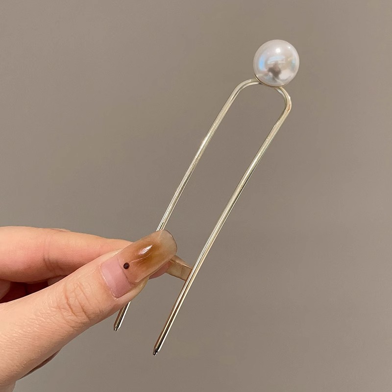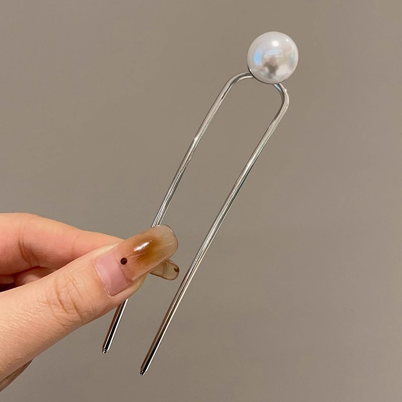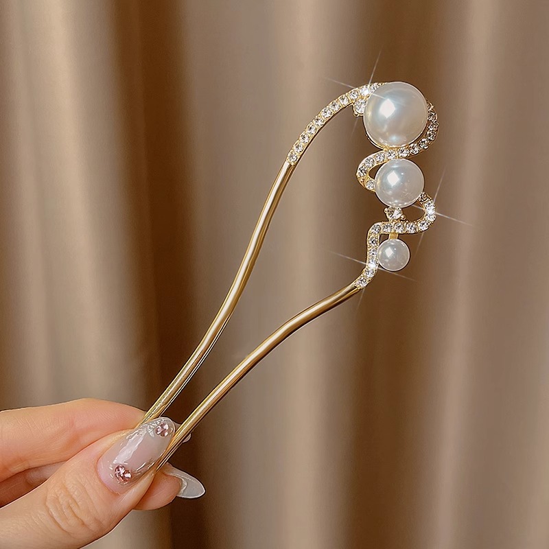 U型珍珠发簪女盘发感簪子2025年新款高端后脑勺发钗插梳头饰