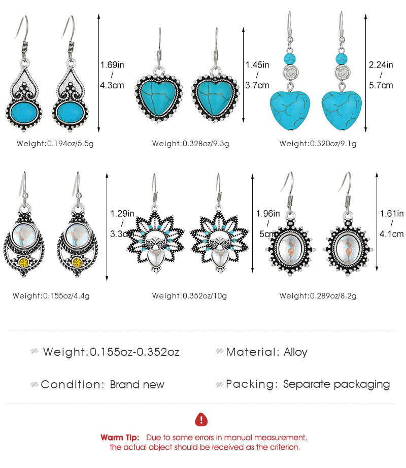 新款爱心绿松石耳环欧美ins风合金做旧几何月光石耳坠民族风耳饰