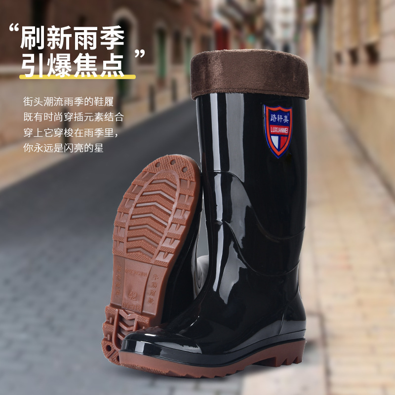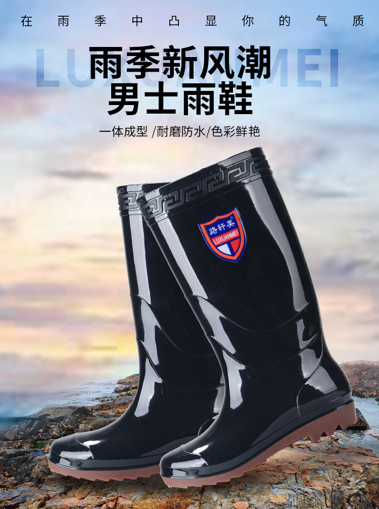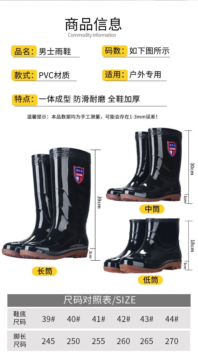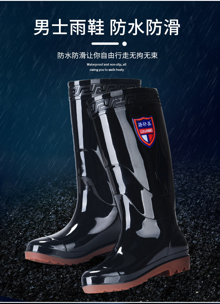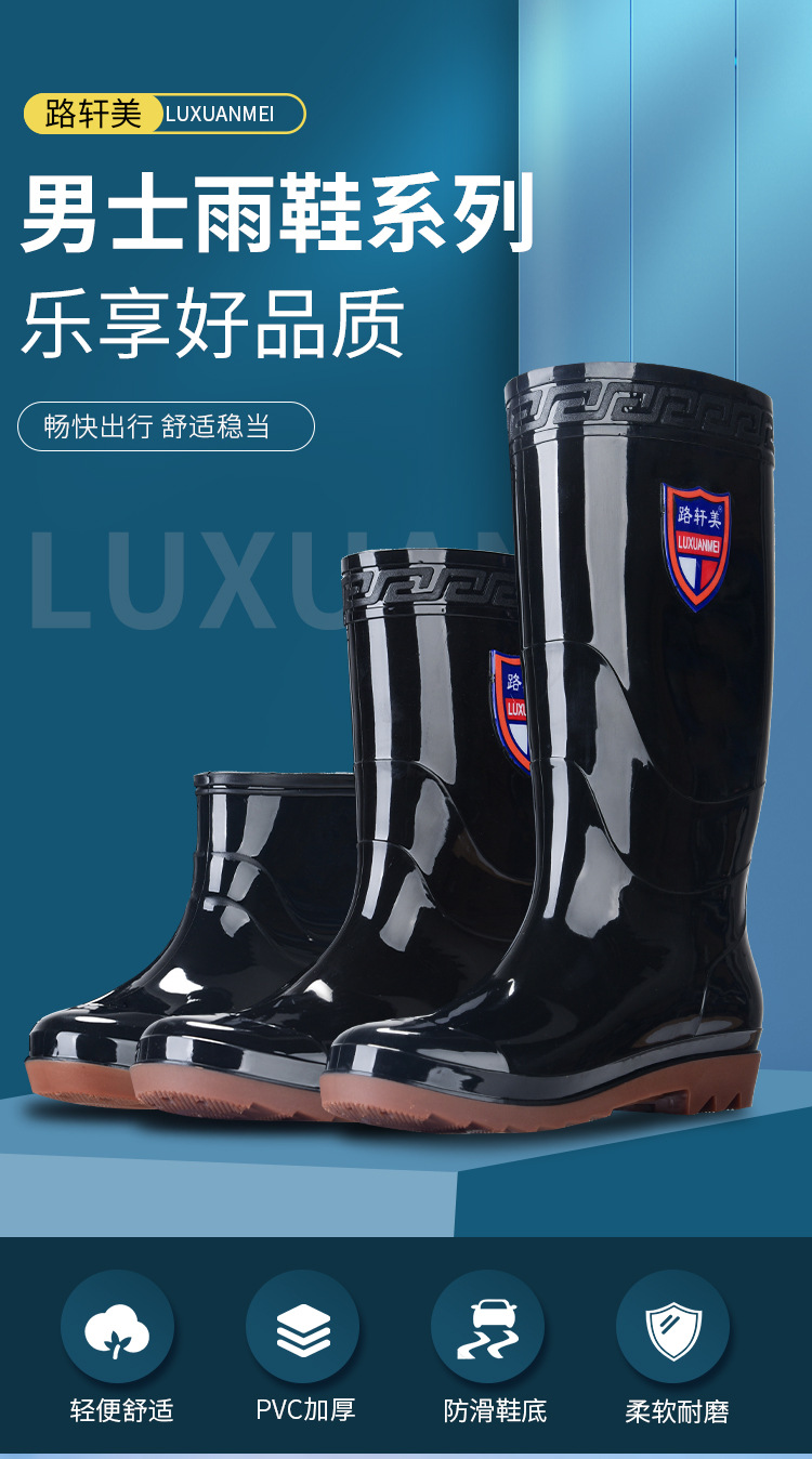 跨境高筒雨鞋男士长筒水靴厨房防滑胶鞋牛筋底水鞋短筒劳保鞋雨靴