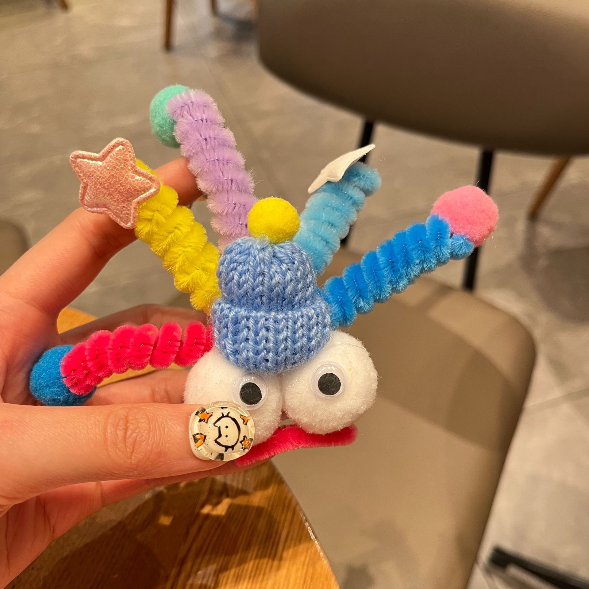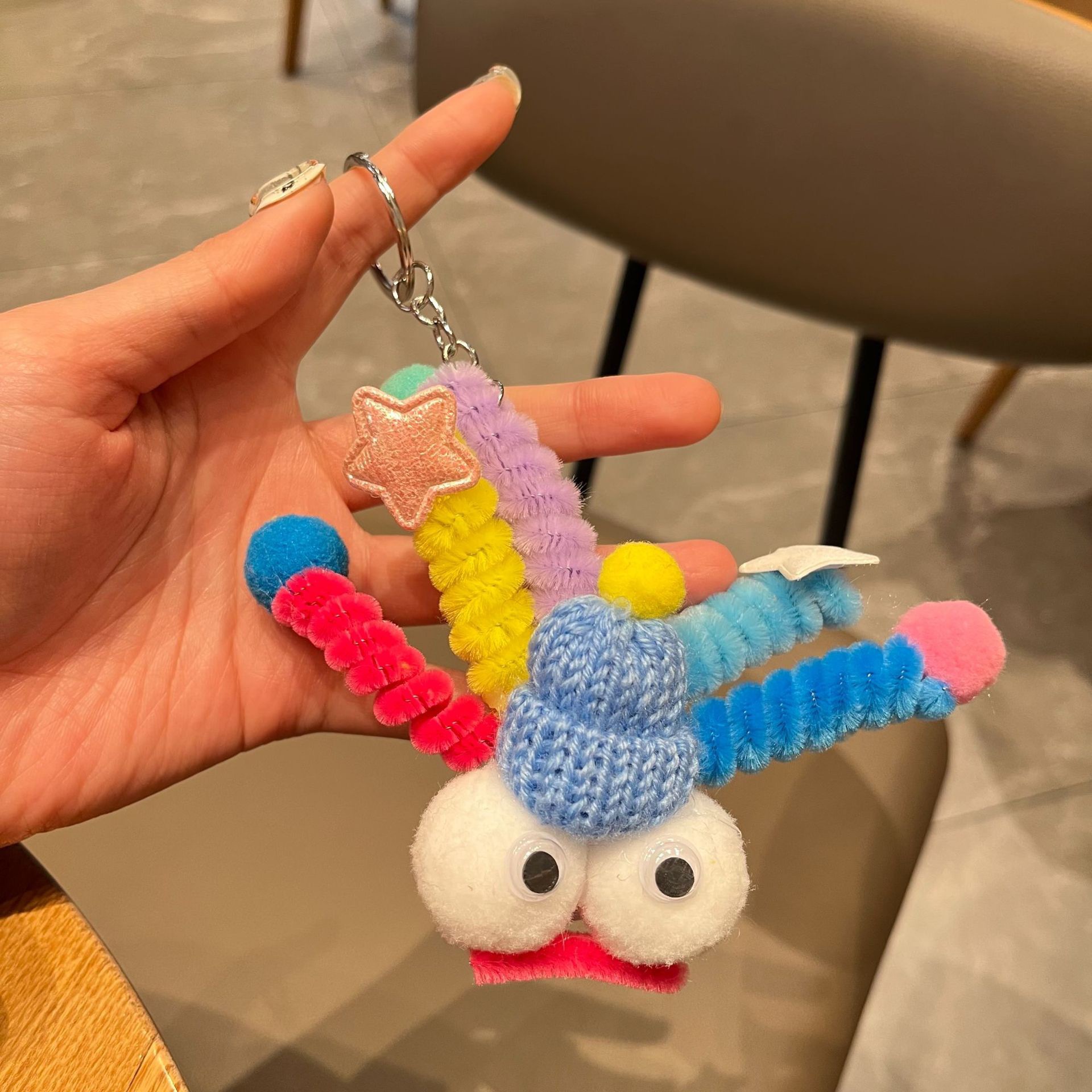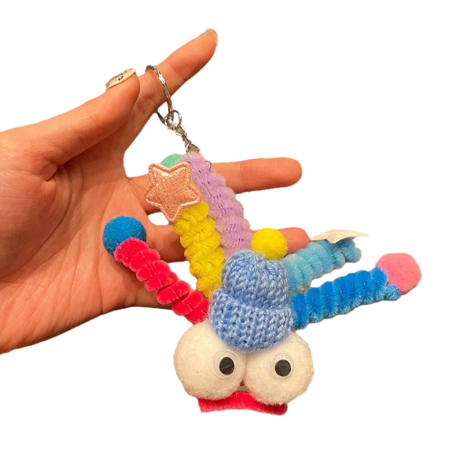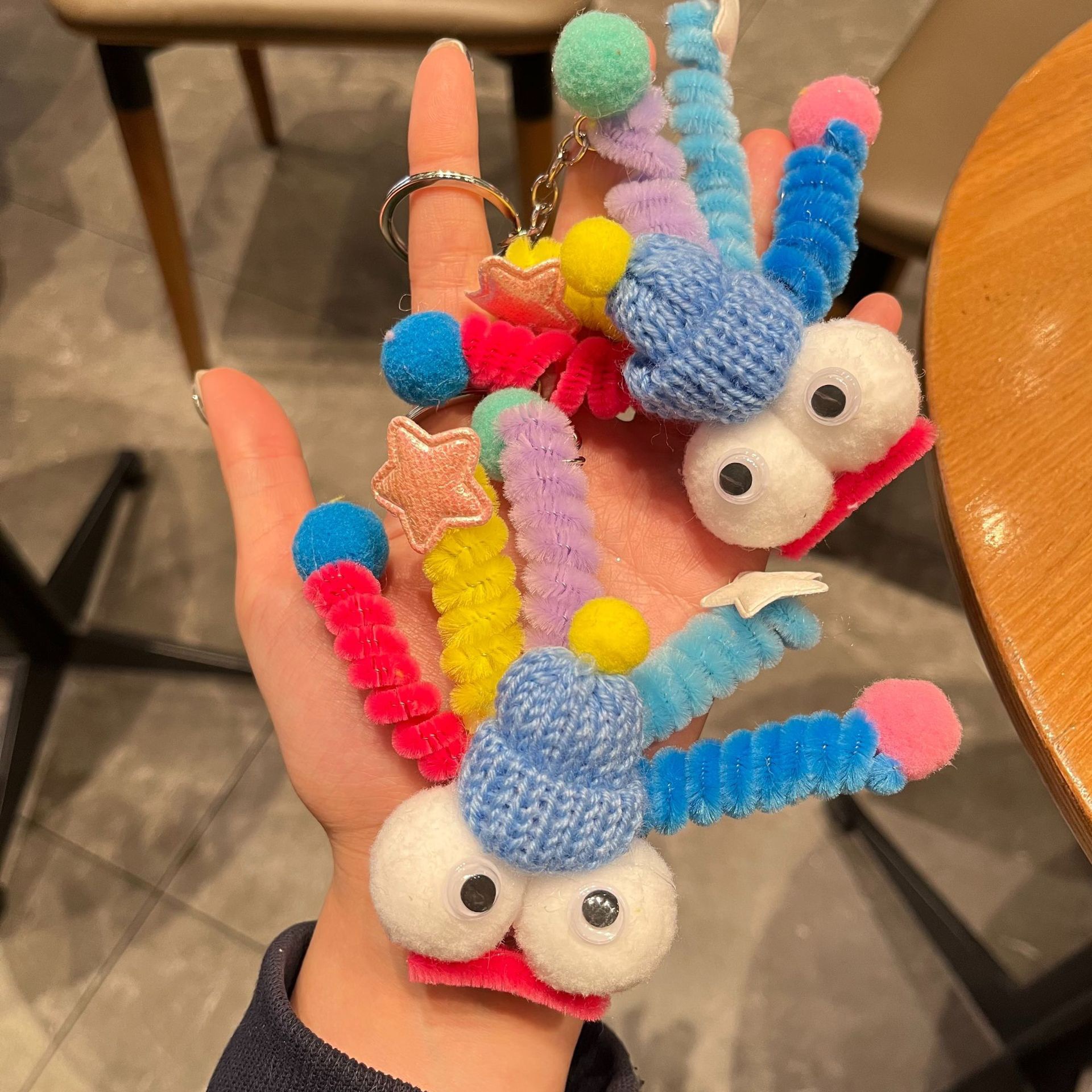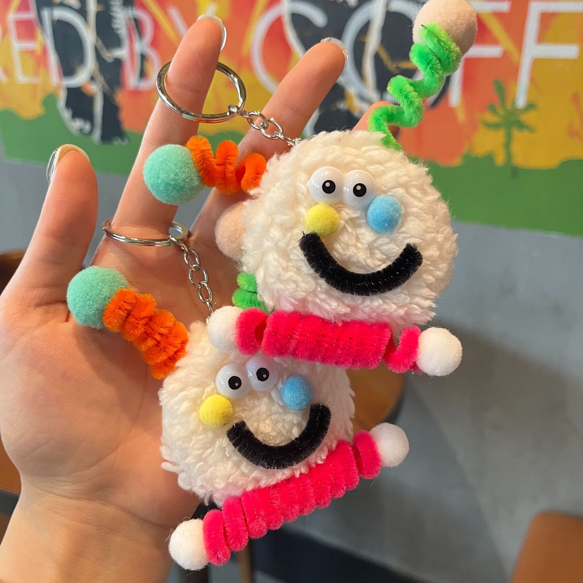网红笑脸扭扭棒毛绒挂件可爱彩色小怪兽包包挂饰搞怪丑萌娃娃礼物