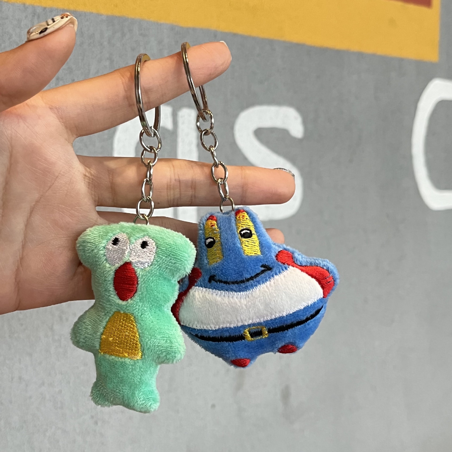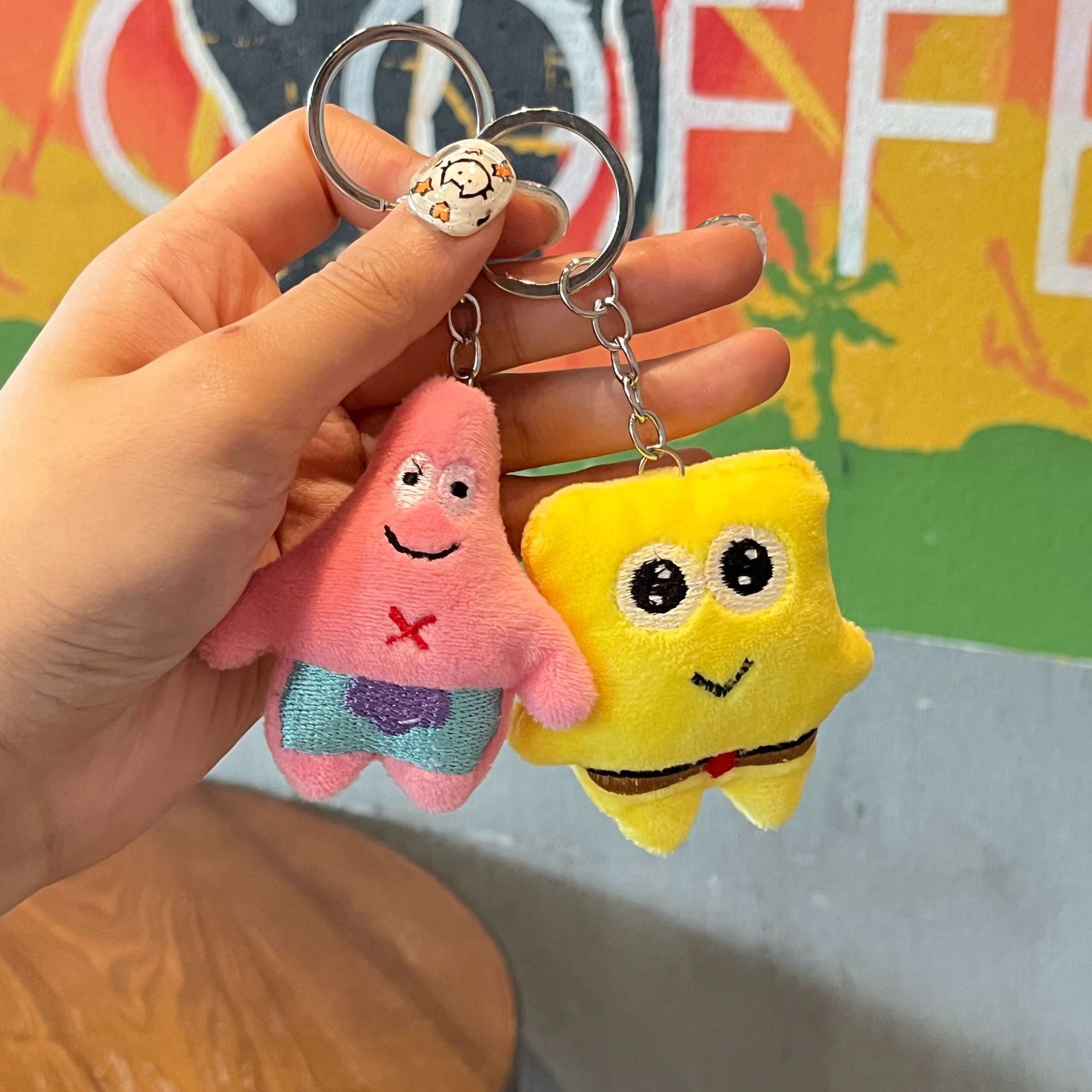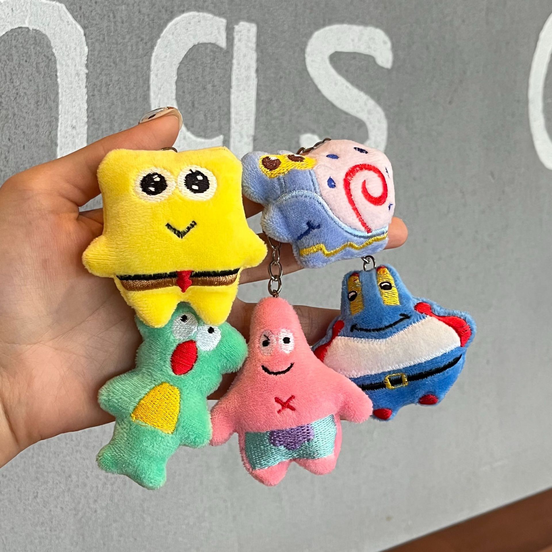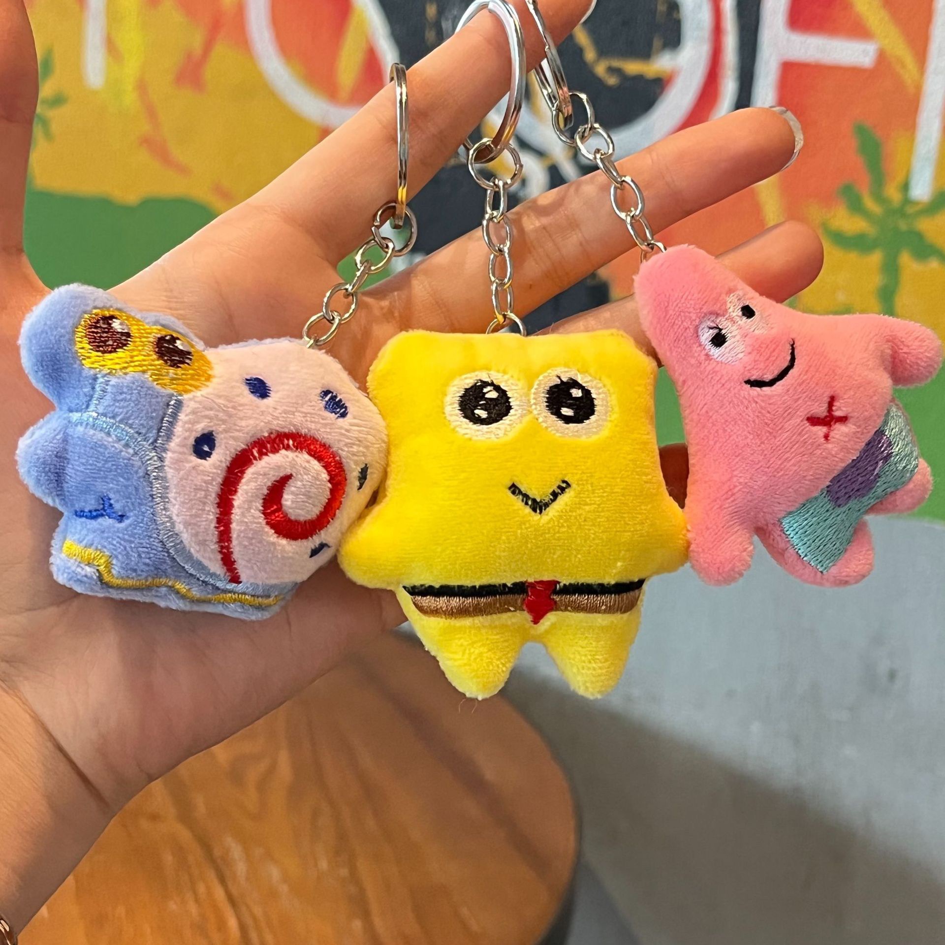 海绵宝宝毛绒挂件卡通派大星公仔钥匙扣迷你学生包包创意挂饰批发