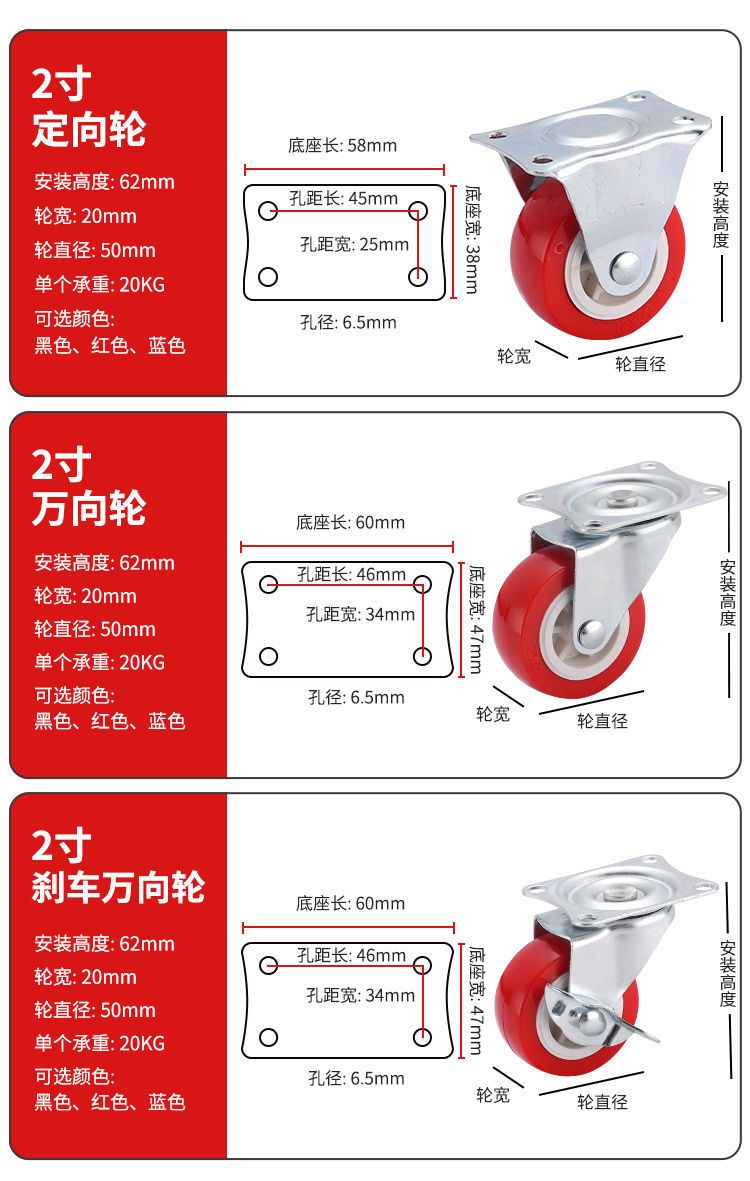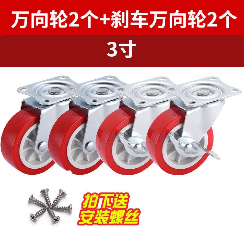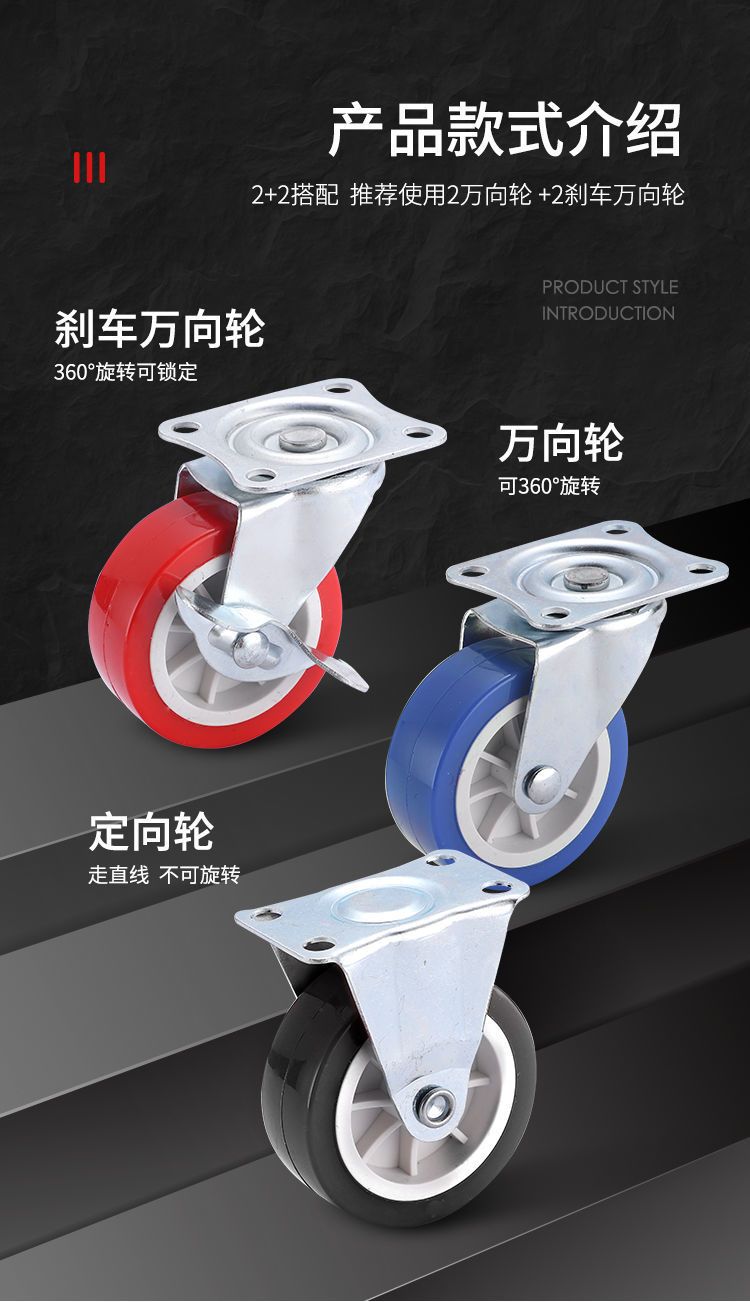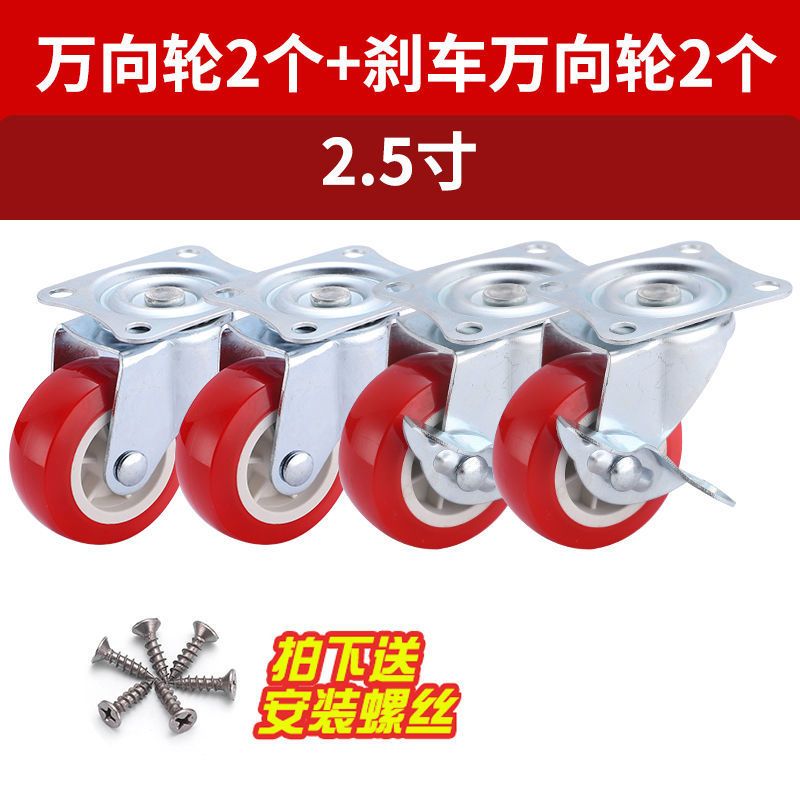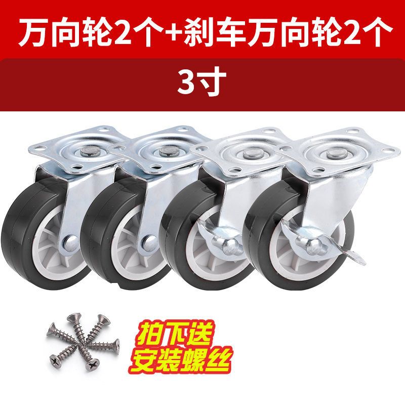 万向轮1-3寸静音万向脚轮推车轮子带刹车家具五金转向滑轮定向轮