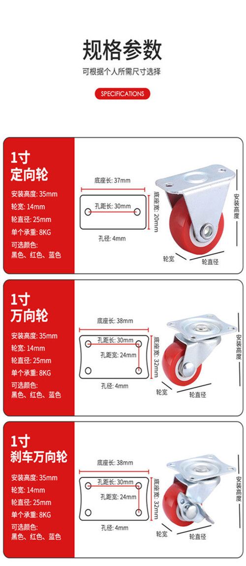 | 1 brake universal wheel (free shipping for four or more)(1个刹车万向轮(满四个包邮)) | USD $0.91 | 999999 piece available |