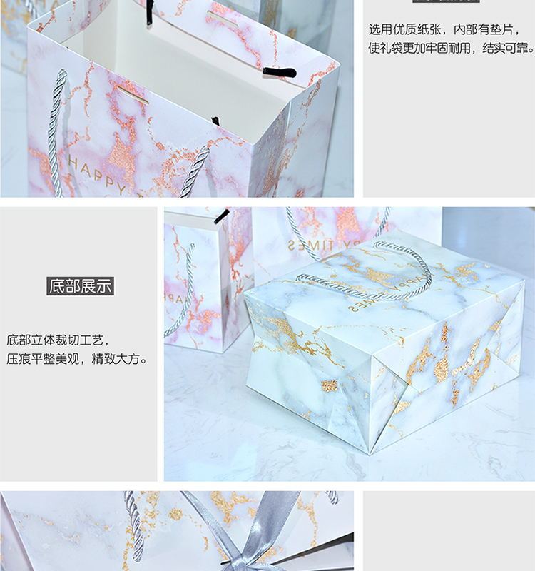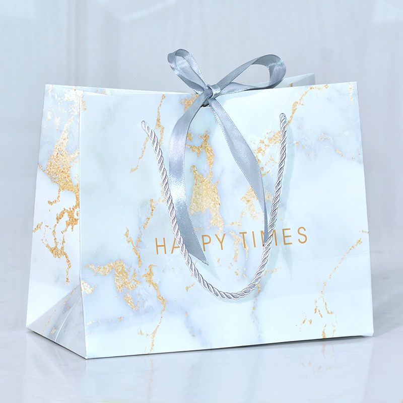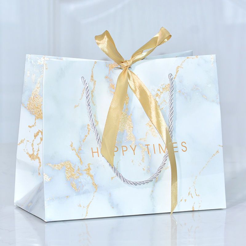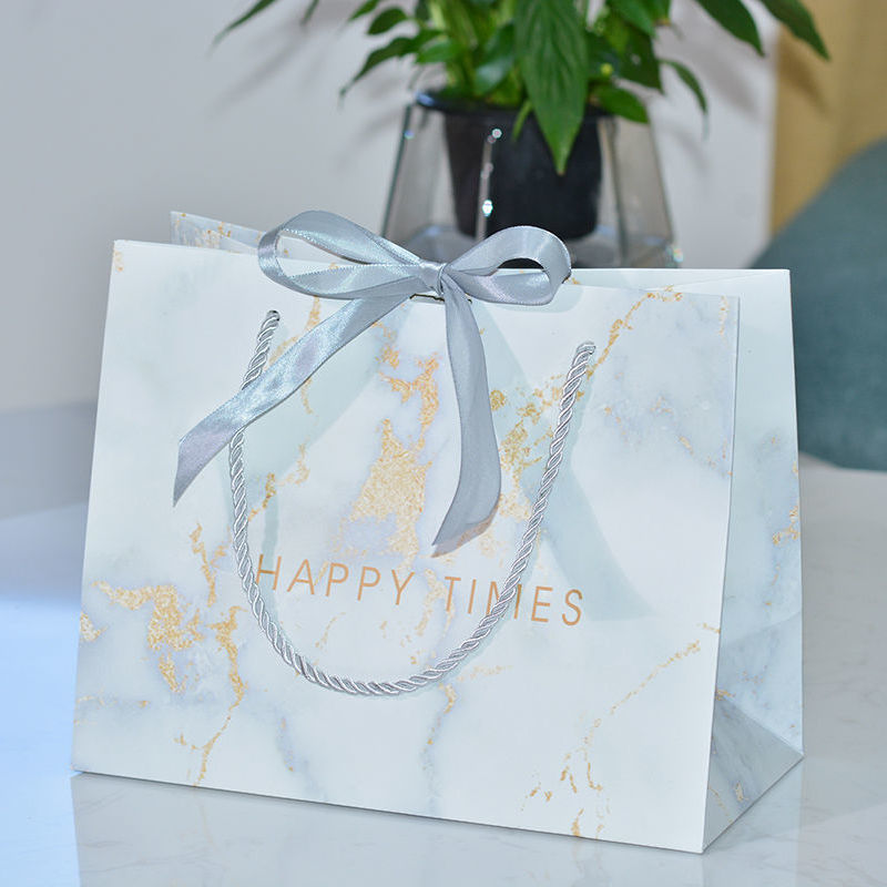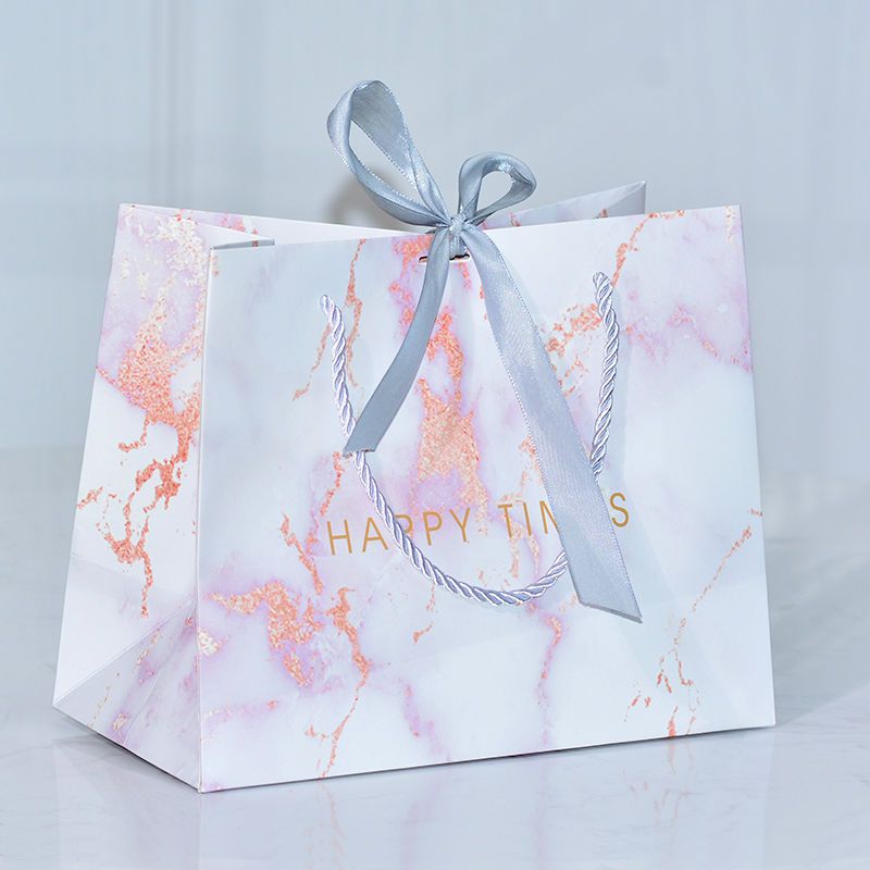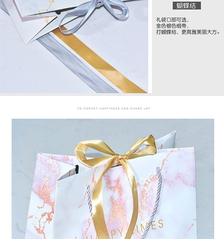 ins风礼品袋服装袋大理石纹简约手提袋配丝带喜糖袋通用纸袋定制