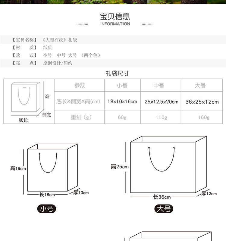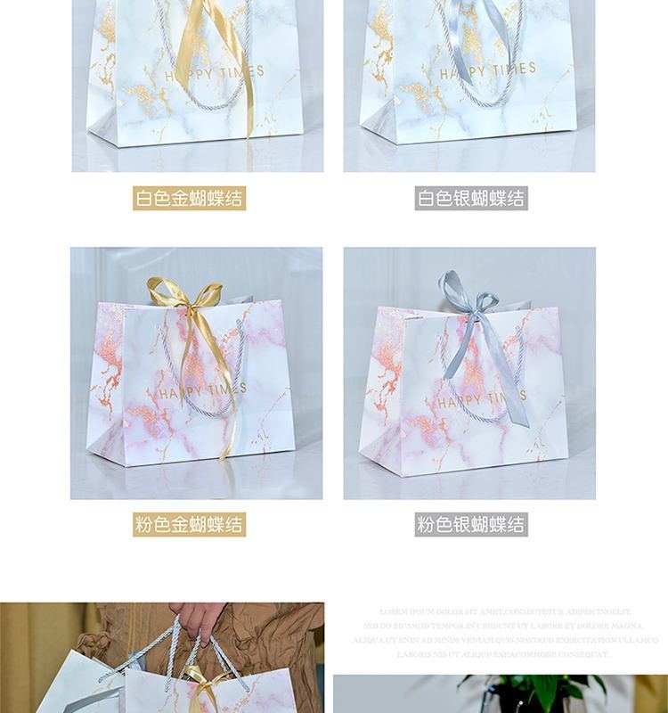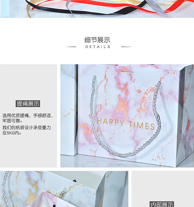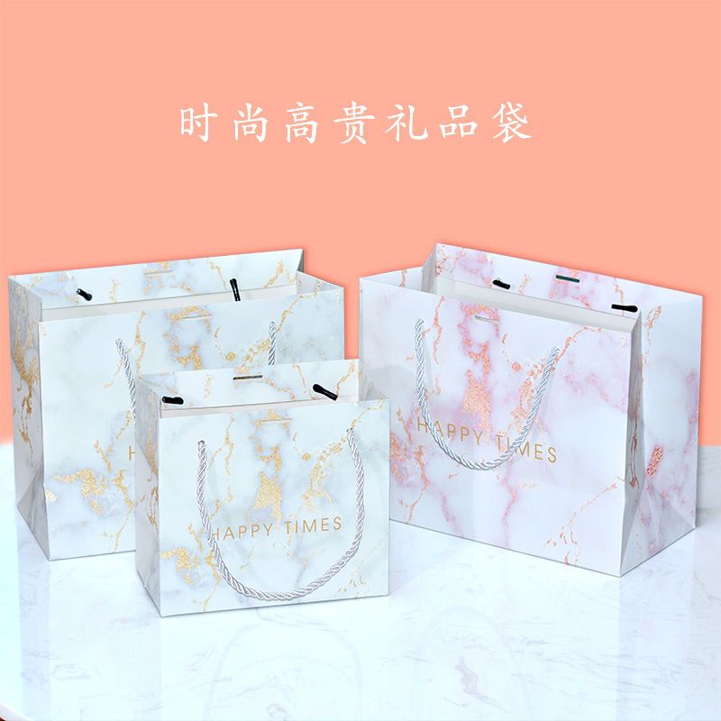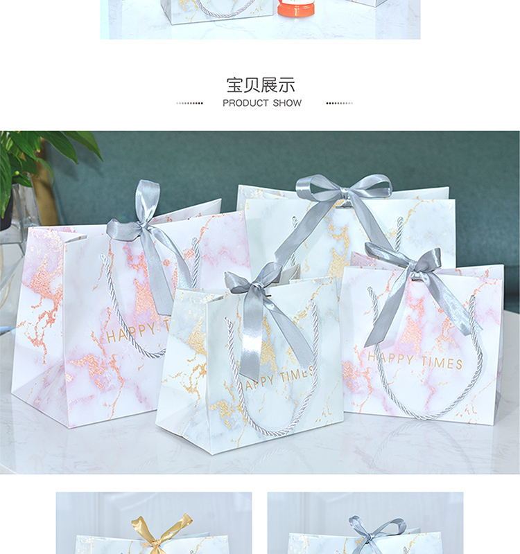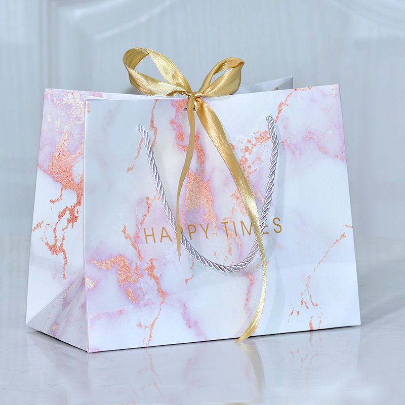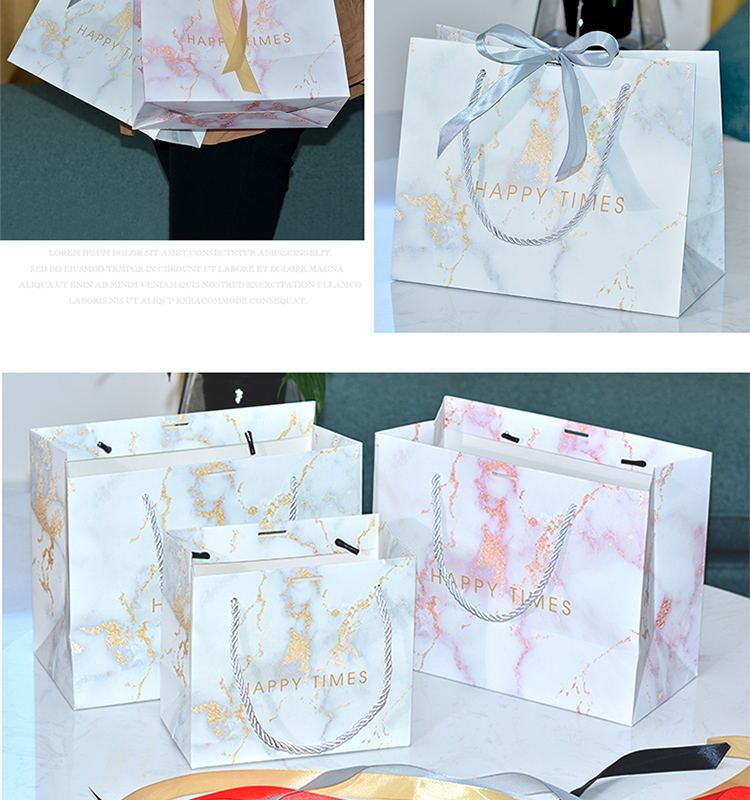 ins风礼品袋服装袋大理石纹简约手提袋配丝带喜糖袋通用纸袋定制