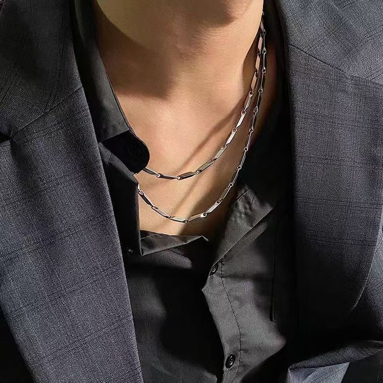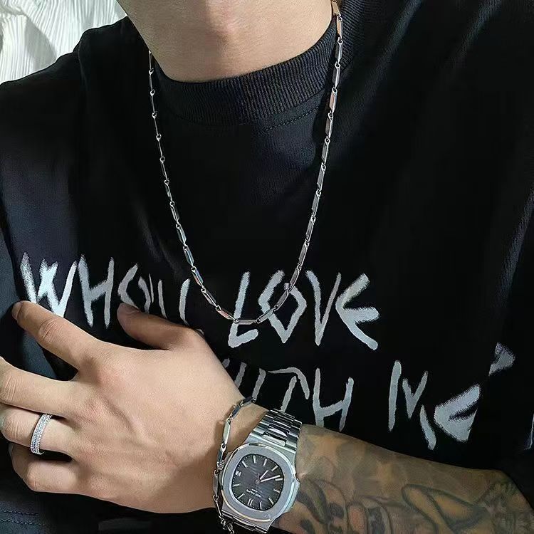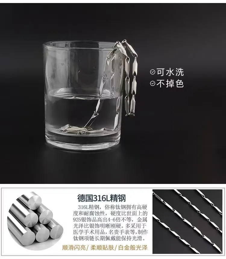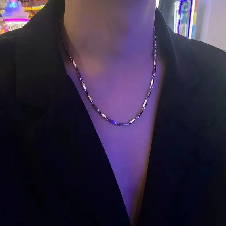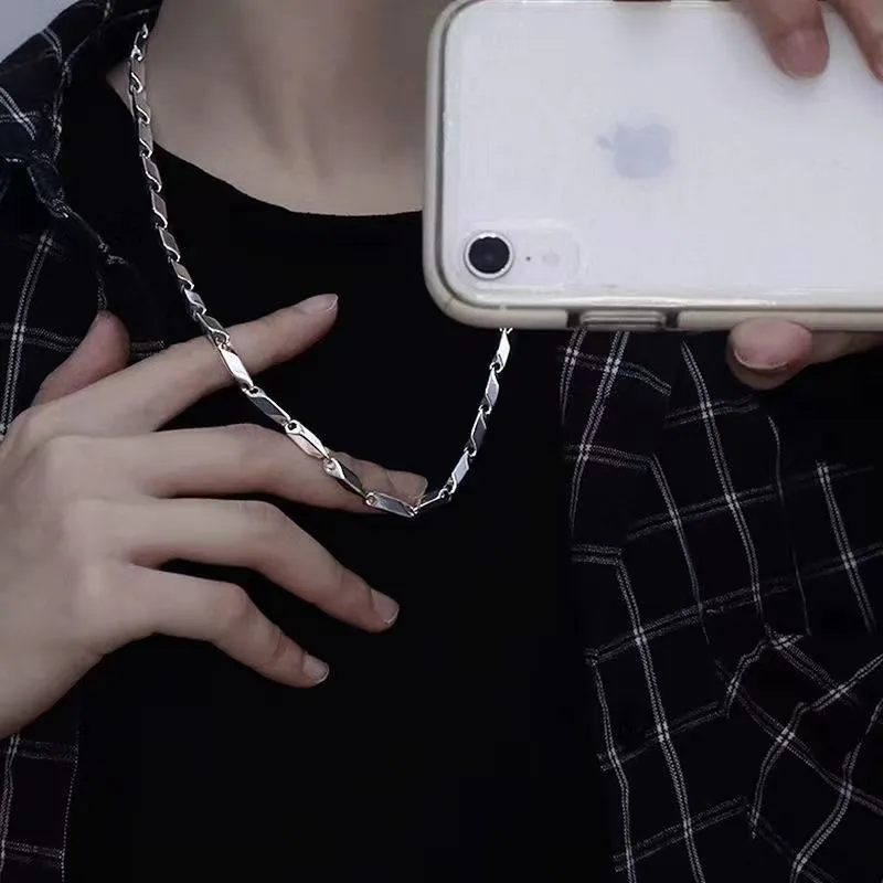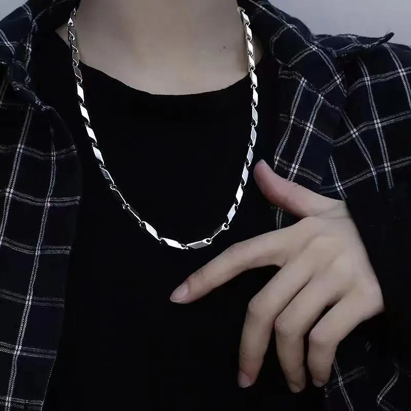 钛钢不掉色竹节链钛菱形锁骨链男项链简约男潮时尚潮百搭ins配饰