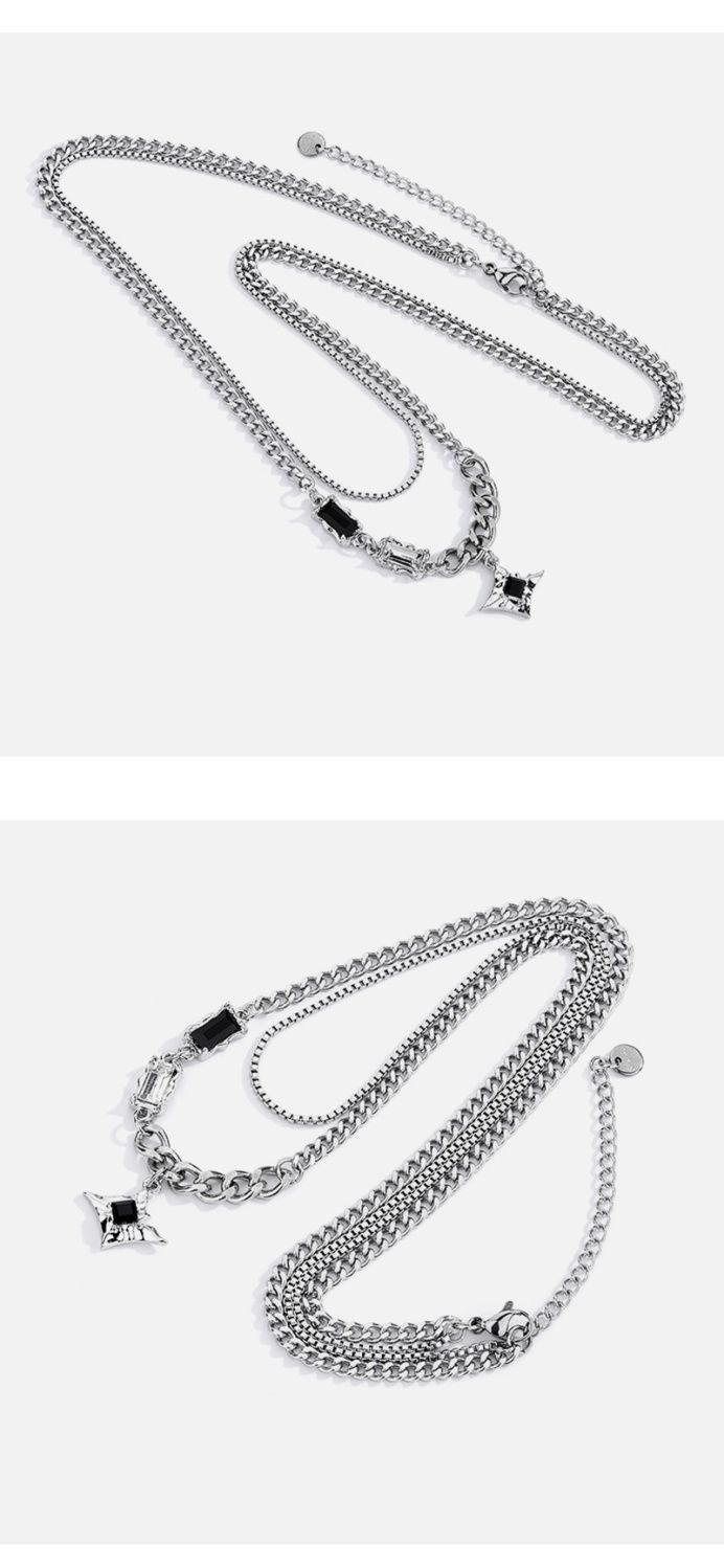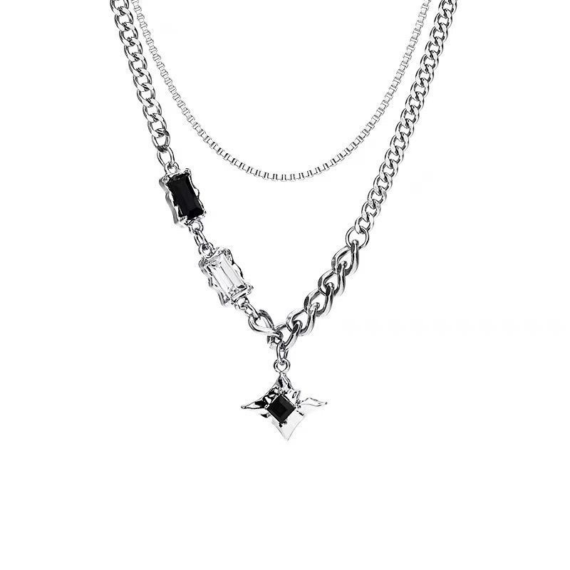 | black and white diamond eight-pointed stars double-layer necklace [47 + 5cm]](黑白钻芒星双层项链【47+5厘米】) | USD $2.03 | 999999 piece available |