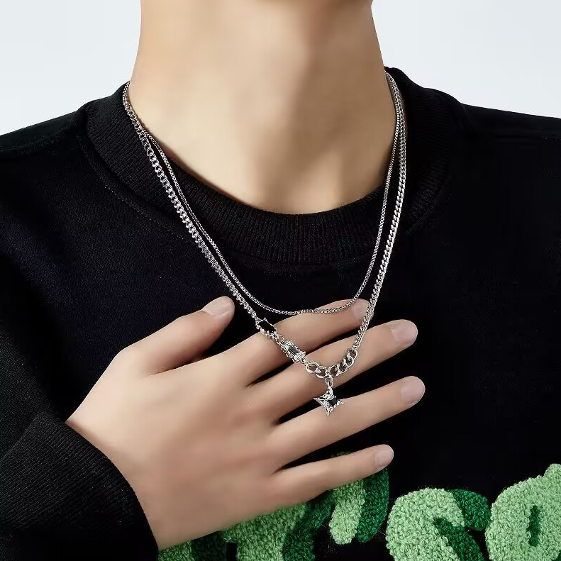 芒星项链系列潮男款毛衣链轻奢小众设计感嘻哈风情侣男生女锁骨链