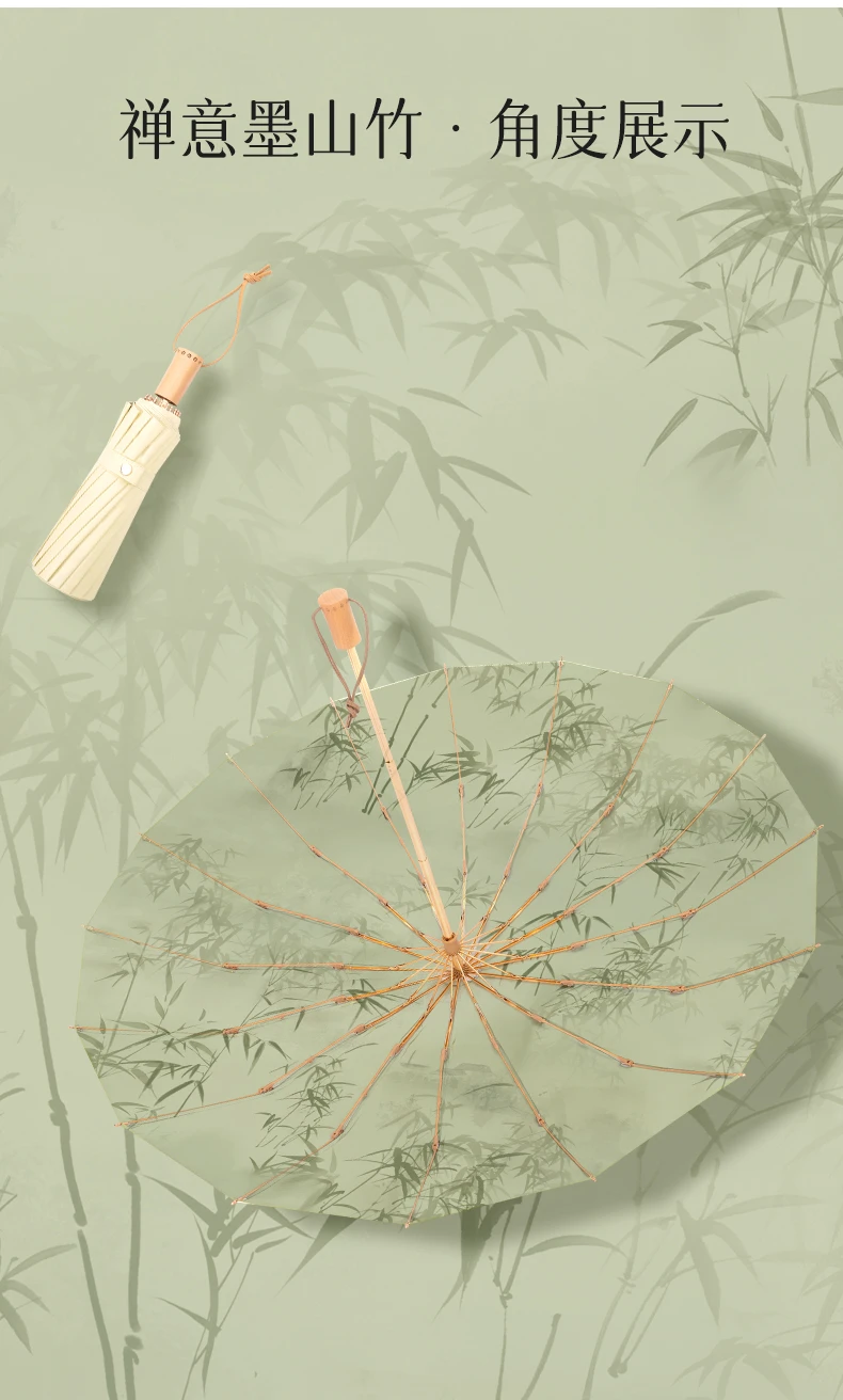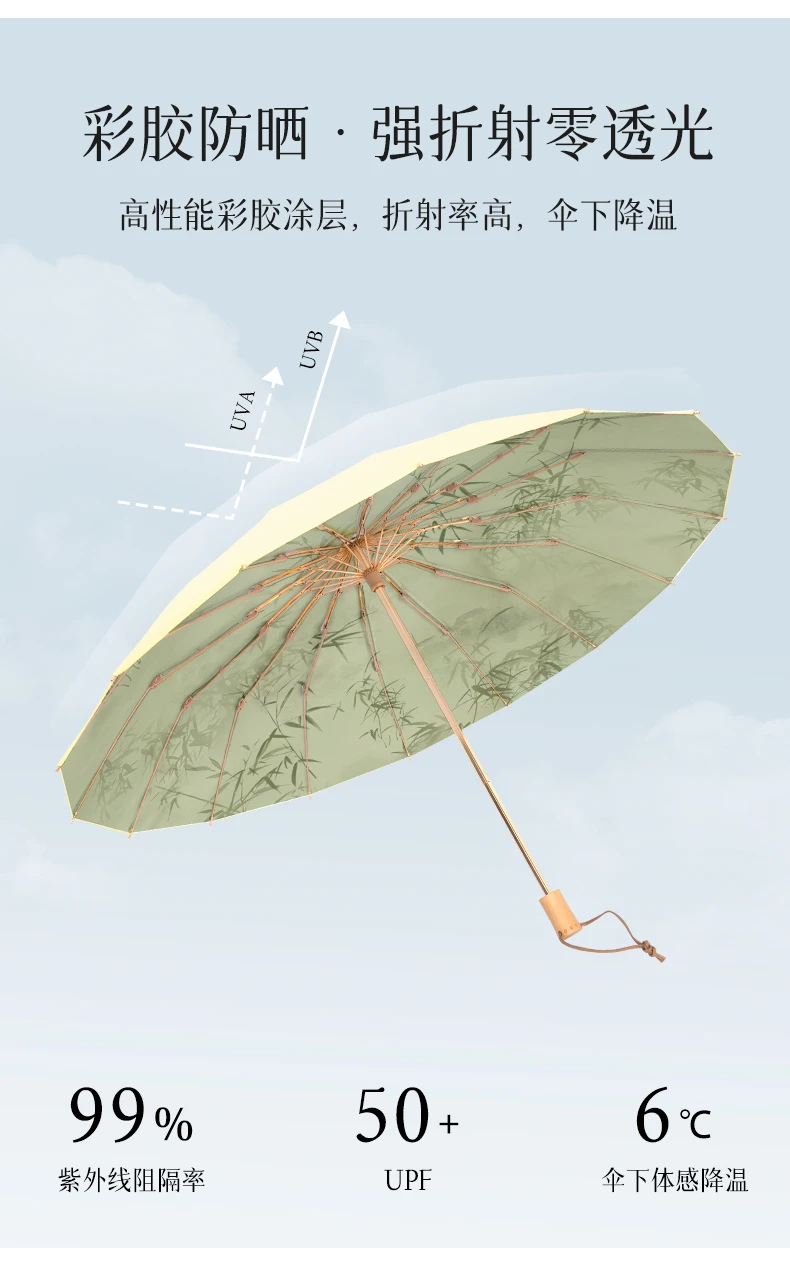 墨山竹16骨国风雨伞大号折叠遮阳伞太阳伞防晒防紫外线女晴雨两用