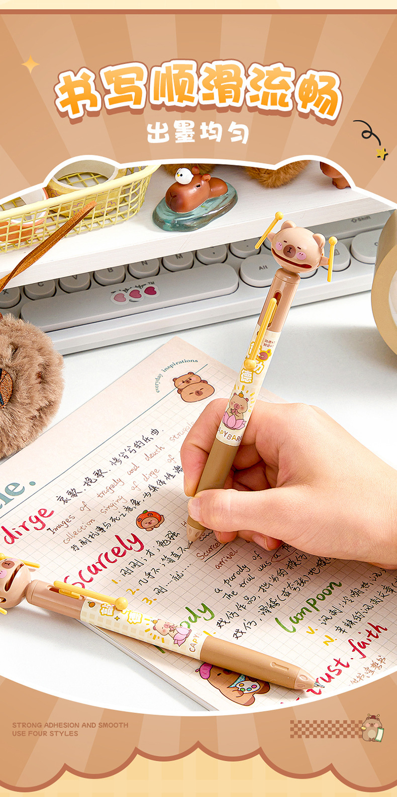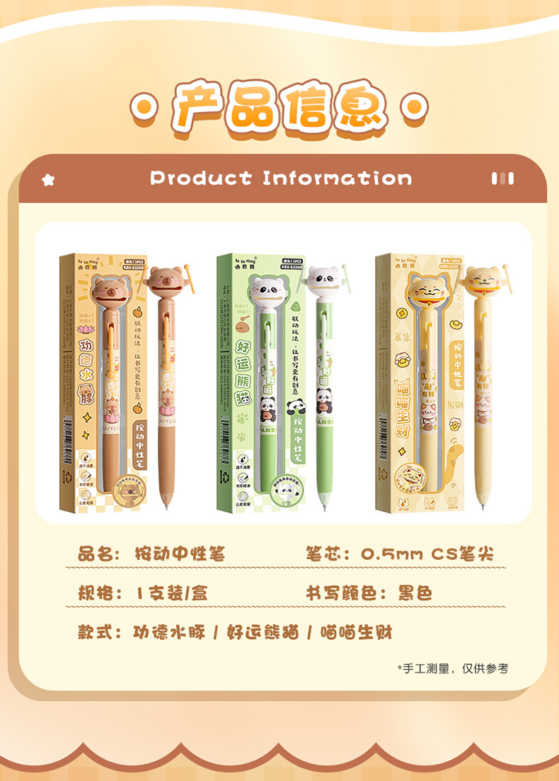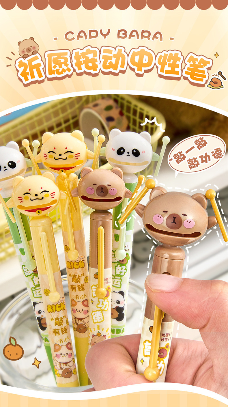 卡皮巴拉祈愿中性笔学生速干刷题笔创意解压按动中性笔0.5CS黑笔