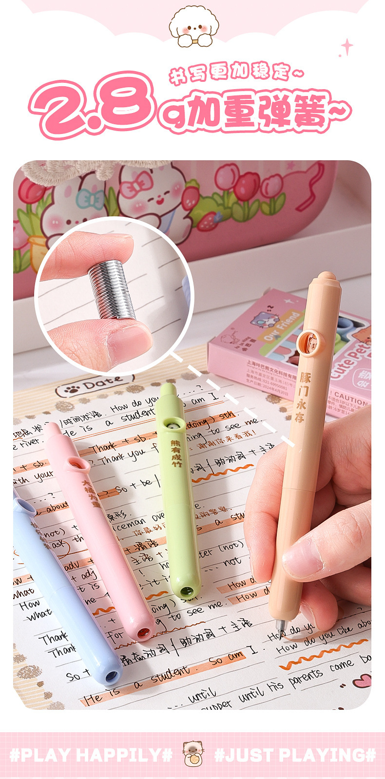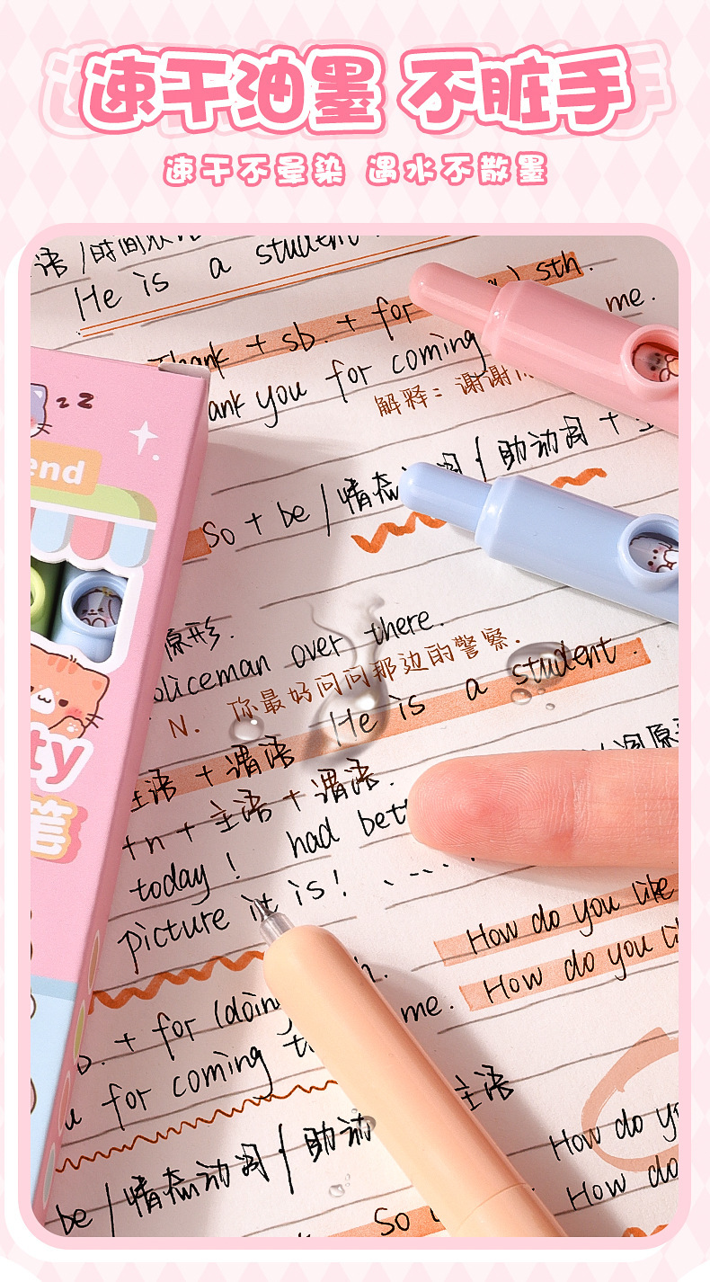 口袋笔袋袋笔女孩可爱套装按动中性笔高颜值少女心学生刷题笔创意
