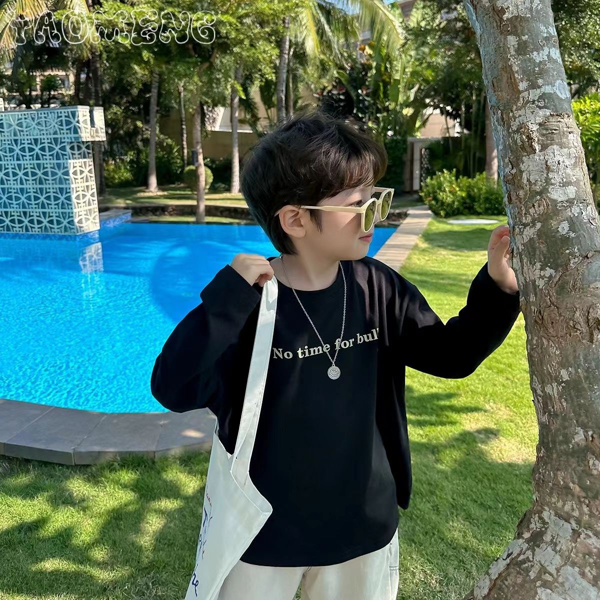 男童纯棉长袖t恤春款2023新款儿童中大小童春秋款童装上衣打底衫