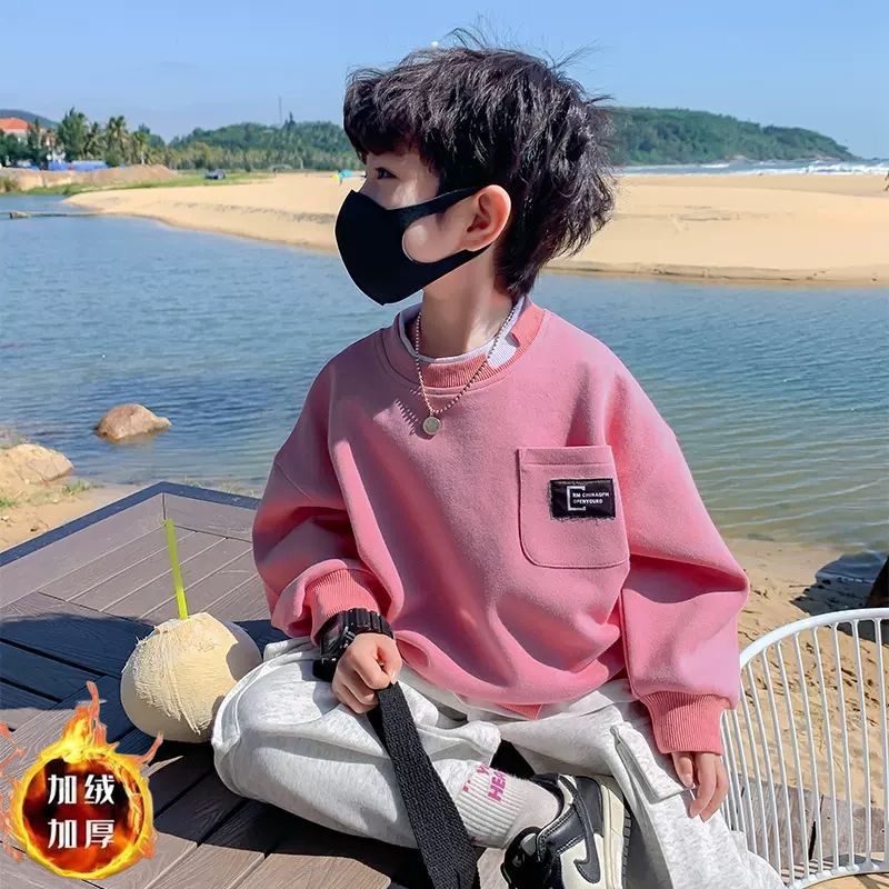 男童卫衣春秋款2023新款儿童长袖T恤假两件衣服帅气韩系潮牌上衣