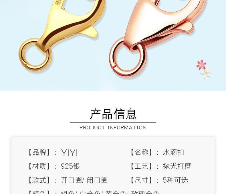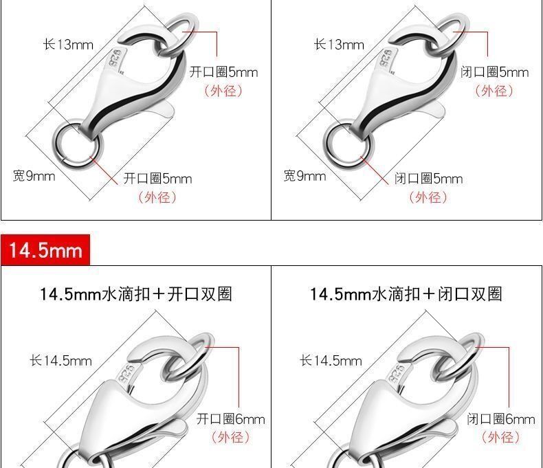 925纯银不掉色项链手链锁连接扣配件接头扣子弹簧龙虾扣diy万能头