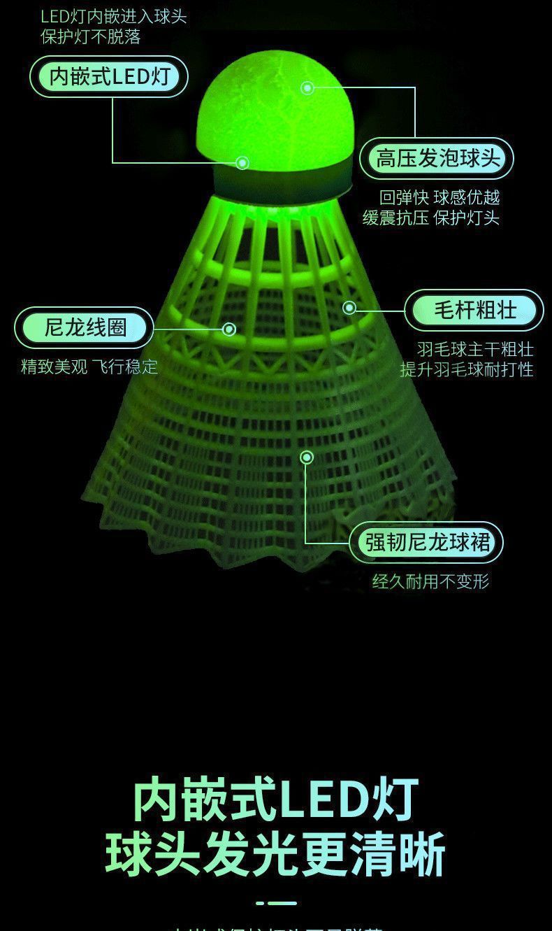 夜光发光球头发光羽毛球防风耐打室外荧光亮带LED塑料尼龙高弹力