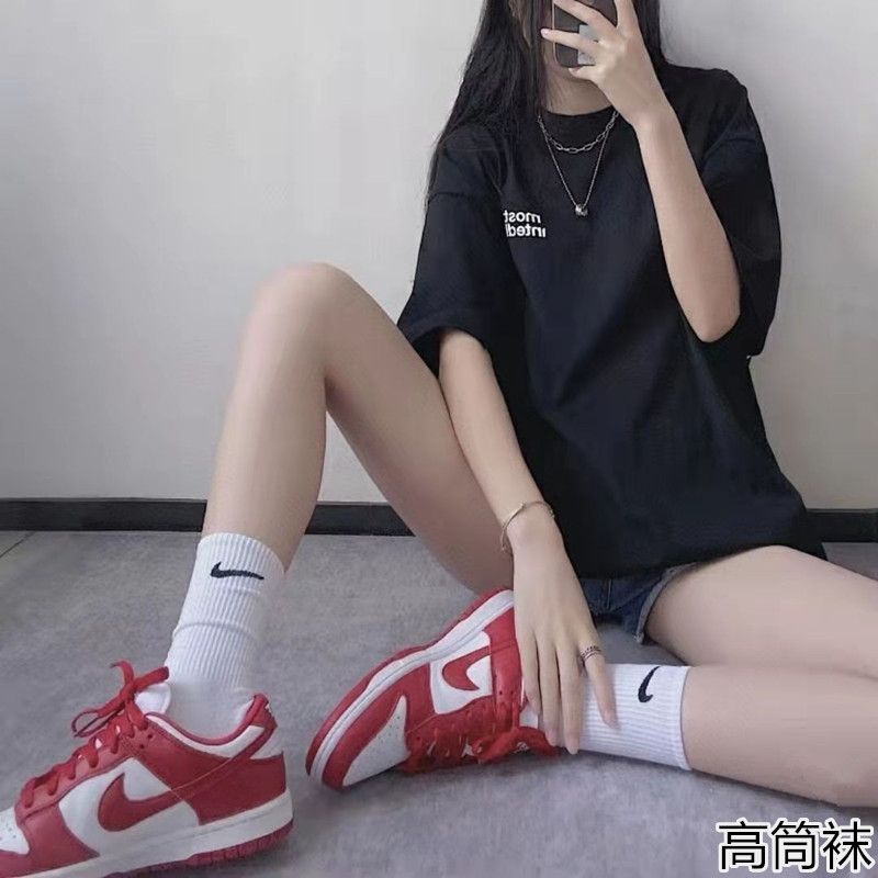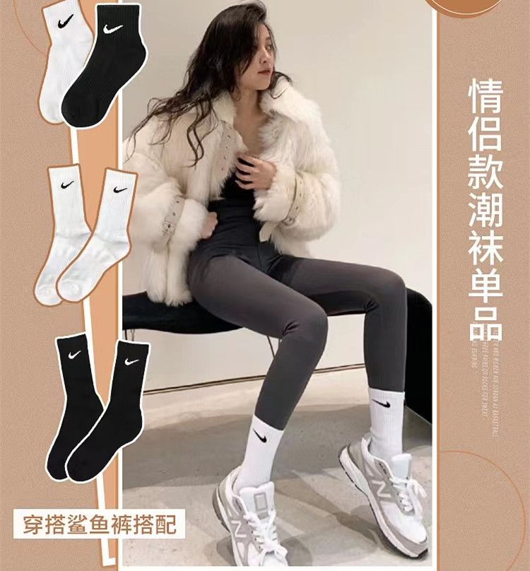 配鲨鱼裤袜子男款ins潮网红新款中筒长筒袜秋冬款纯棉运动袜女袜