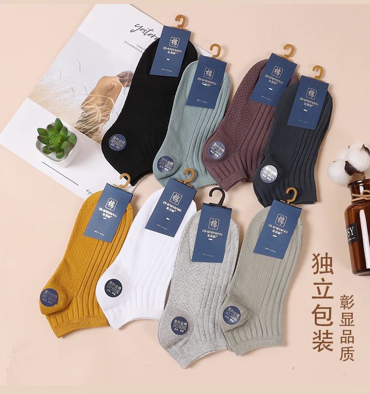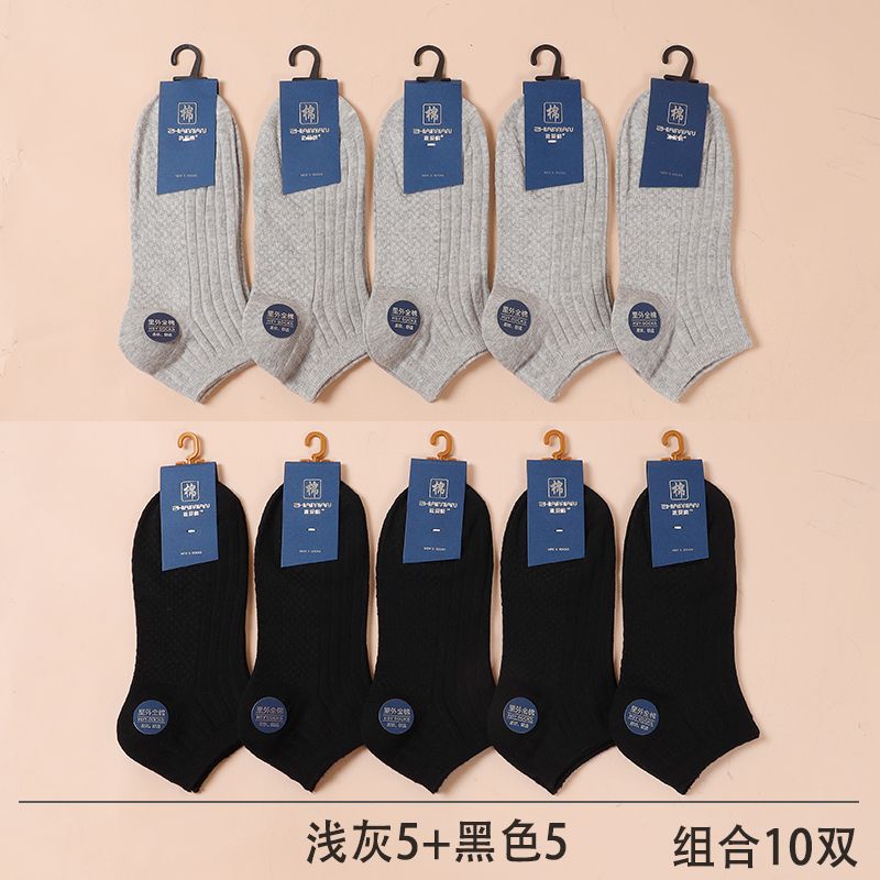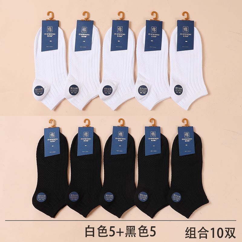 男士袜子男款秋冬季短袜纯棉防臭吸汗黑白色透气运动短款低帮船袜