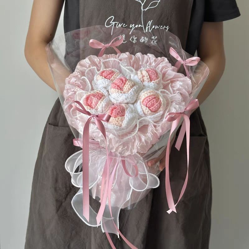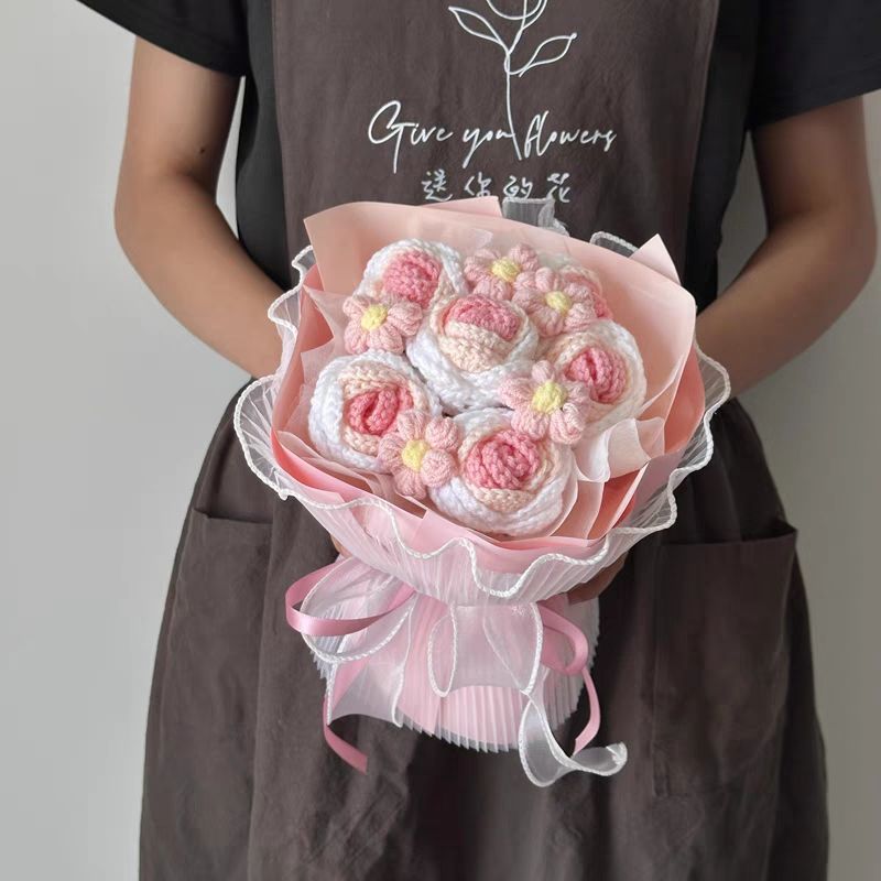 手工毛线针织向日葵玫瑰编织花束成品圣诞节实用高档男女生日礼物
