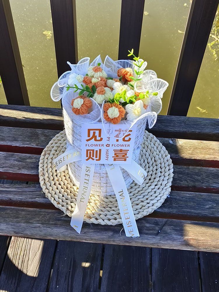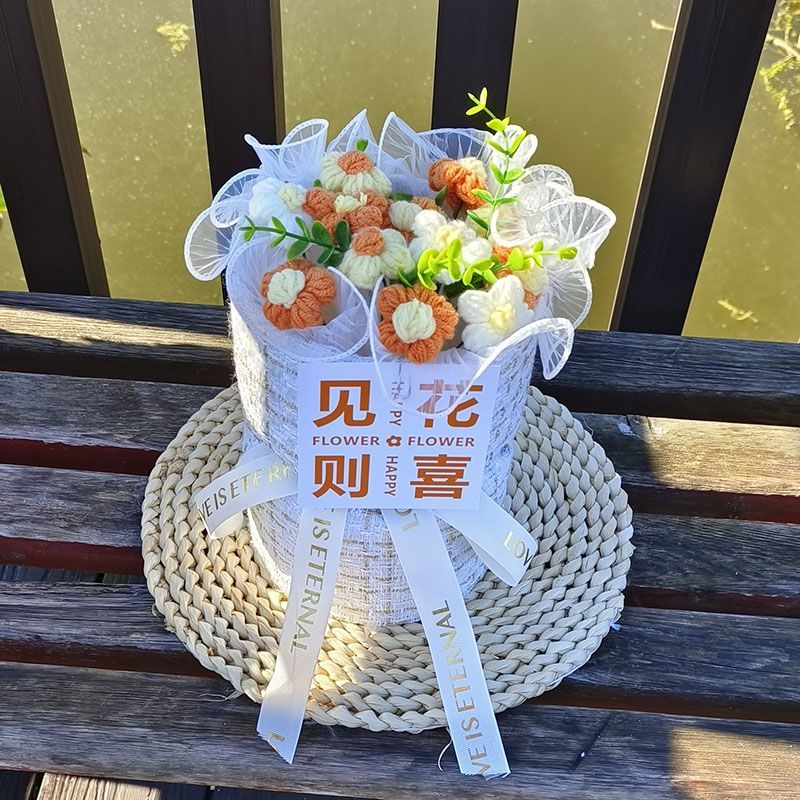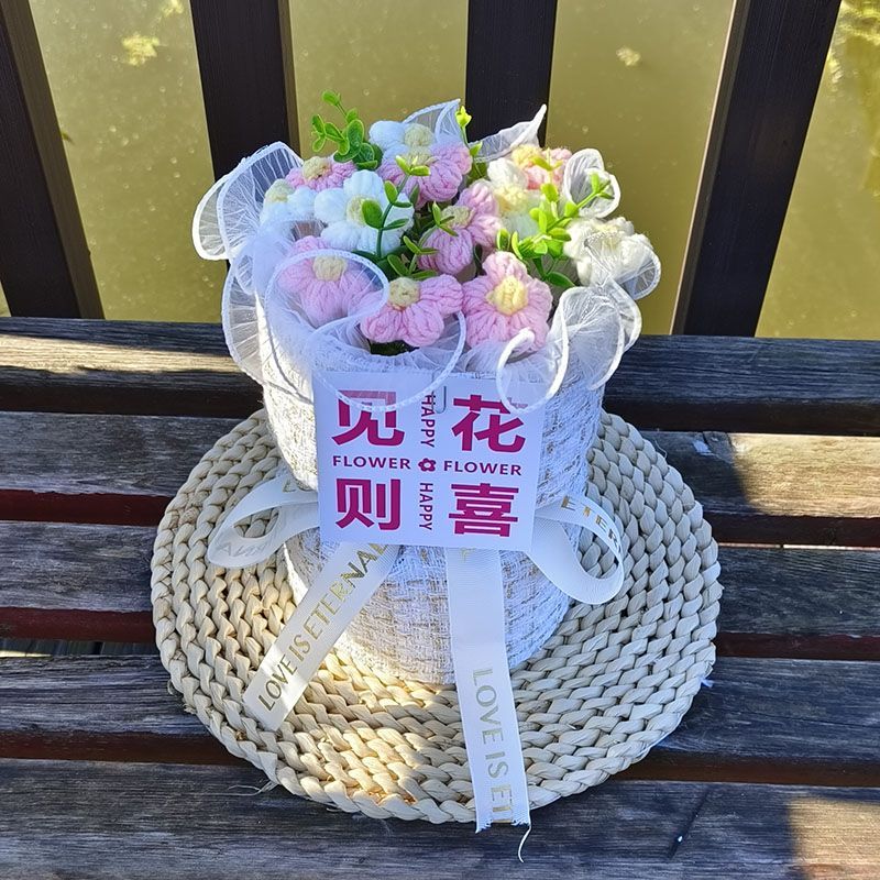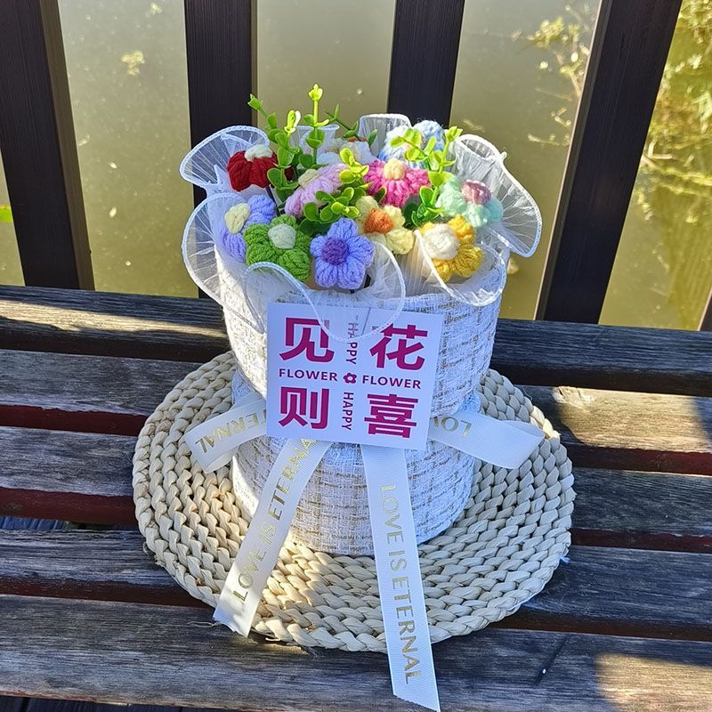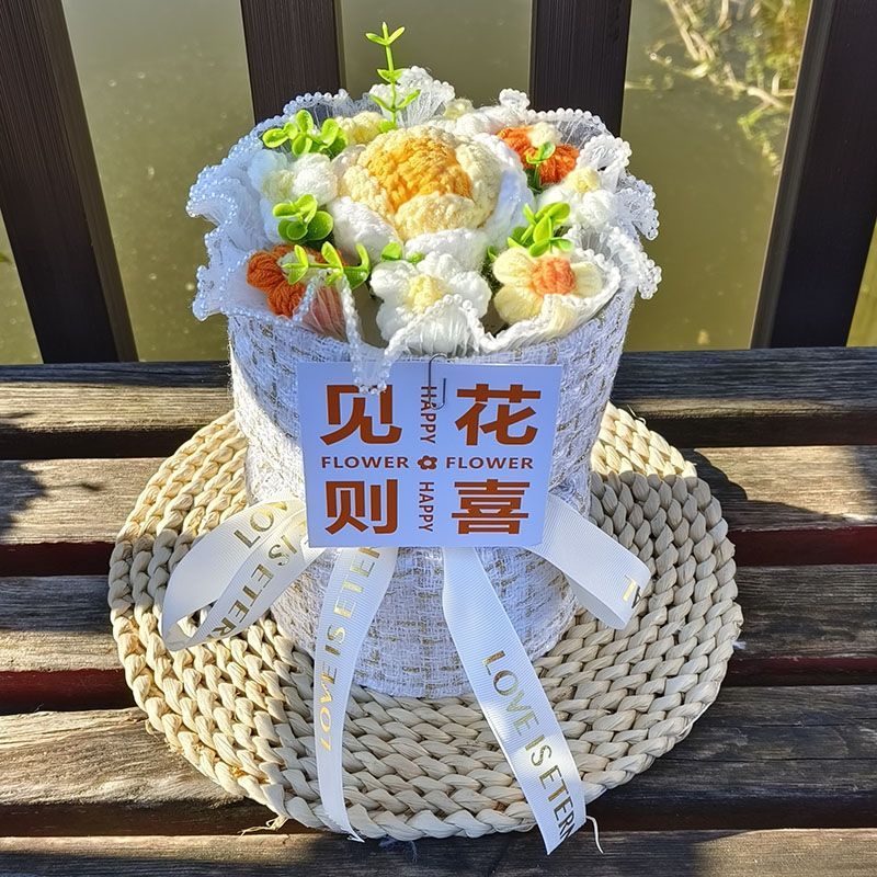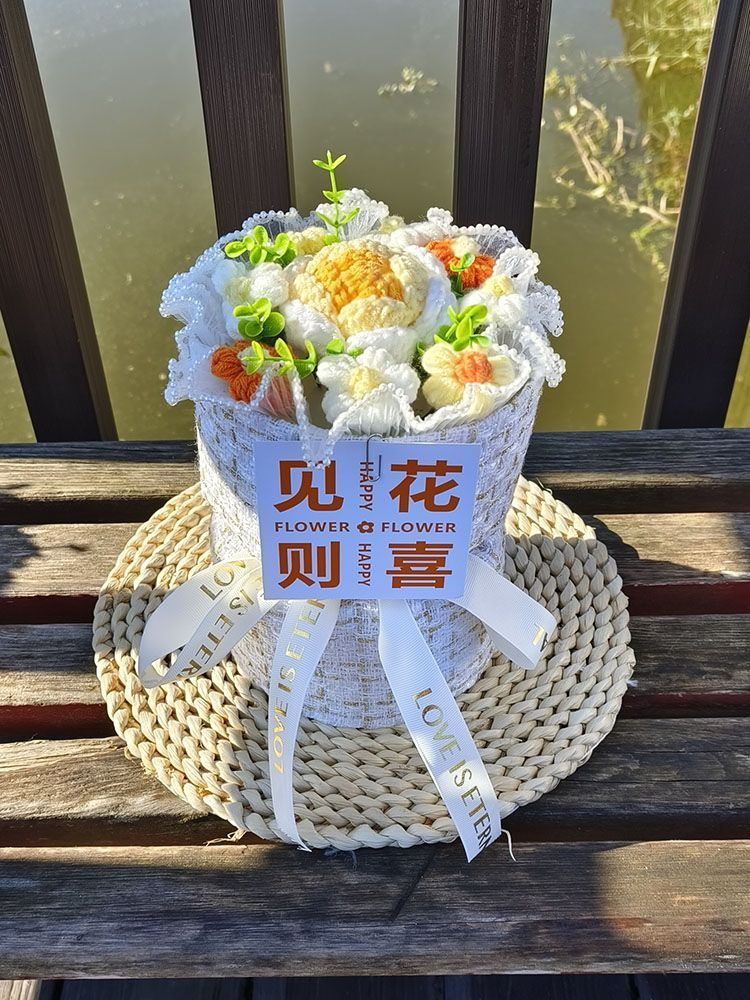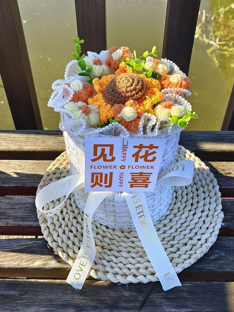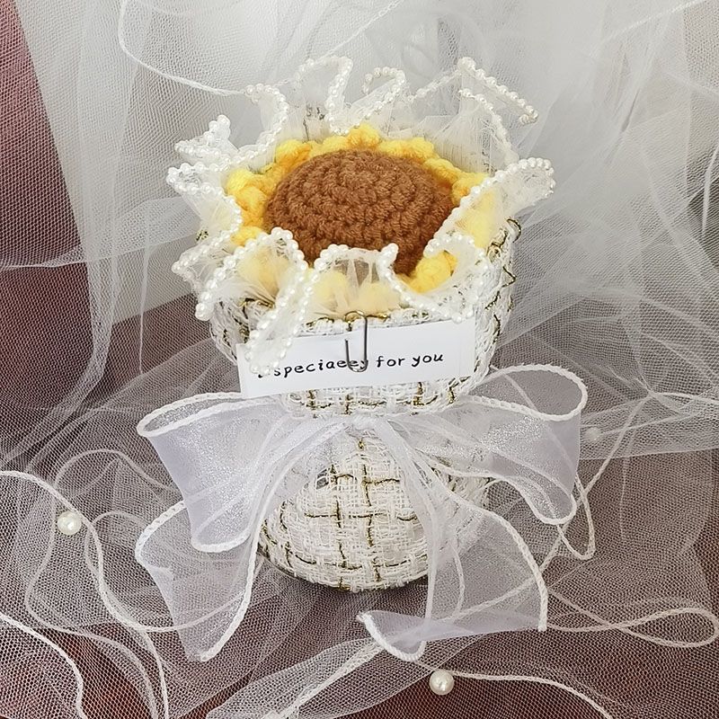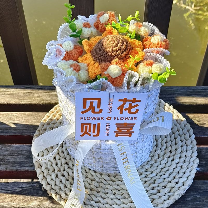创意生日礼物高档实用香风向日葵玫瑰手工编织毛线花束女朋友闺蜜