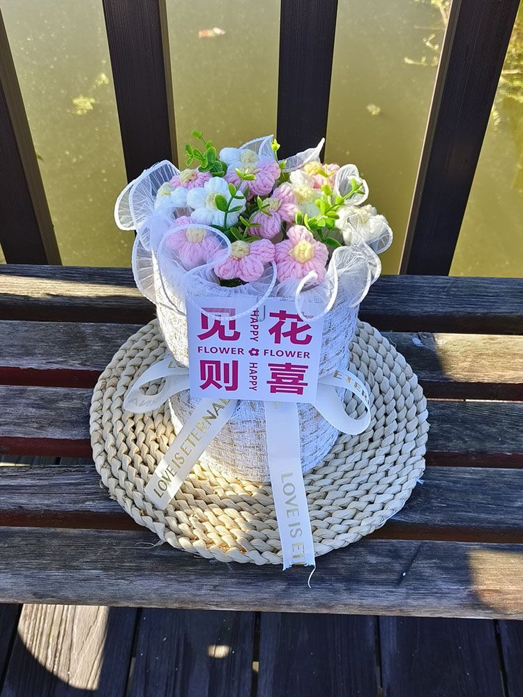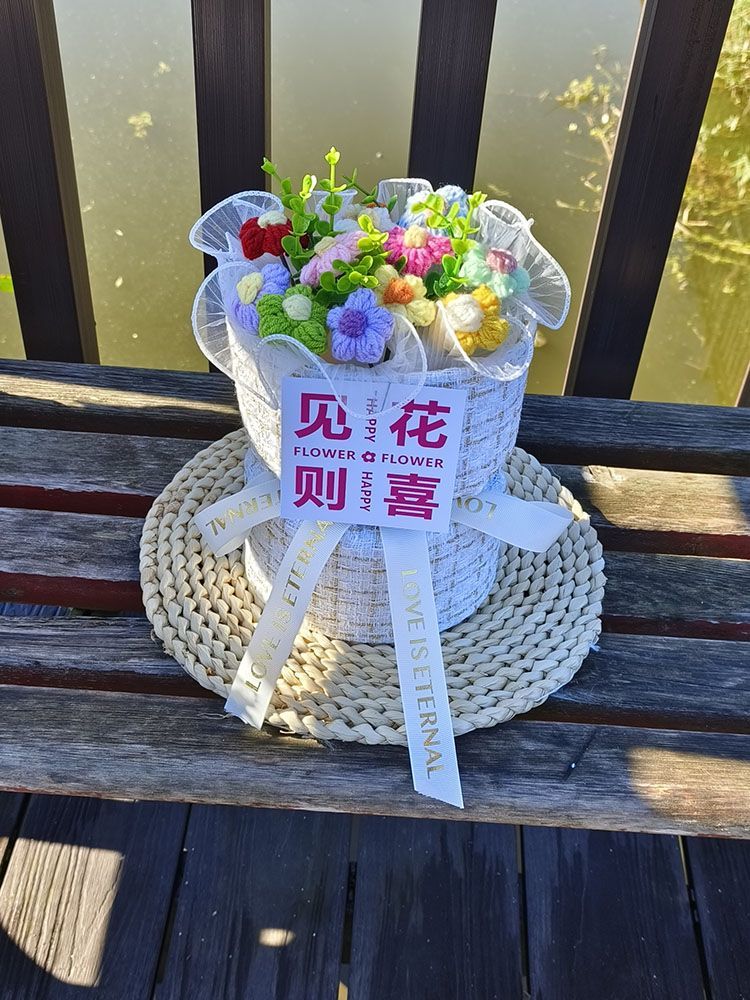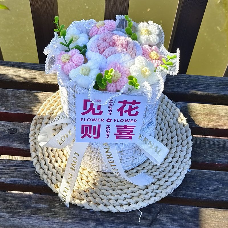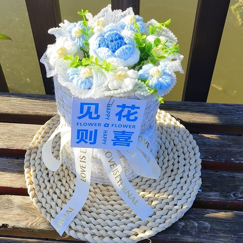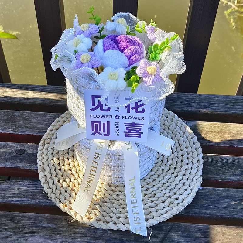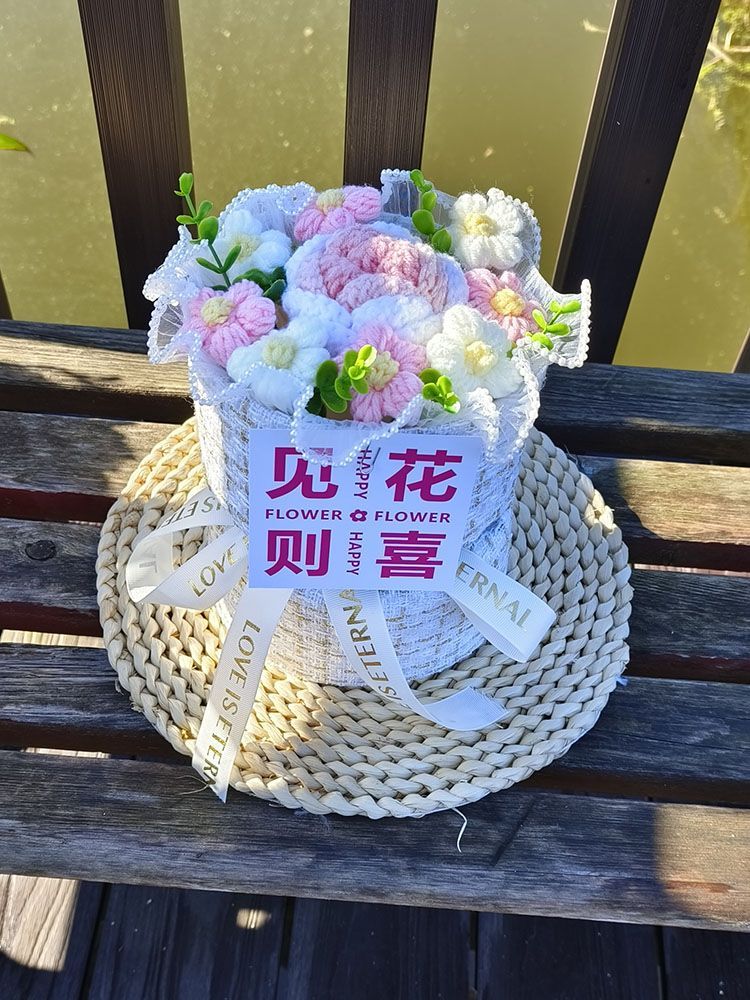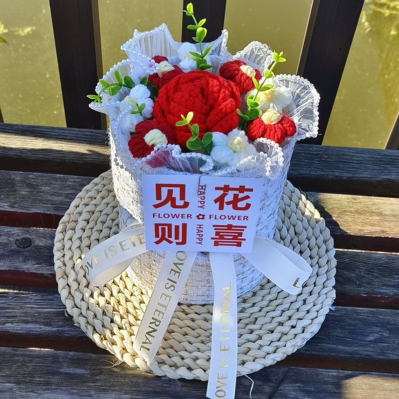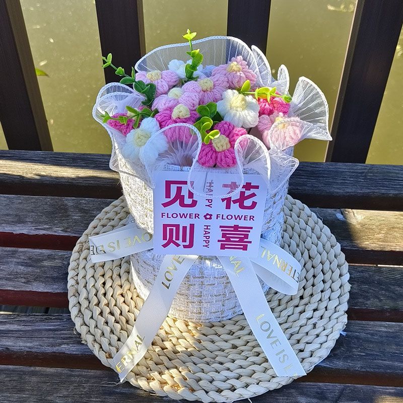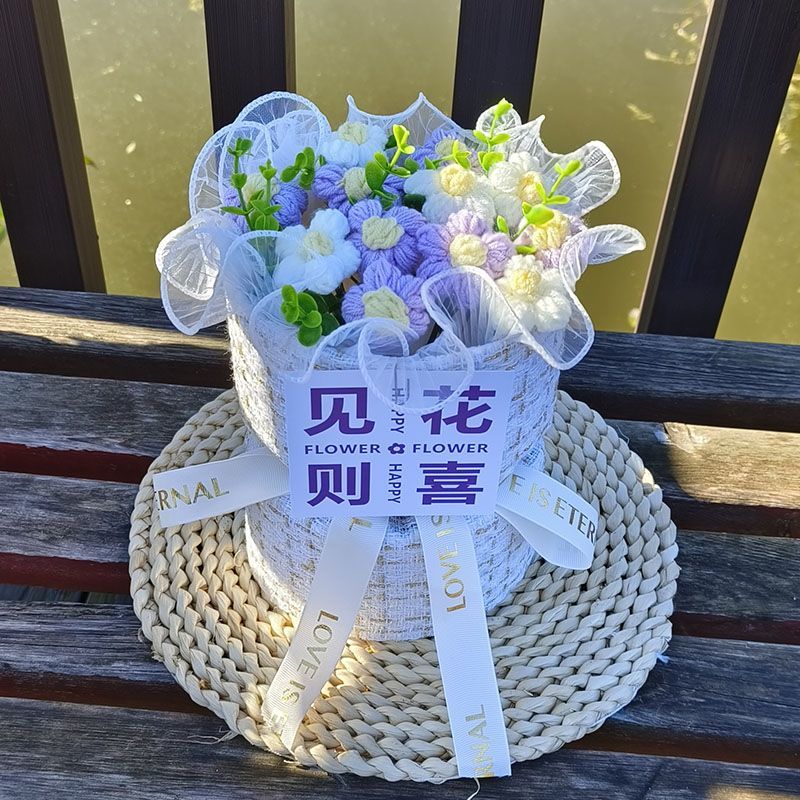 创意生日礼物高档实用香风向日葵玫瑰手工编织毛线花束女朋友闺蜜