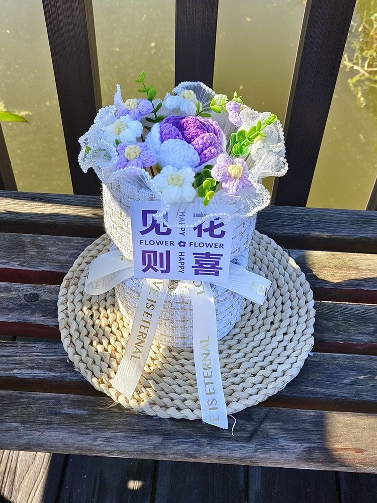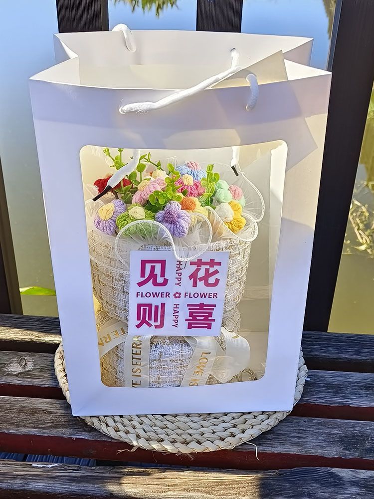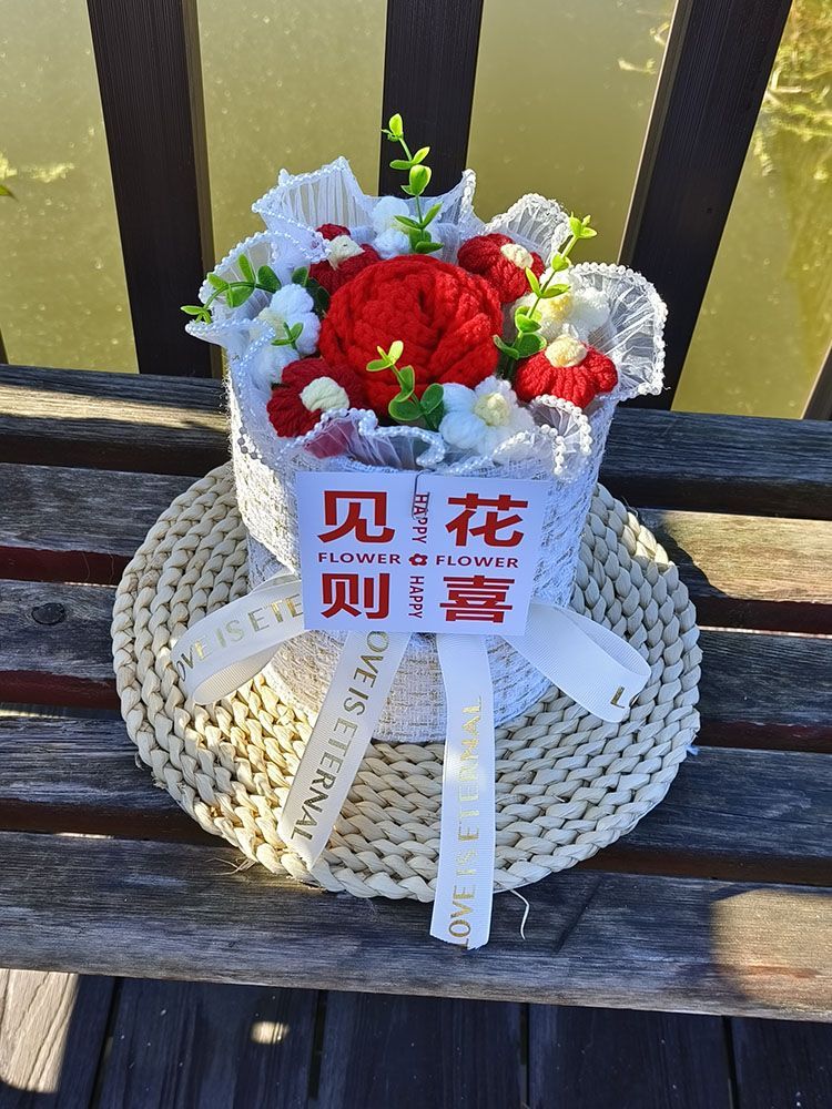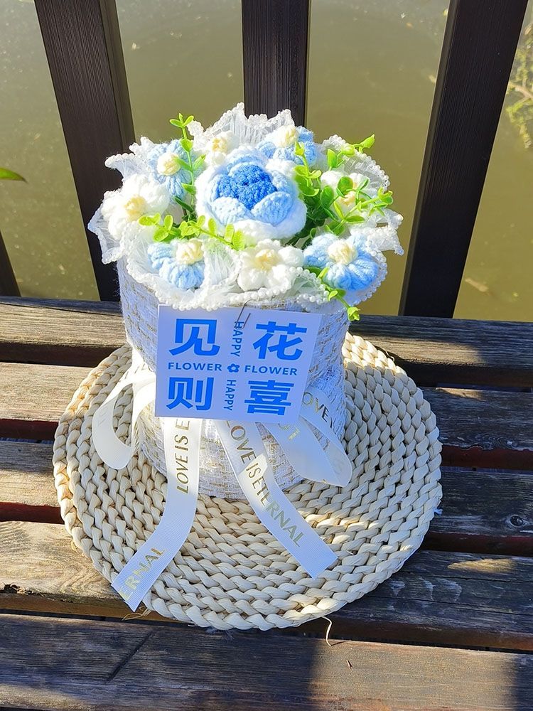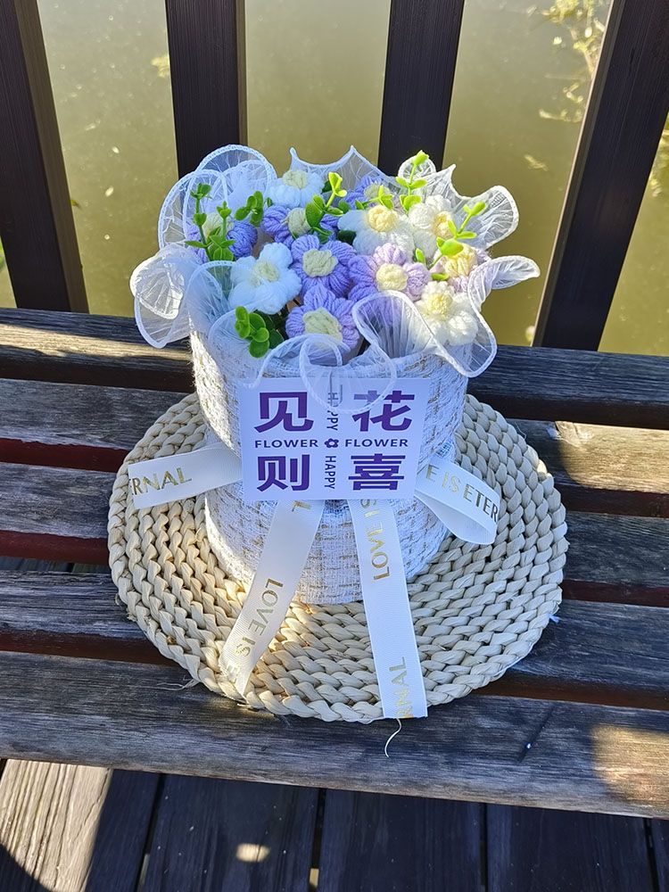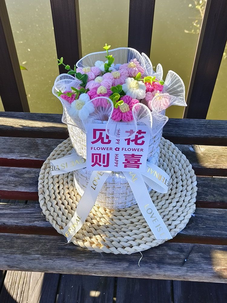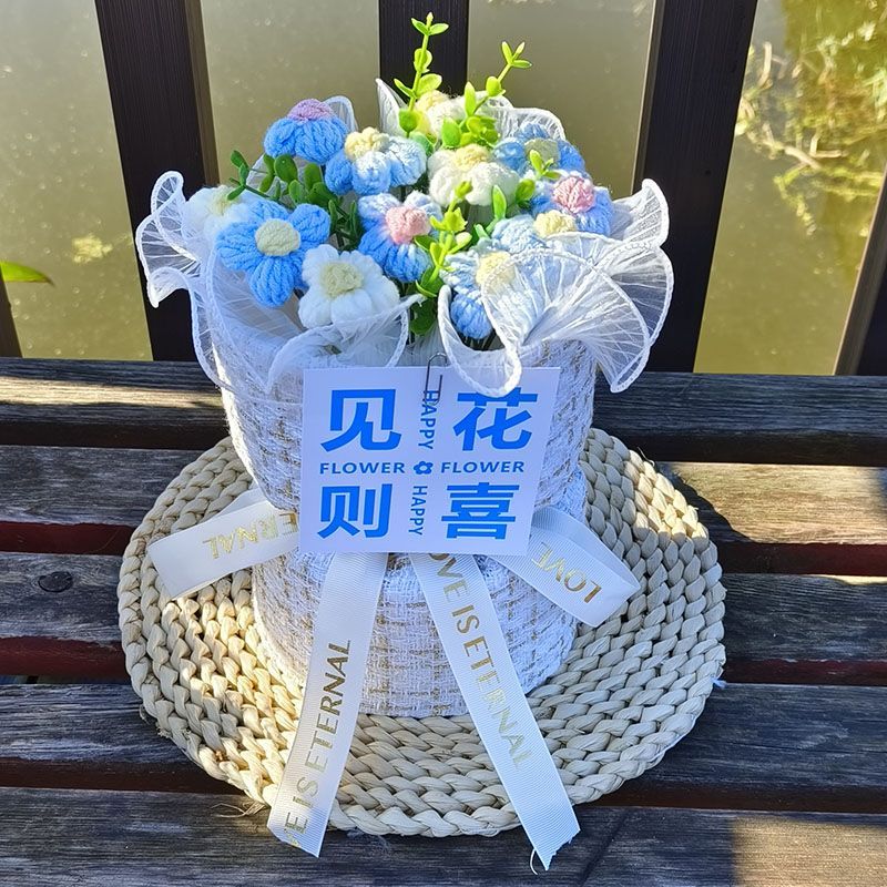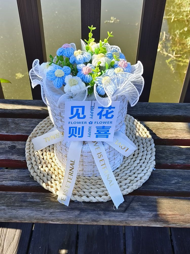 创意生日礼物高档实用香风向日葵玫瑰手工编织毛线花束女朋友闺蜜