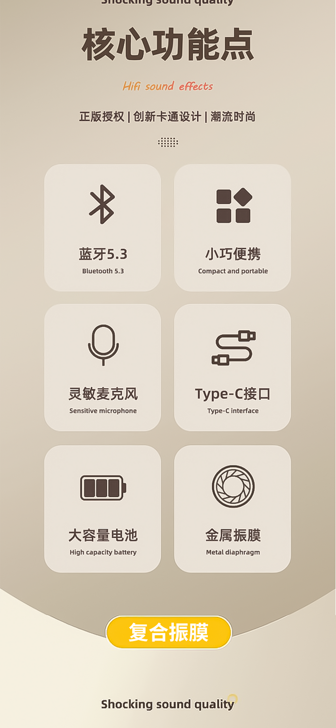 | standard version: cinema hd sound quality + standard noise reduction + small battery life improvement(标配版:影院高清音质+标准降噪+续航小提升) | USD $4.7 | 999999 piece available |