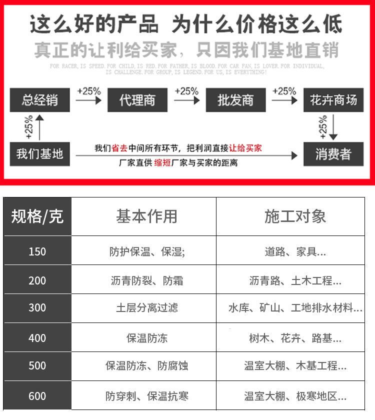 土工布毛毡混凝土公路养护大棚保温棉被工程保湿家具包装毯无纺布