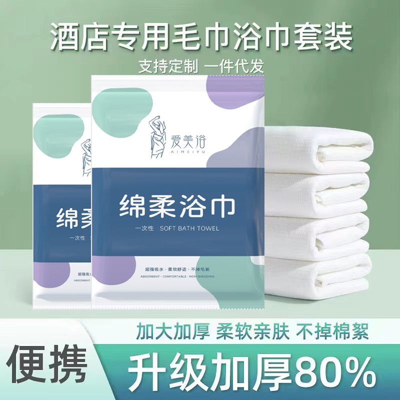 一次性浴巾毛巾二件套超厚出差旅行加厚批发专用独立包装酒店旅行