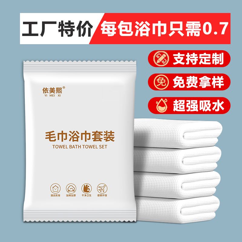一次性浴巾毛巾套装批发酒店民宿洗浴专用独立包装珍珠纹吸水擦巾