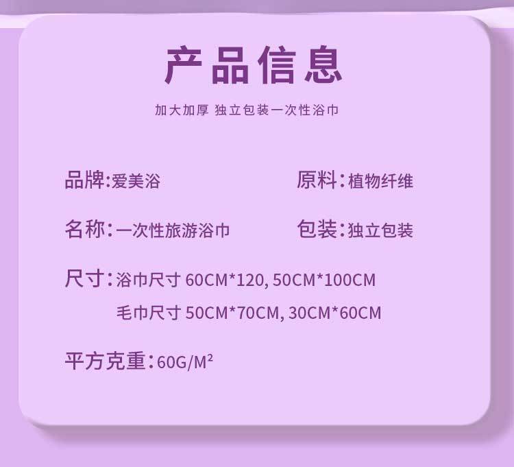 | aimei bath: [homestay hotel] bath towel 100 packs individually packaged(爱美浴:【民宿酒店】浴巾100包独立包装) | USD $22.47 | 999999 piece available |