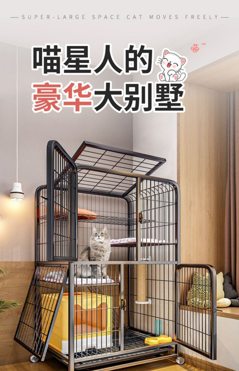 猫笼子家用带轮子室内超大自用空间猫别墅厕所一体猫笼猫咪爬架屋
